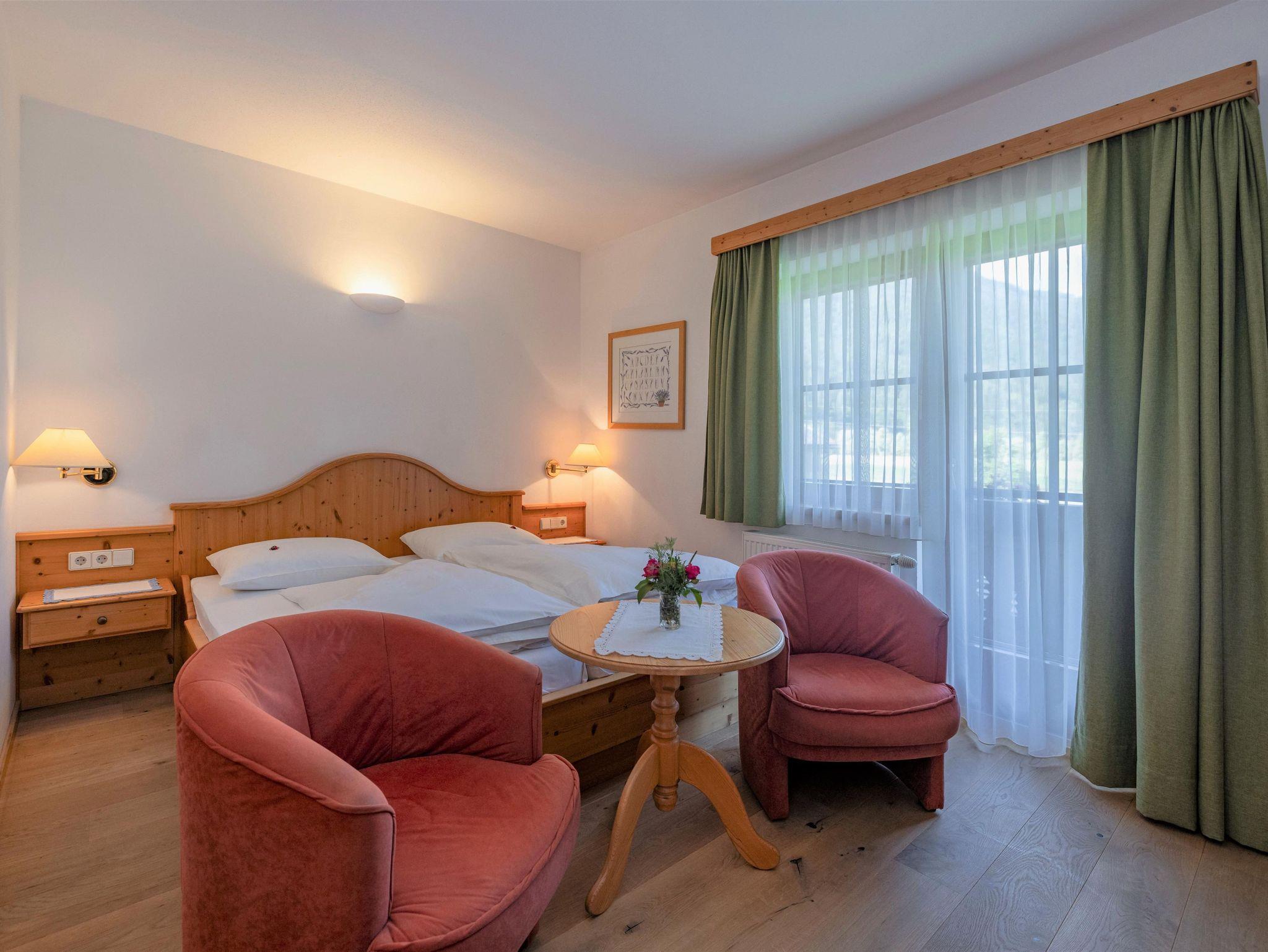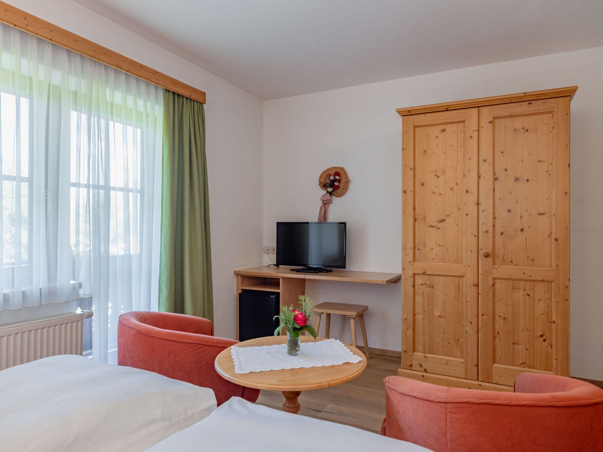 • 23 m² + Balkon westseitig mit Blick durch das breite Gailtal bis zu den Lienzer Dolomiten, Doppelzimmer, Minikühlschrank, Bad mit Kosmetikspiegel, Kosmetikartikel und Haarföhn, WC separat, Sat-TV. Für 2 Personen.