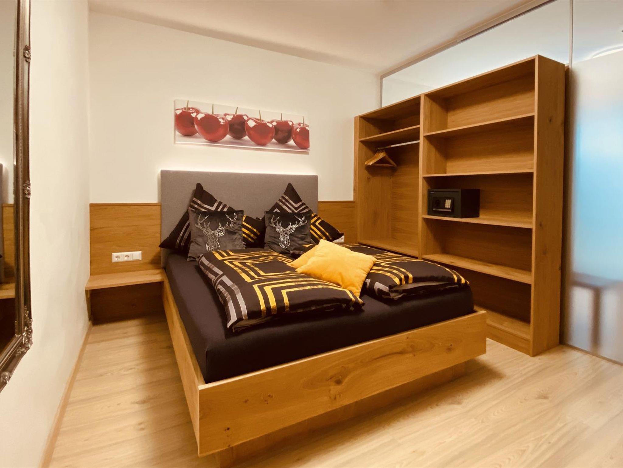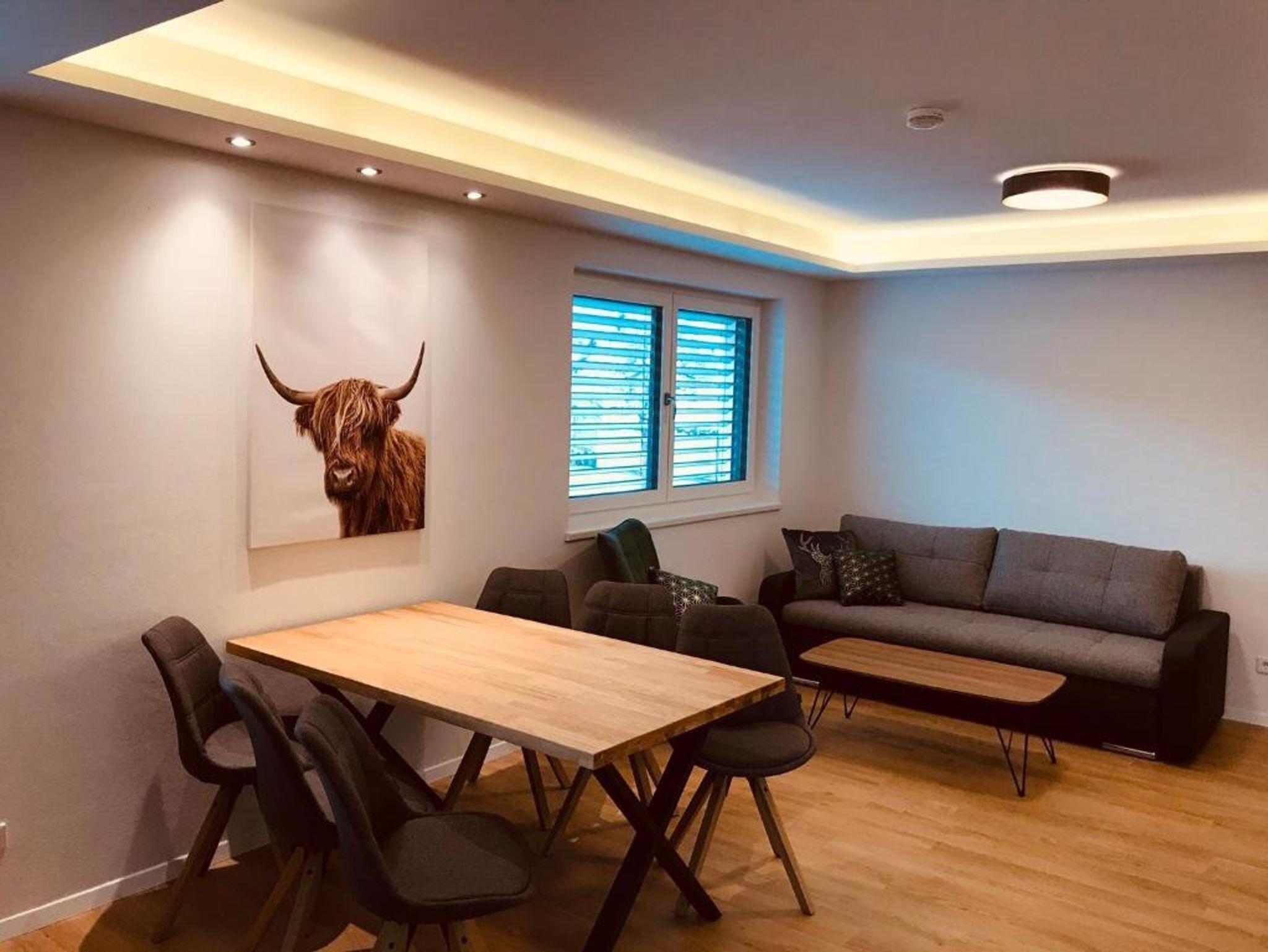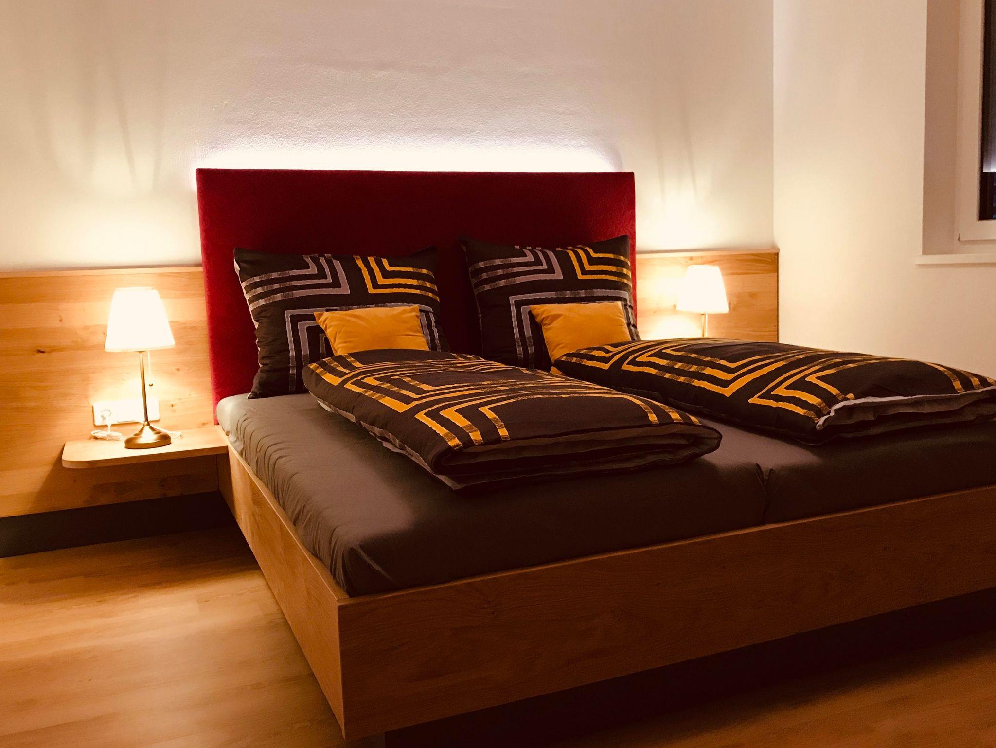 Modernes neues Apartment für 4 bis 6 Personen: 2 getr. Schlafzimmer, 1 gemütlicher Wohn-Schlafraum mit Sitzecke, 3 Smart-TV, Esstisch und komplett ausgestatteter Küche (4 Kochfelder Ceran, Kühl-/Gefrierschrank, Wasserkocher, Nespresso-Kapselmaschine,...). Bad mit Dusche, WC, Doppelwaschtisch; Infrarot- Sauna; Im 1. Stock mit Terrasse; WLAN kostenlos! Ruhig aber trotzdem zentral gelegen, nur wenige Fußminuten zum Millennium Express.