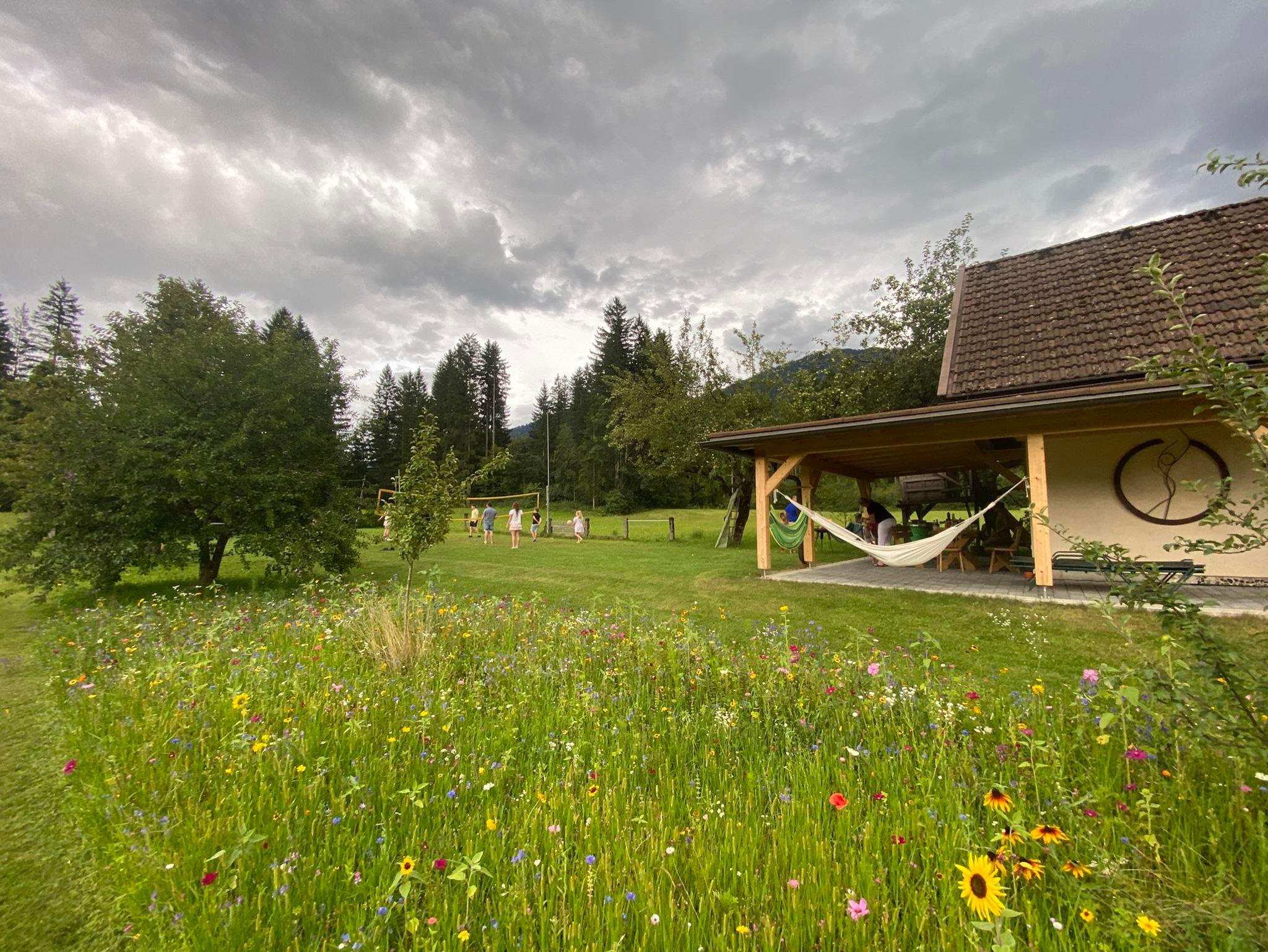 Unser 1500 Quadratmeter große Garten und der tolle Ausblick auf die Bergwelt lassen die Seele baumeln. Das Gartenhaus „Kindervilla“ mit Wellenrutsche, Terrasse mit Grillplatz und Küche bietet der ganzen Familie Platz für ein geselliges Beisamensitzen an schönen Sommertagen.