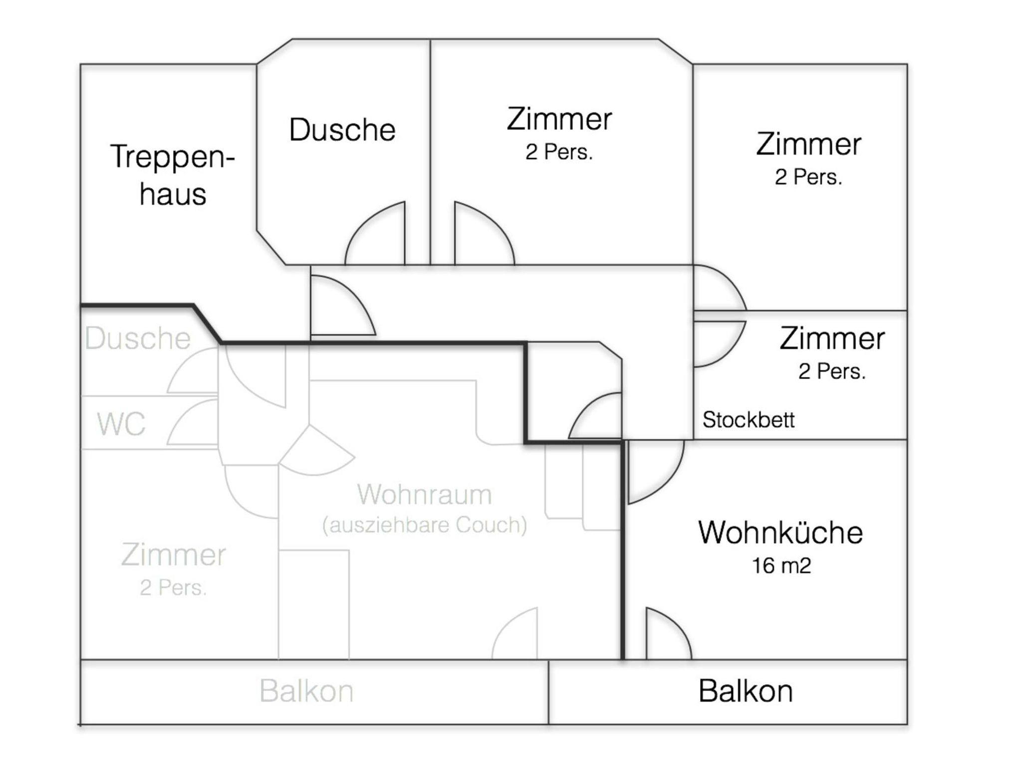 Die Wohnungen bieten Platz für 2 und 8 Personen.