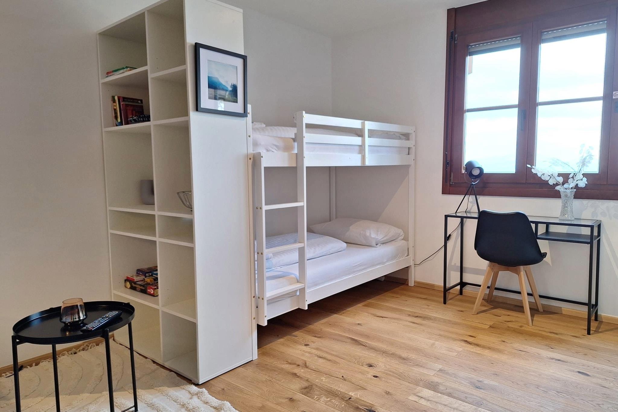 Apartment mit Panoramablick Dieses stilvoll eingerichtete Apartment mit Berg- und Talblick bietet auf 50 m² Platz für bis zu 4 Personen, die Natur und Komfort verbinden möchten. Ruhig gelegen in direkter Nähe zur Gondel der Mittelstation der Gerlitze. Vom überdachten Tiefgaragenplatz gelangt man über wenige Stufen direkt in die Wohnung. Innen erwartet euch eine durchdachte Kombination aus Gemütlichkeit und Funktion: ein separates Schlafzimmer mit Doppelbett, eine kleine Schlafnische mit Hochbett, ein ausziehbares Schlafsofa und ein heller Wohn- und Essbereich mit offener Küche. Das Bad ist mit Dusche und WC ausgestattet. Der überdachte Balkon eröffnet einen traumhaften Ausblick. Die Lage ist ideal für aktive Urlaubstage: Die Mittelstations-Gondel ist zu Fuß erreichbar und bringt euch direkt auf den Gerlitzengipfel. Wer lieber ans Wasser will, ist in wenigen Minuten am Ossiacher See. Das Apartment ist liebevoll eingerichtet – mit Kindergeschirr, Malsachen und auf Wunsch mit Gitterbett. Bettwäsche und Handtücher sind inklusive, ebenso wie ein kleines Willkommensset mit Kaffee und Tee. Haustiere sind in diesem Apartment nicht erlaubt.
