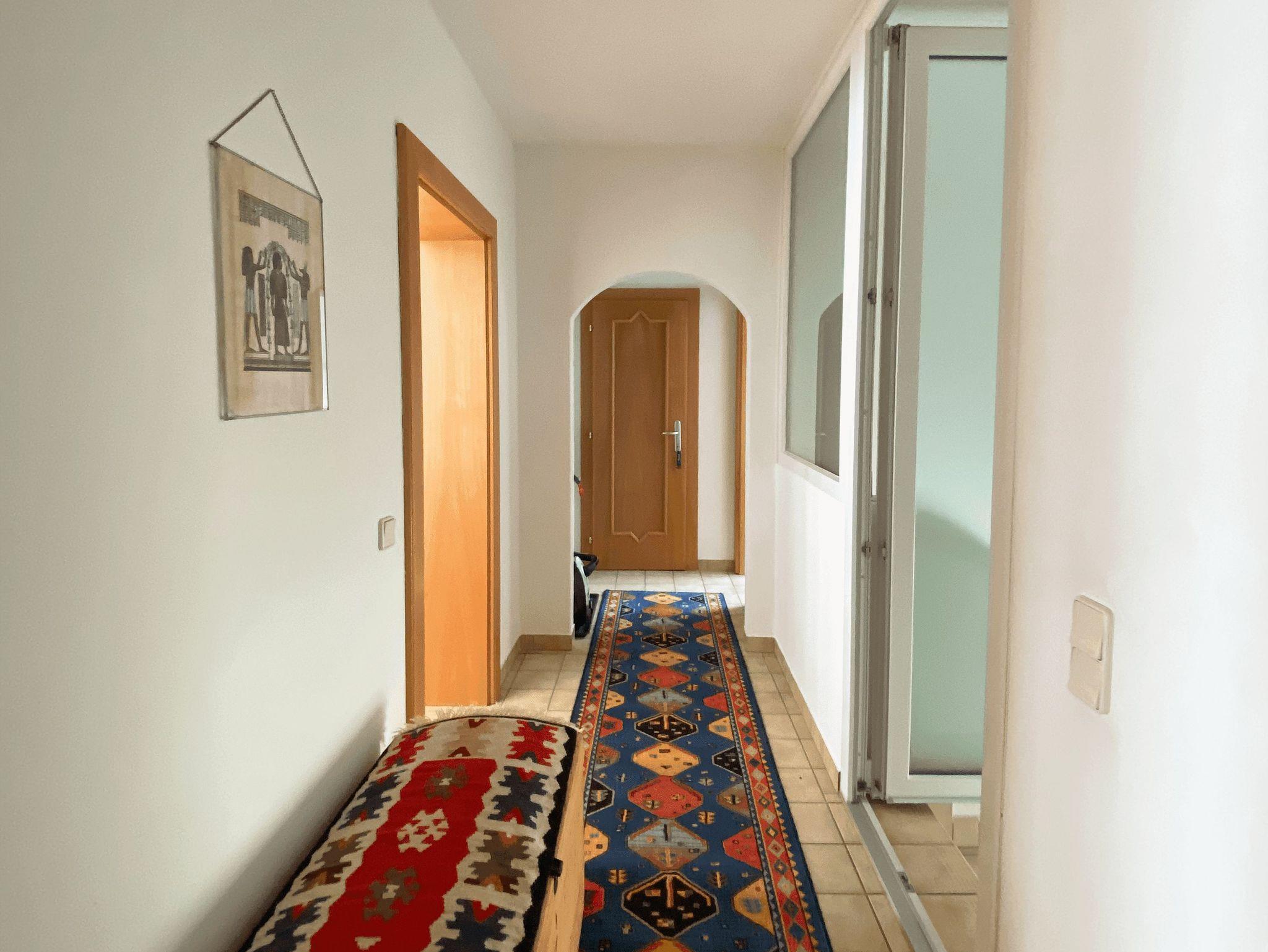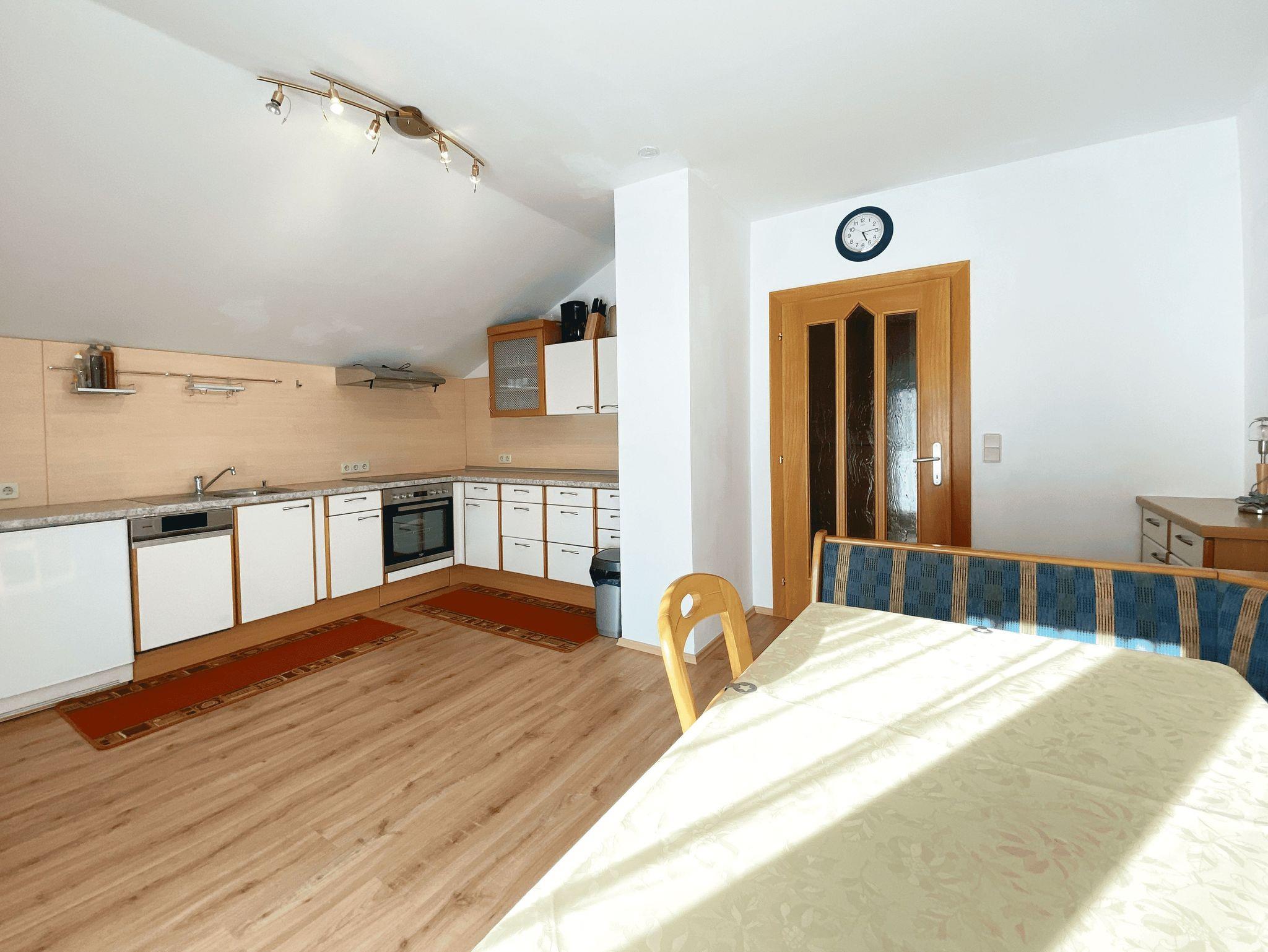 Die Ferienwohnung befindet sich im ersten Stock, umfasst 56 m² und einem südseitigen Balkon für ein gemütliches Frühstück. Die Wohnung ist aufgeteilt in Küche, Bad, Vorraum und 2 Schlafzimmer mit jeweils einem Doppelbett.