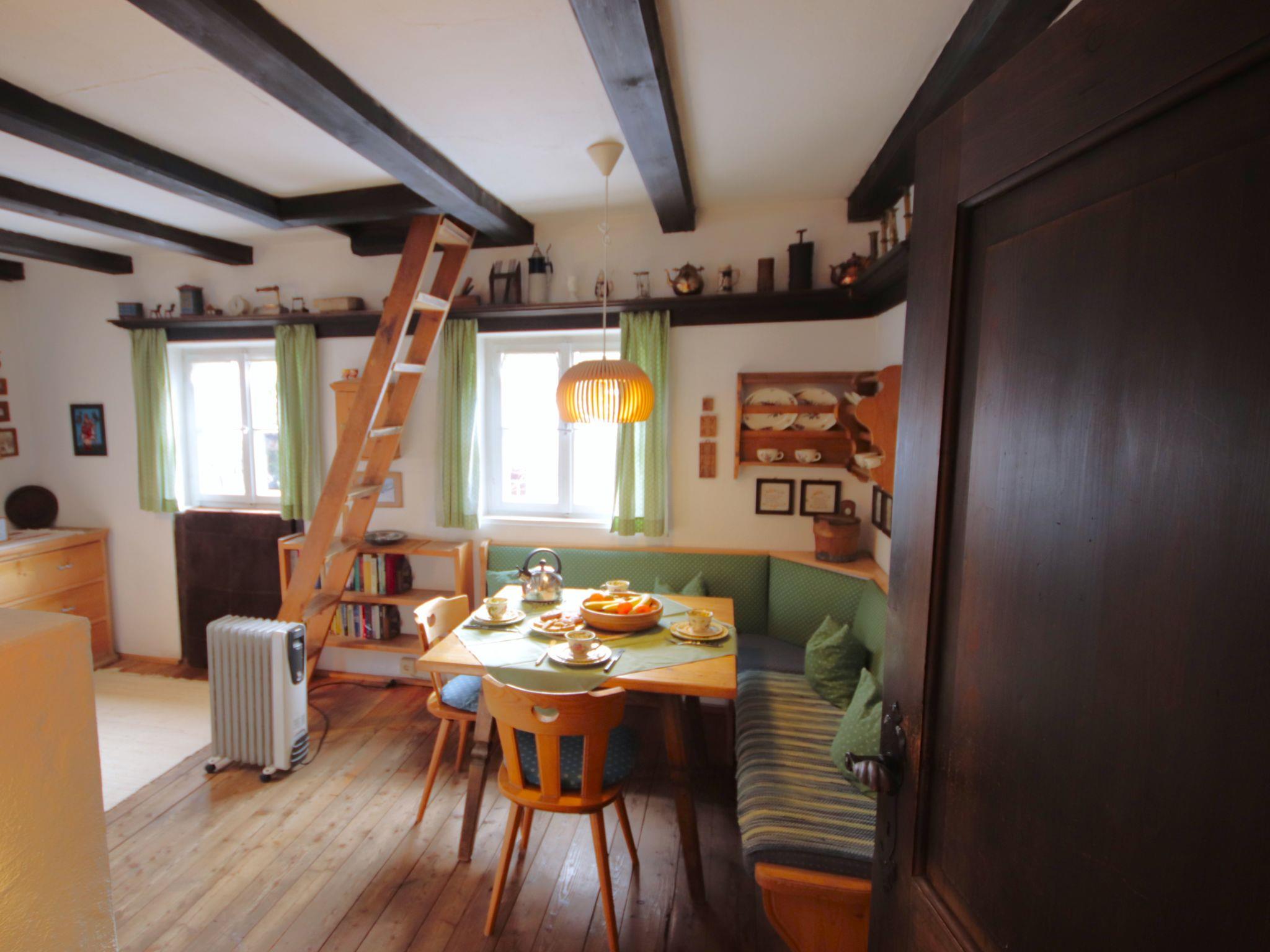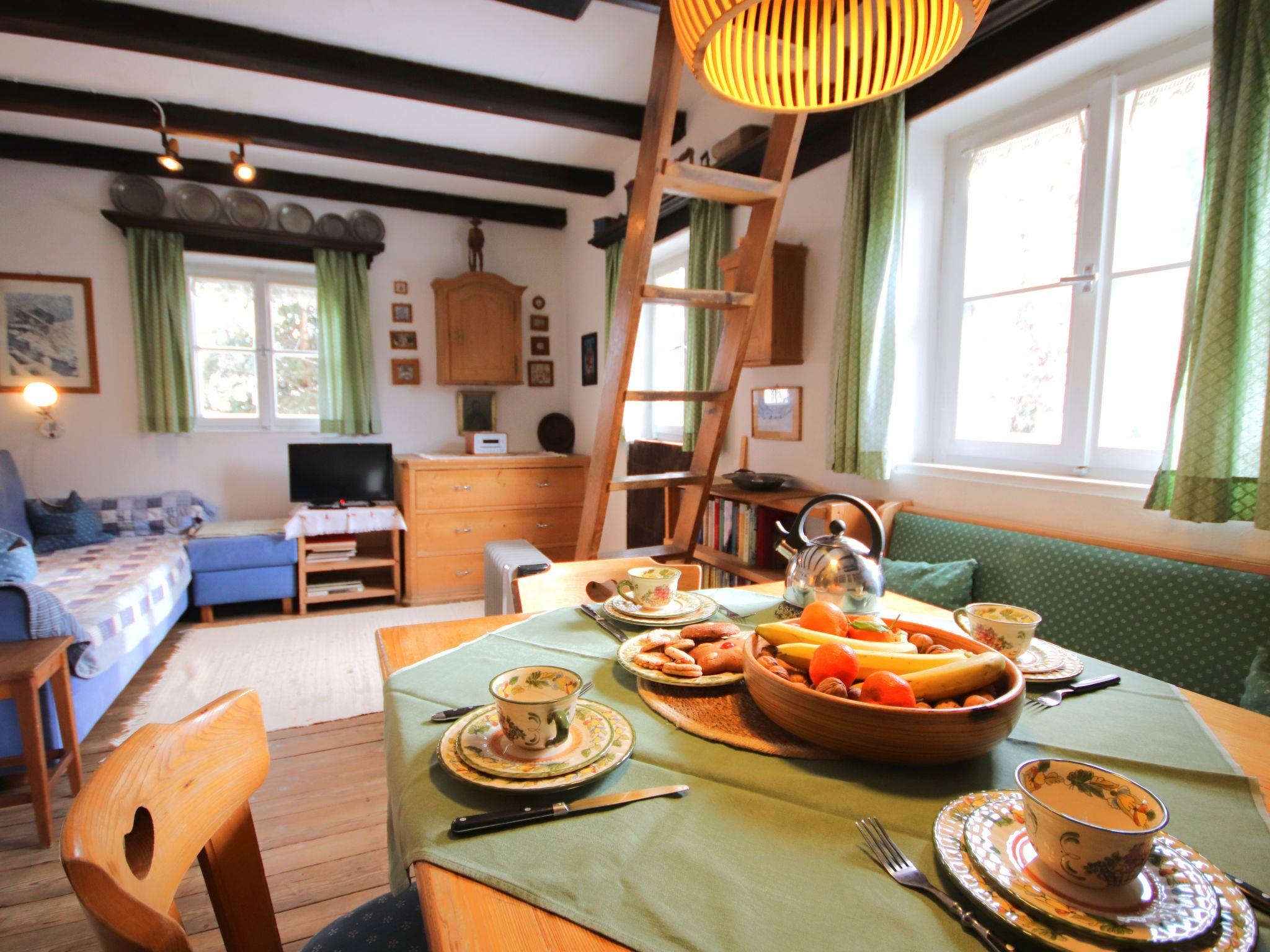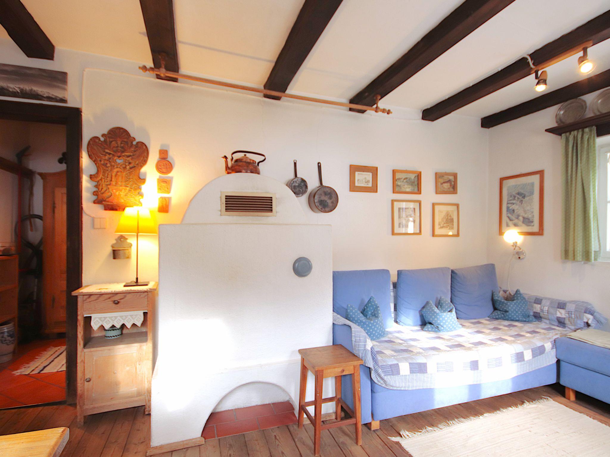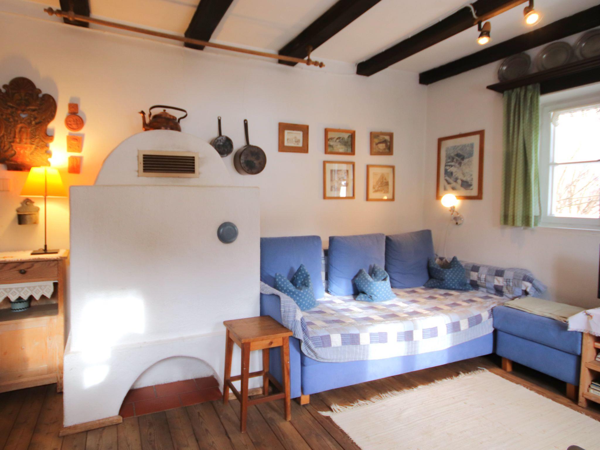 "Hüttl", 2-Zimmer-Haus 35 m2. Rustikal und gemütlich eingerichtet: Wohn-/Schlafzimmer mit 1 Doppeldiwanbett, Essecke und Sat-TV (Flachbildschirm), E-Heizung und Kachelofen. Kleine Küche (2 Kochplatten, Mini-Backofen, Wasserkocher, elektrische Kaffeemaschine). Dusche, sep. WC. Fussbodenheizung. Obergeschoss: (Leiter) abgeschrägte Schlafnische, - 100 cm mit Dachfenster mit 4 Schlafmöglichkeiten. Holzdielenboden. Terrasse. Terrassenmöbel. Schöne Sicht auf die Berge und die Landschaft. Bitte beachten: geeignet für Familien, für Kleinkinder nicht geeignet. Nichtraucher-Haus. Maximale Belegung: 4 Personen. Anstelle eines abgeschlossenen Schlafzimmers befinden sich manche Schlafplätze in einem offenen Bereich (Galerie, Nische etc.).