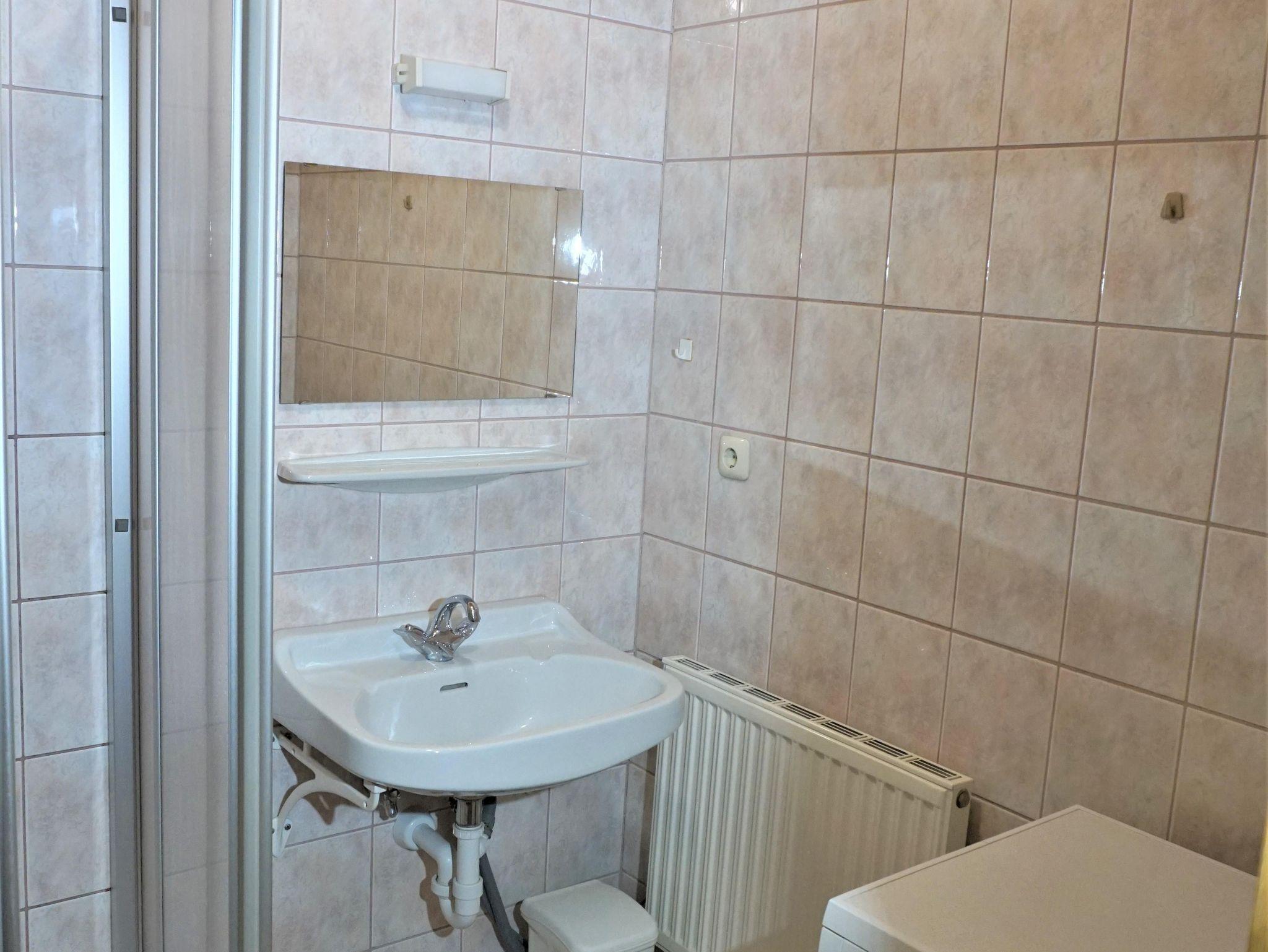 Die Wohnfläche beträgt 55m2 und teilt sich auf zwei Zweibettzimmer, eine Wohnküche, ein Badezimmer mit Dusche und Waschmaschine sowie ein separates WC auf. Im größeren der beiden Schlafzimmer befindet sich zusätzlich eine Klappcouch, das kleinere Zimmer hat Dachfenster.