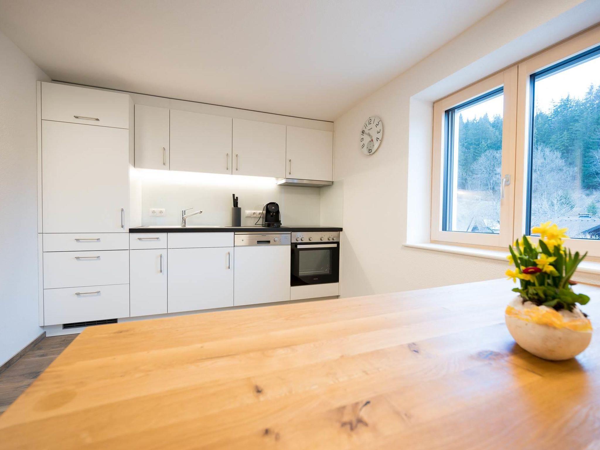 Die Küche ist mit Wasserkocher, Mikrowelle, Toster, Kaffeemaschiene .... eingerichtet.