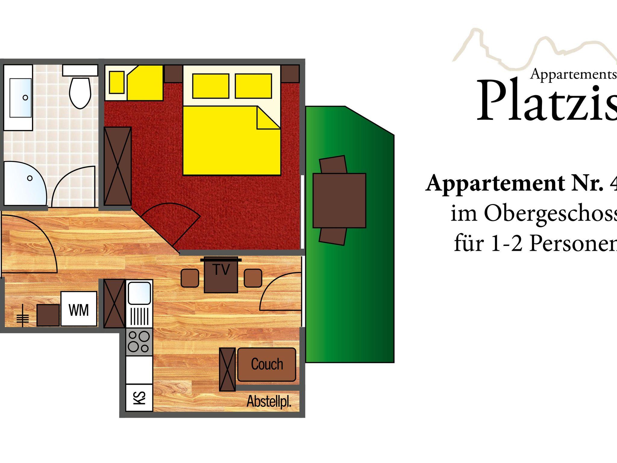 Appartements Platzis, Wohnung 4, 38 m², 1-2 Personen