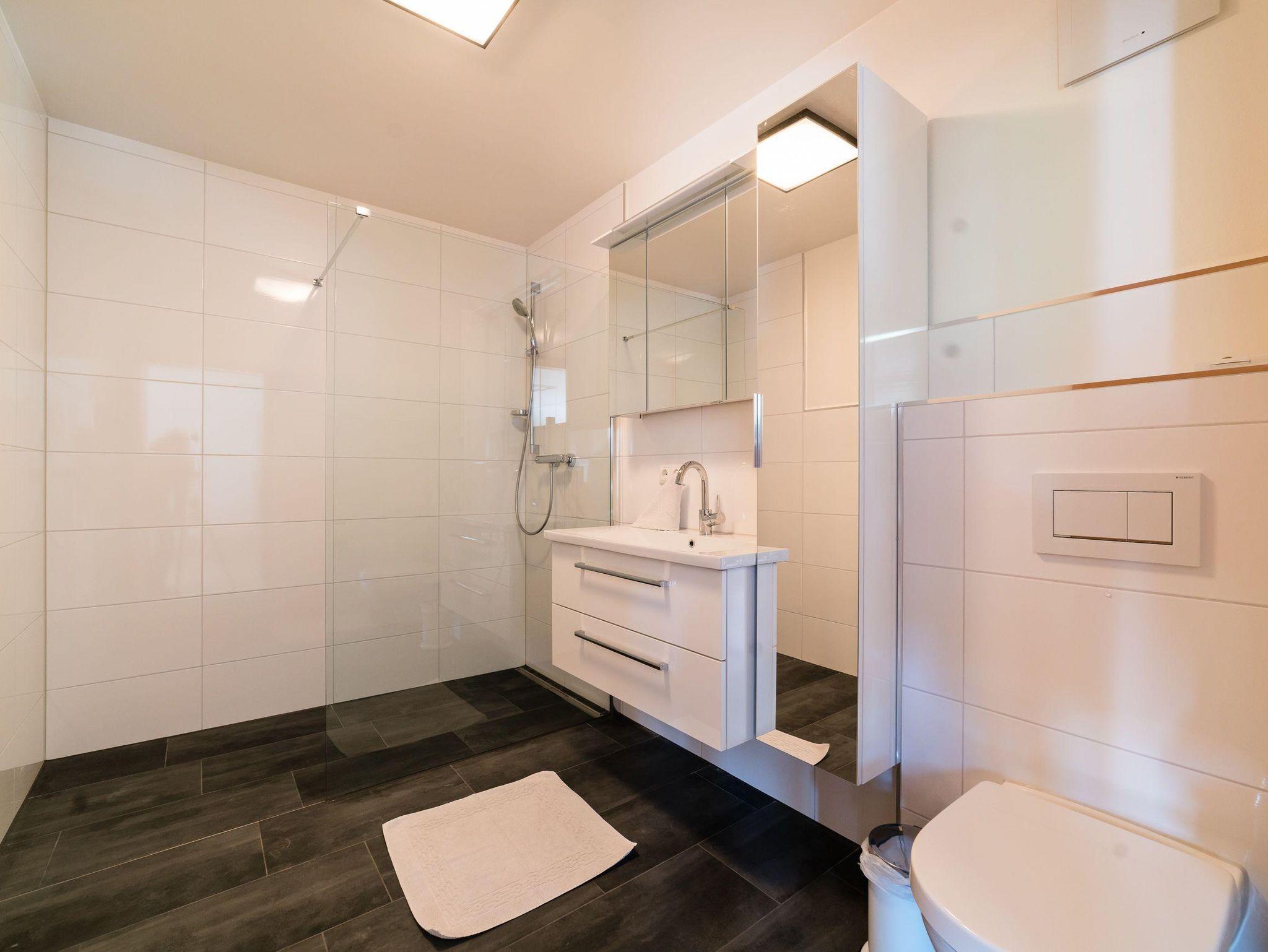 Im Haus Zatrifes, mit 48m2, ebenerdig, Südlage, bestehend aus einer großzügigen Wohnküche mit Sitzecke und einer ausziehbaren Couch, einem Schlafzimmer mit Doppelbett, einer Garderobe, einem Bad mit Dusche/WC und einer Terrasse mit komfortablen Möbeln und Liegestühlen.