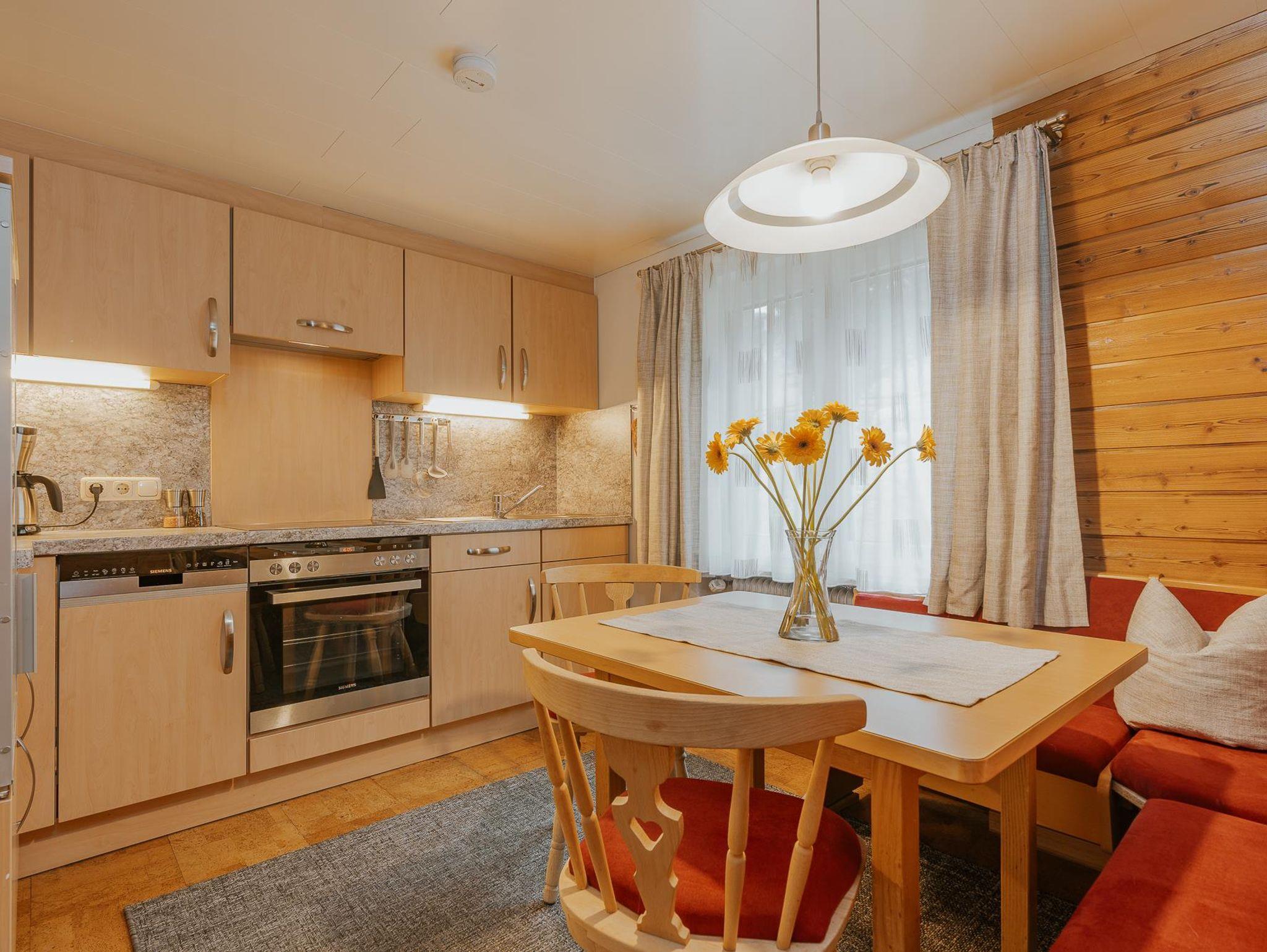 Die Wohnküche ist mit einem Kühlschrank plus Gefrierfach, Herd mit Backrohr, Spülmaschine, Wasserkocher, Kaffeemaschine, Geschirr ausgestattet.