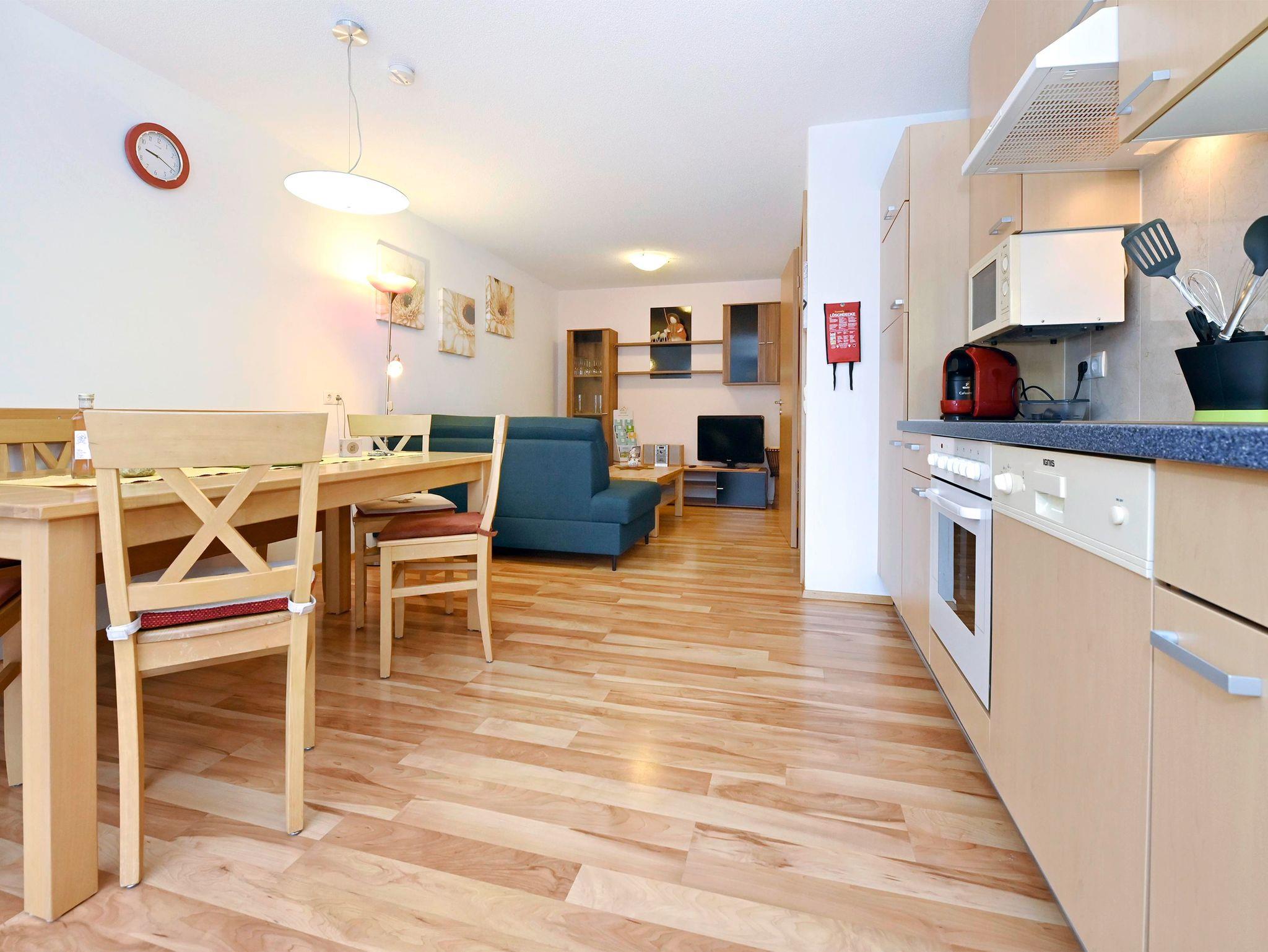 Unsere neue, geräumige 70m² Wohnung ist geschmackvoll und sehr niveauvoll eingerichtet. Die Wohnung besteht aus einer Wohnküche, welche sich über eine breite Glasfront zur ebenerdigen Terasse und Liegewiese hin öffnet. Die beiden Schlafzimmer sind geräumig und im größeren der beiden ist Platz für ein weiteres Bett. Der Blickfang im Bad ist die bodenebene Dusche mit hochwertiger Glaskabine.
