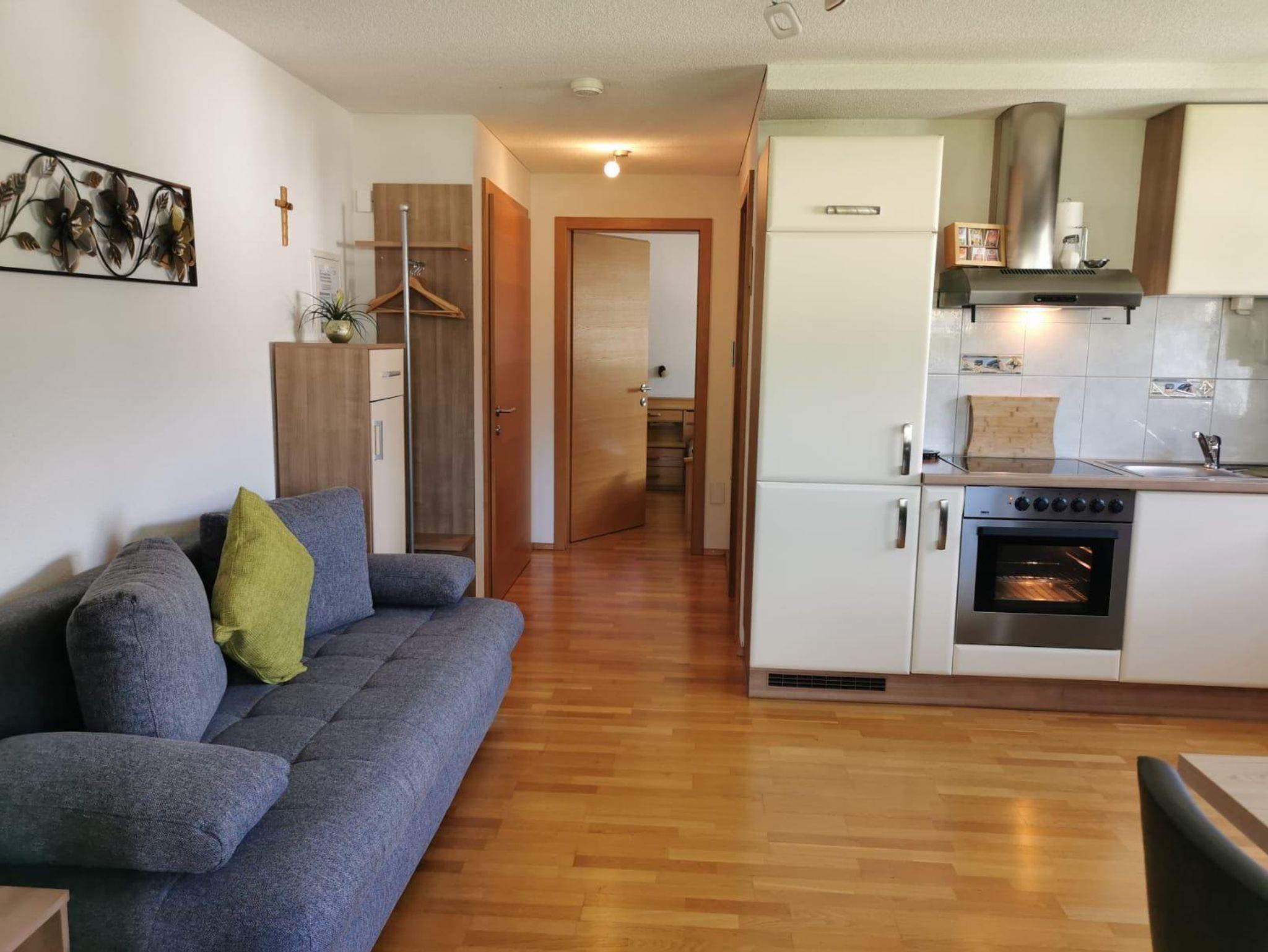 Sonnenterrassen-Fewo eigener Eingang, Autoabstellpl.u. Fahrrad,-Skiabstellplatz. Ausstattung: moderner Koch-Wohnraum m.Eßplt.,K-TV und einer ausziehbaren Schlaufcouch(148x198cm).Doppelbettz. 12,35m² Bettwäsche vorhanden.WC 4.32m² m. Fenster. Terrasse: 10m² m.Gartenmöbel,Heizung: Fußbodenheizung