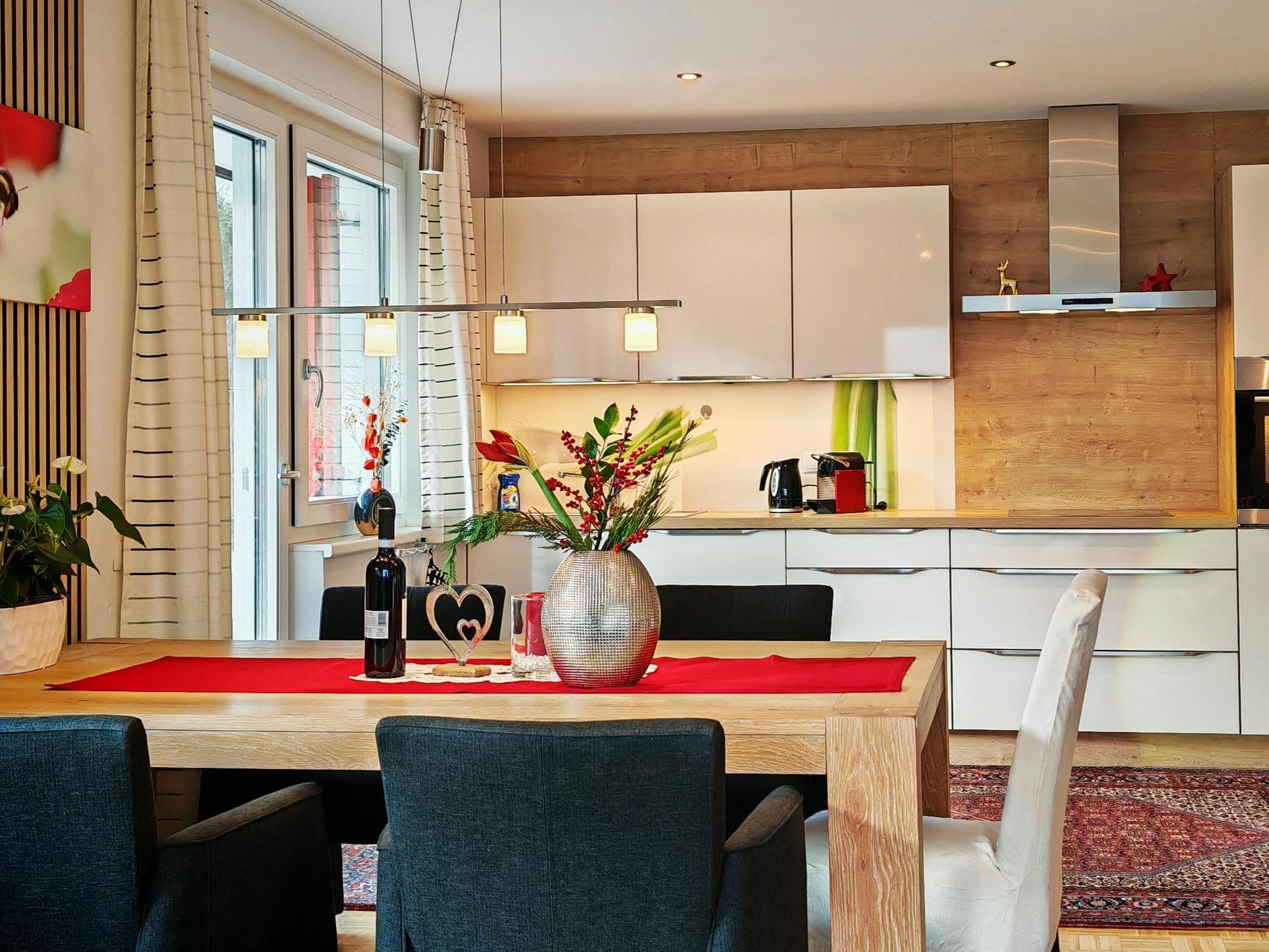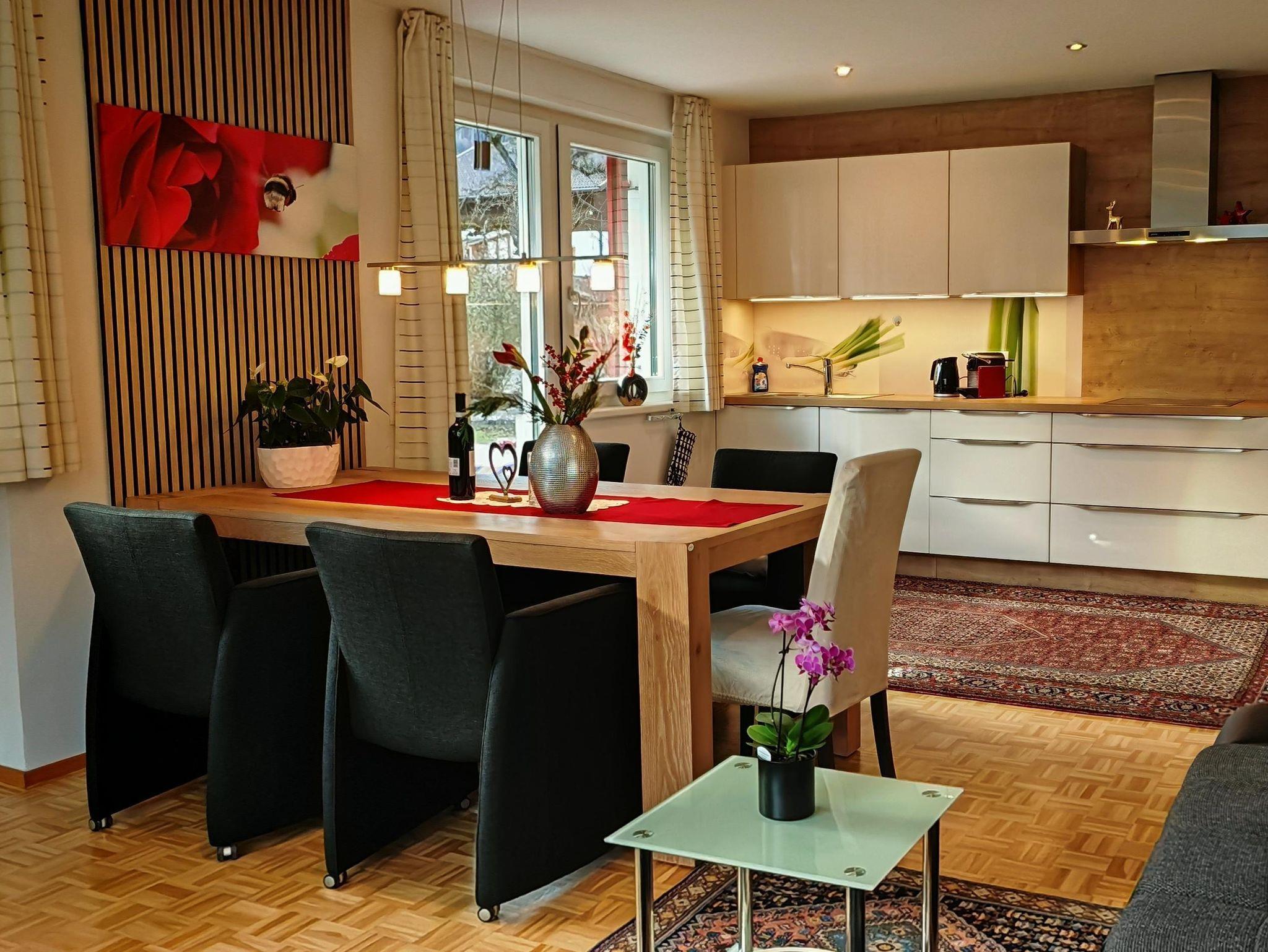 Die Ferienwohnung besteht aus einem 3-Bett Zimmer, einem 2-Bett Zimmer, einem großen Wohnraum (Wohnzimmer, Küche, Essraum), einem Bad, separates WC, einem Wintergarten und einer ca. 400m² großen Liegewiese.