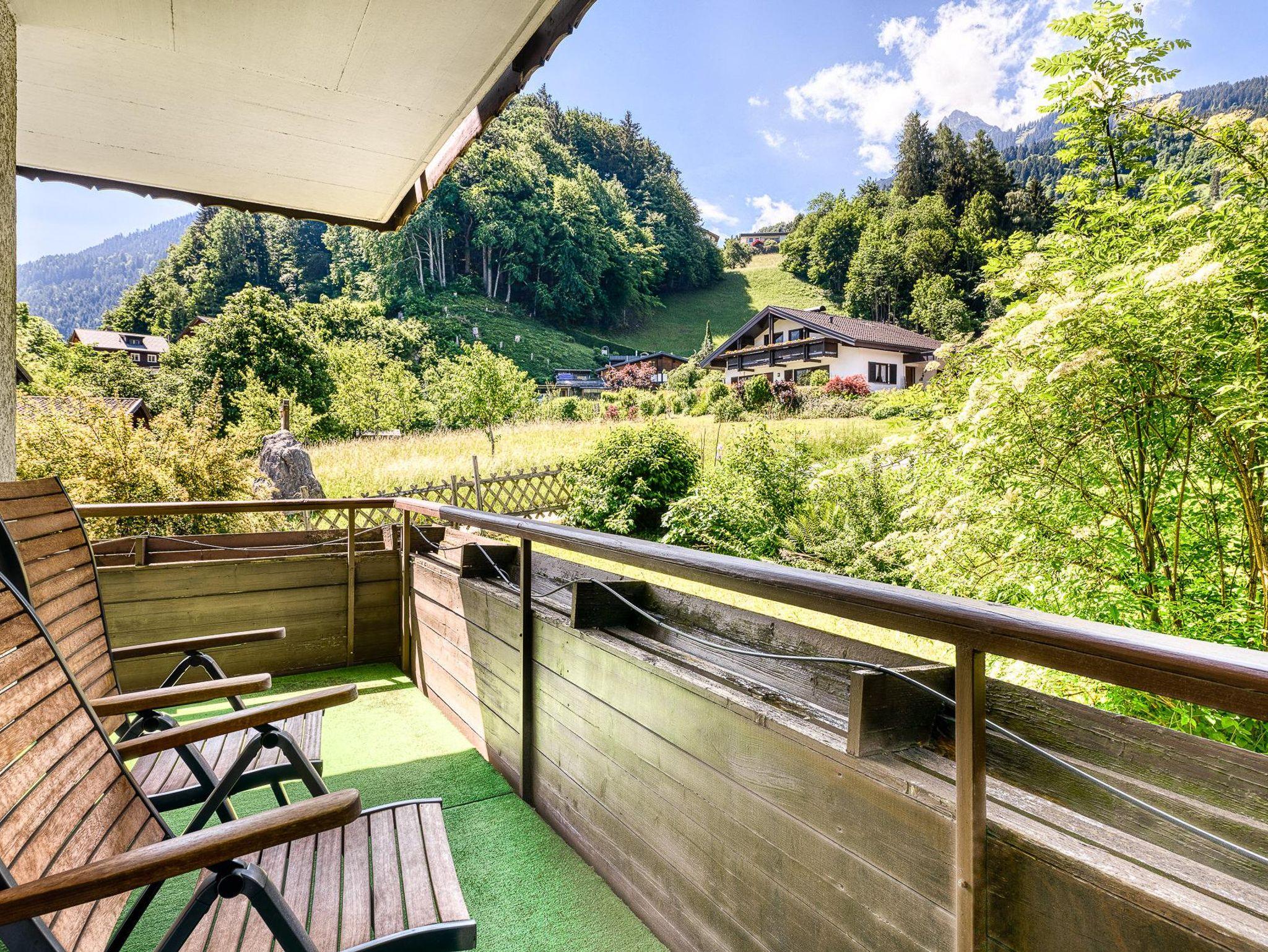 Wohnung für 2-4 Personen, 65m², Kochnische, Wohn-Schlafraum, 2 Schlafzimmer, Bad mit Dusche, separates WC, Balkon, Wiese, Schischuhtrockner, Parkplatz...