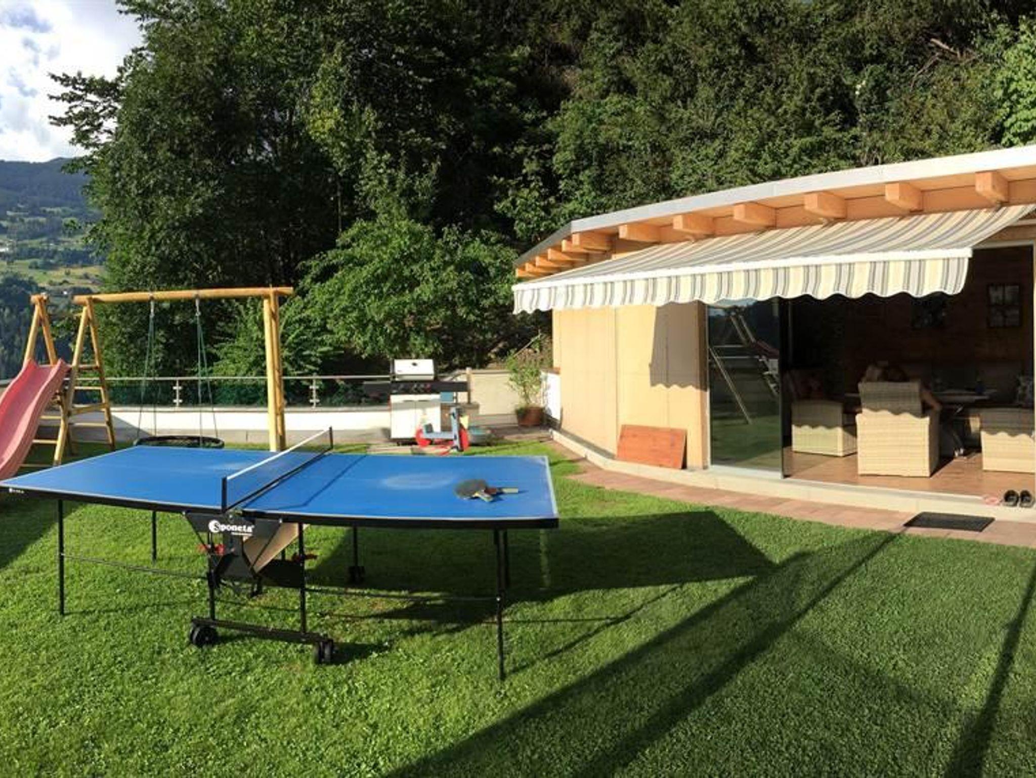 mit Schaukel, Rutsche, Trampolin, Tischtennis und sonstigen Spielgeräten zur Verfügung.