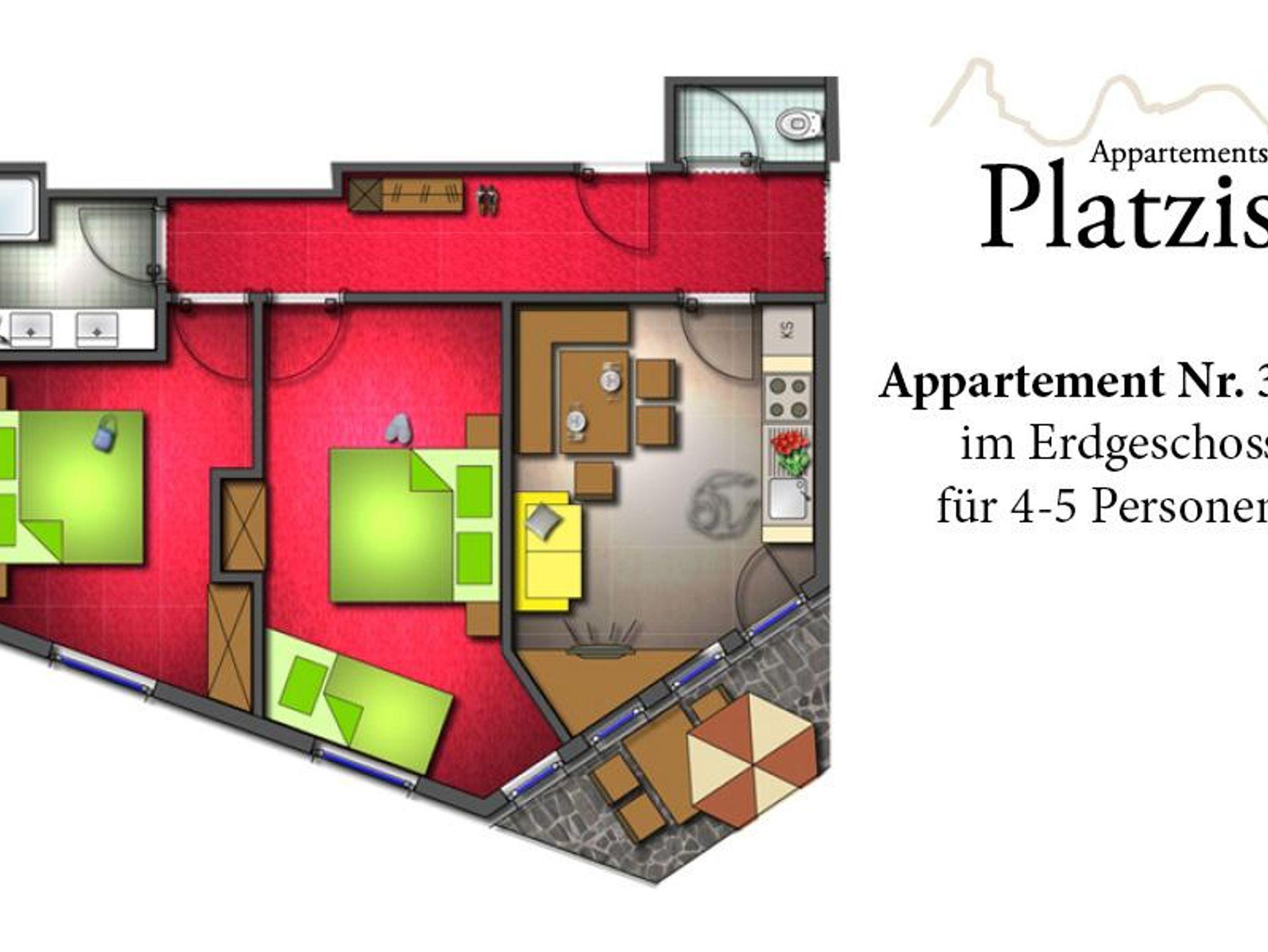 Appartements Platzis, Wohnung 3, 60 m², 1-5 Personen