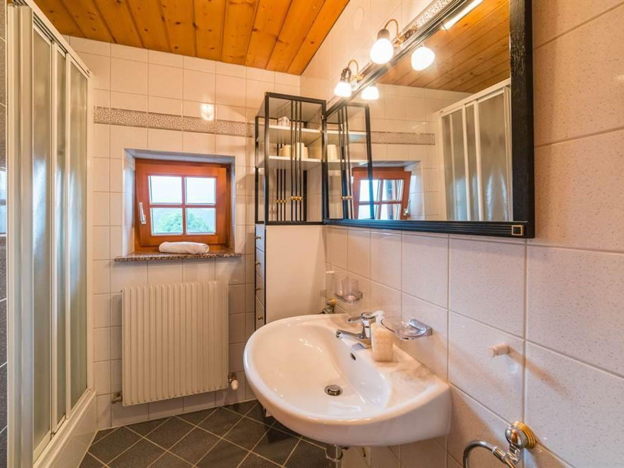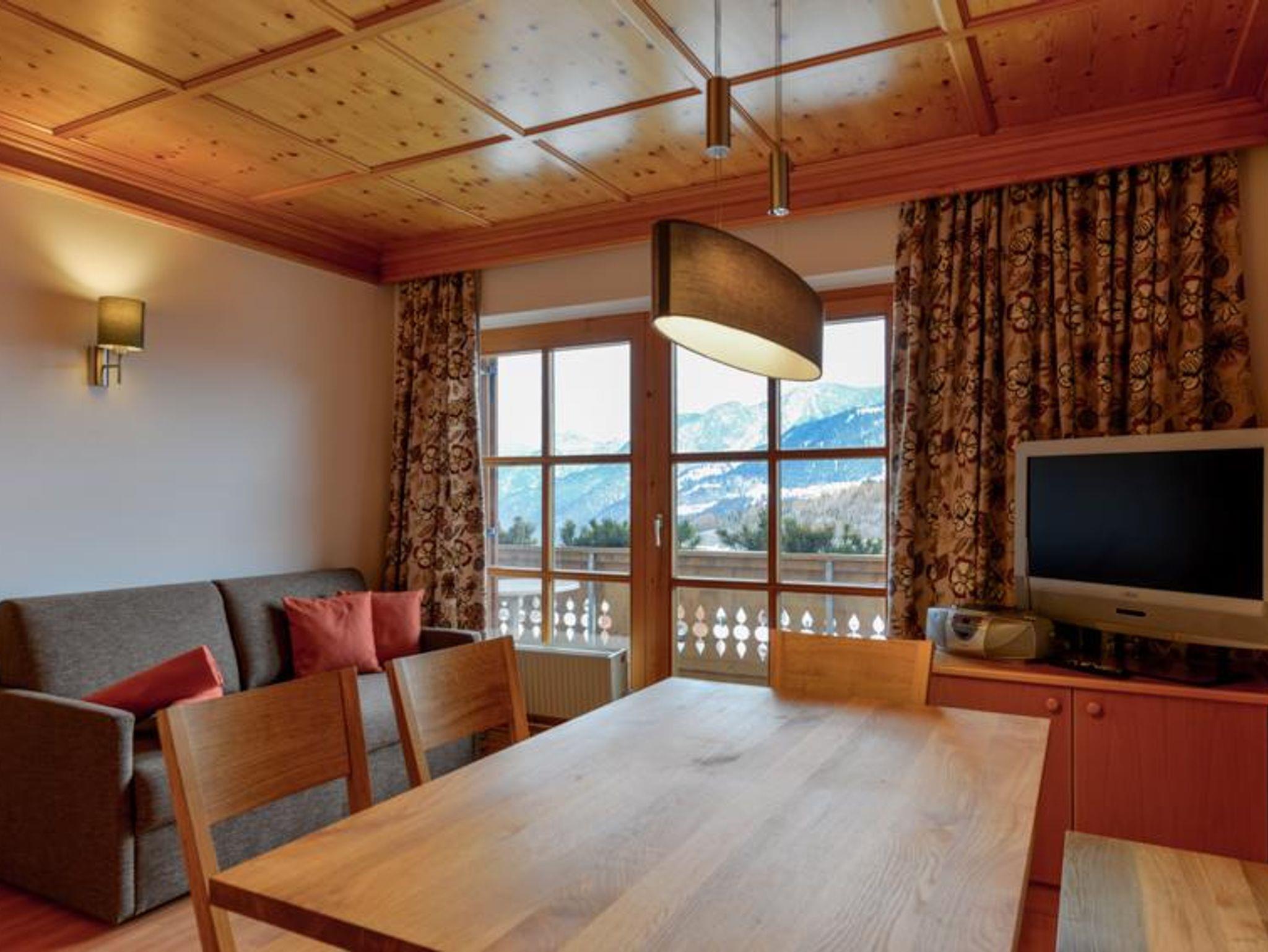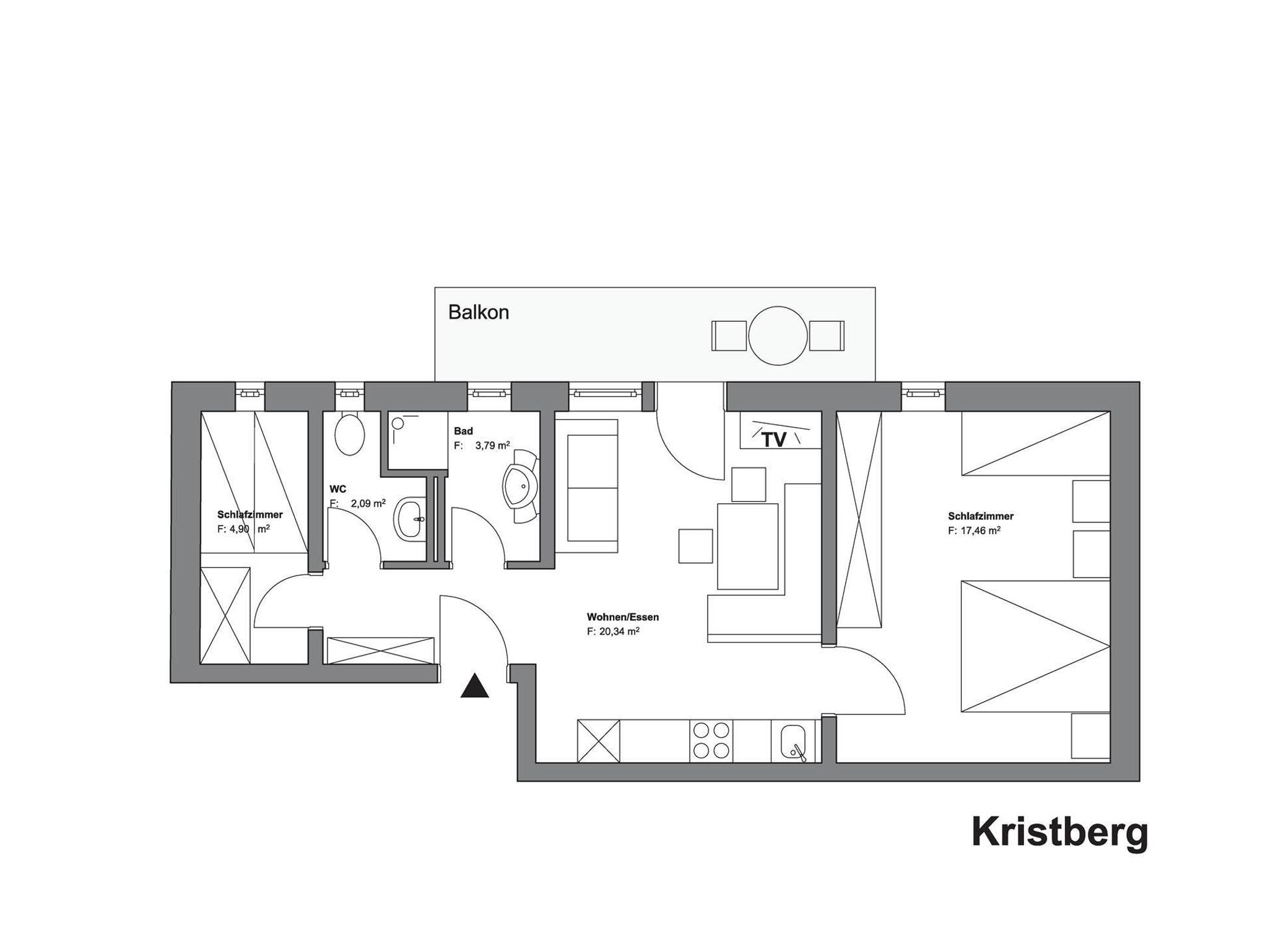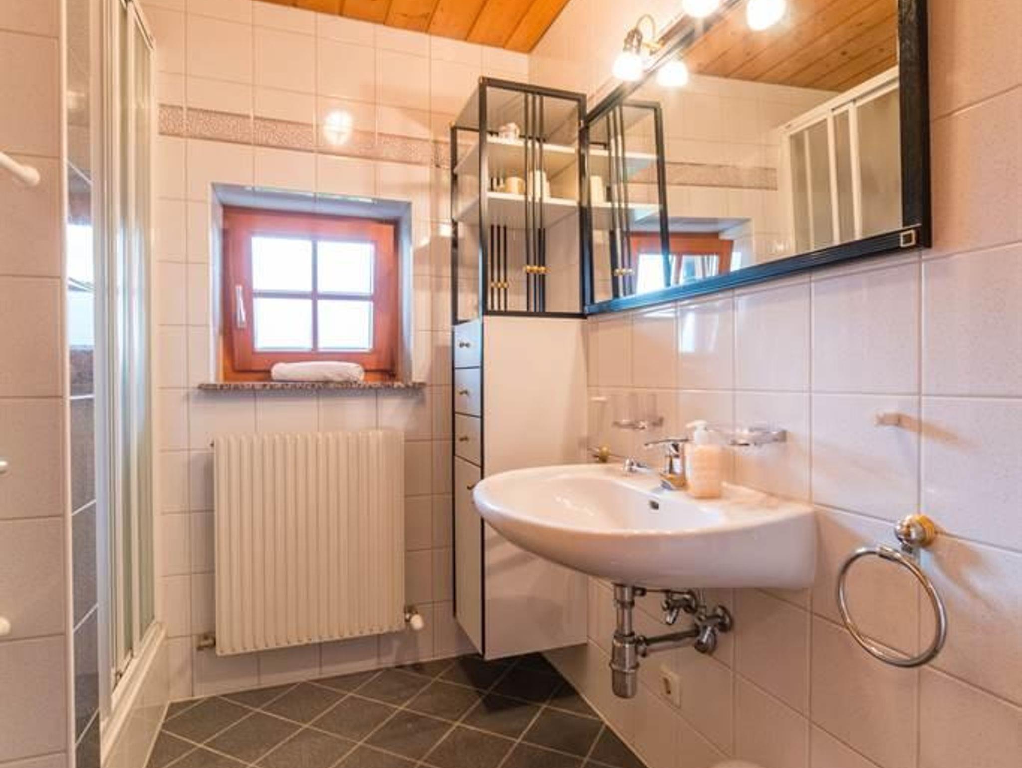 53 m2 im Dachgeschoss, Ostlage, bestehend aus einer großzügigen Wohnküche mit Sitzecke, einem Schlafzimmer mit Doppelbett aus Zirbenholz und einem Einzelbett aus Zirbenholz und einer Schlafkammer (Dachschräge) mit einem Doppelbett (140 x 190 cm), einem Bad mit Dusche, separatem WC und einem Balkon mit Morgensonne.