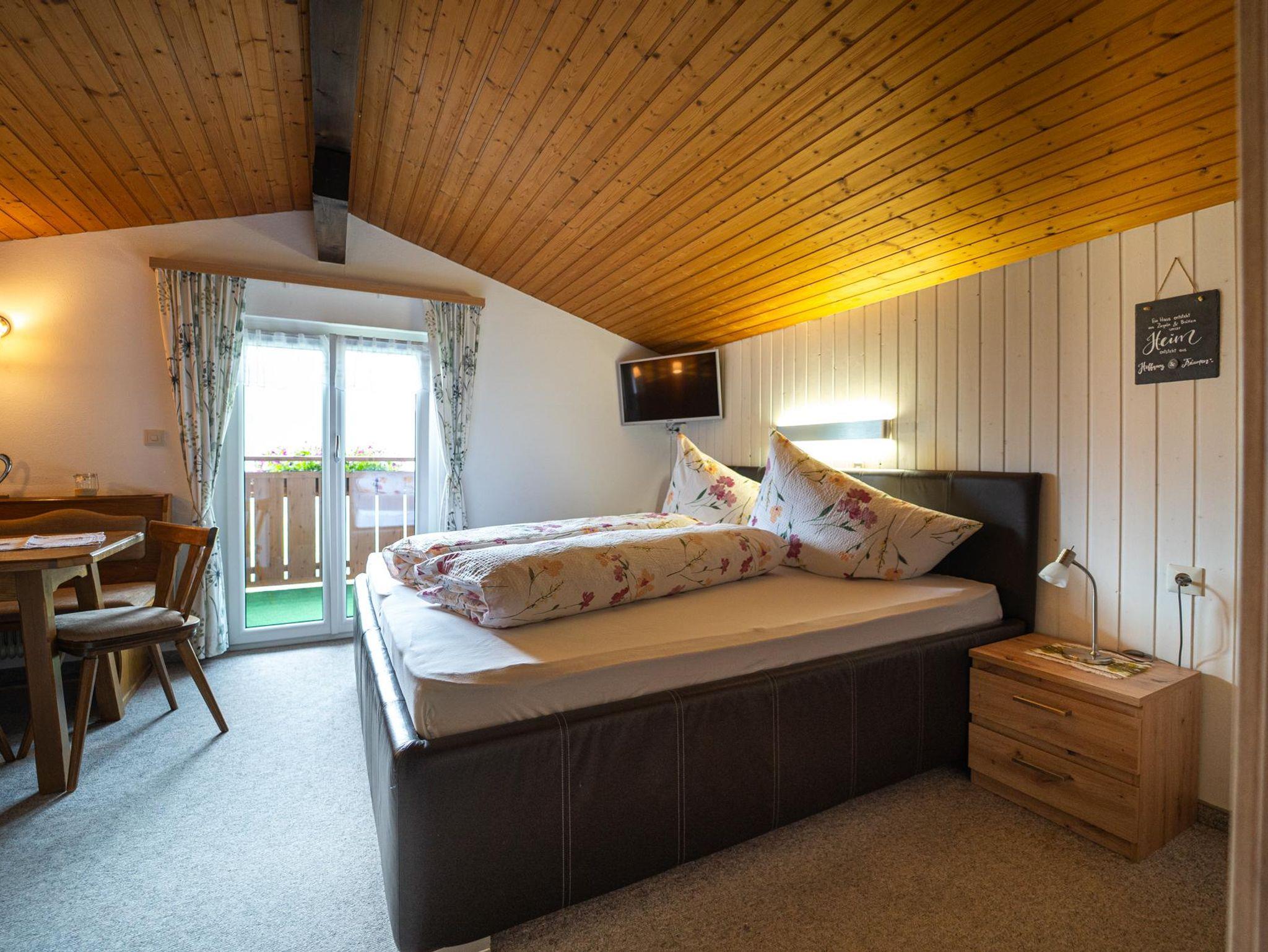 Diese Ferienwohnung besteht aus einer Garderobe, einer geräumigen, komplett eingerichteten Küche mit Sitzecke und Couch, einem Wohnschlafzimmer und Dusche/WC und Balkon sowie einem kleinen Zweibettzimmer. Sat-TV, Radio sowie Bettwäsche und Handtücher stellen wir gratis.