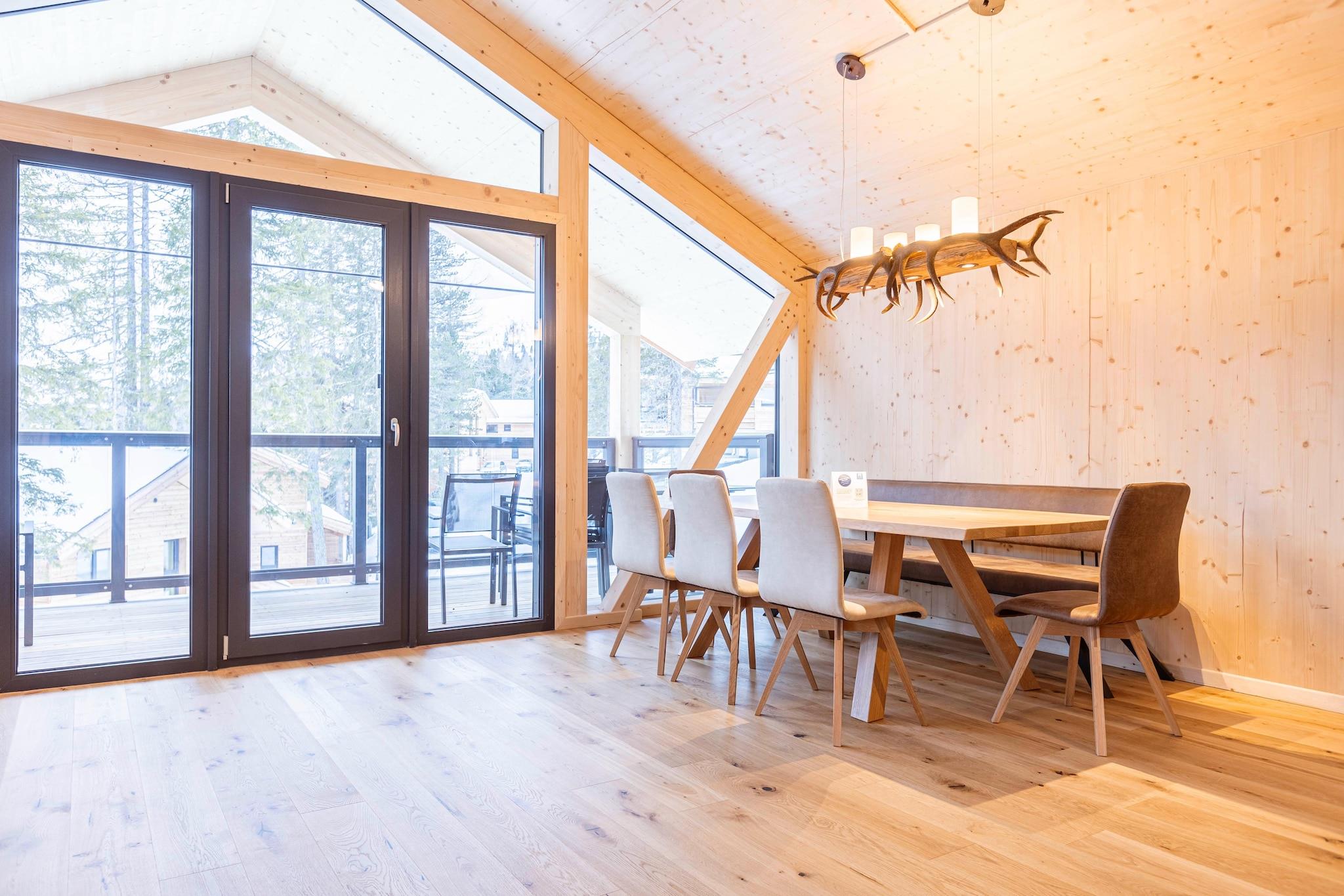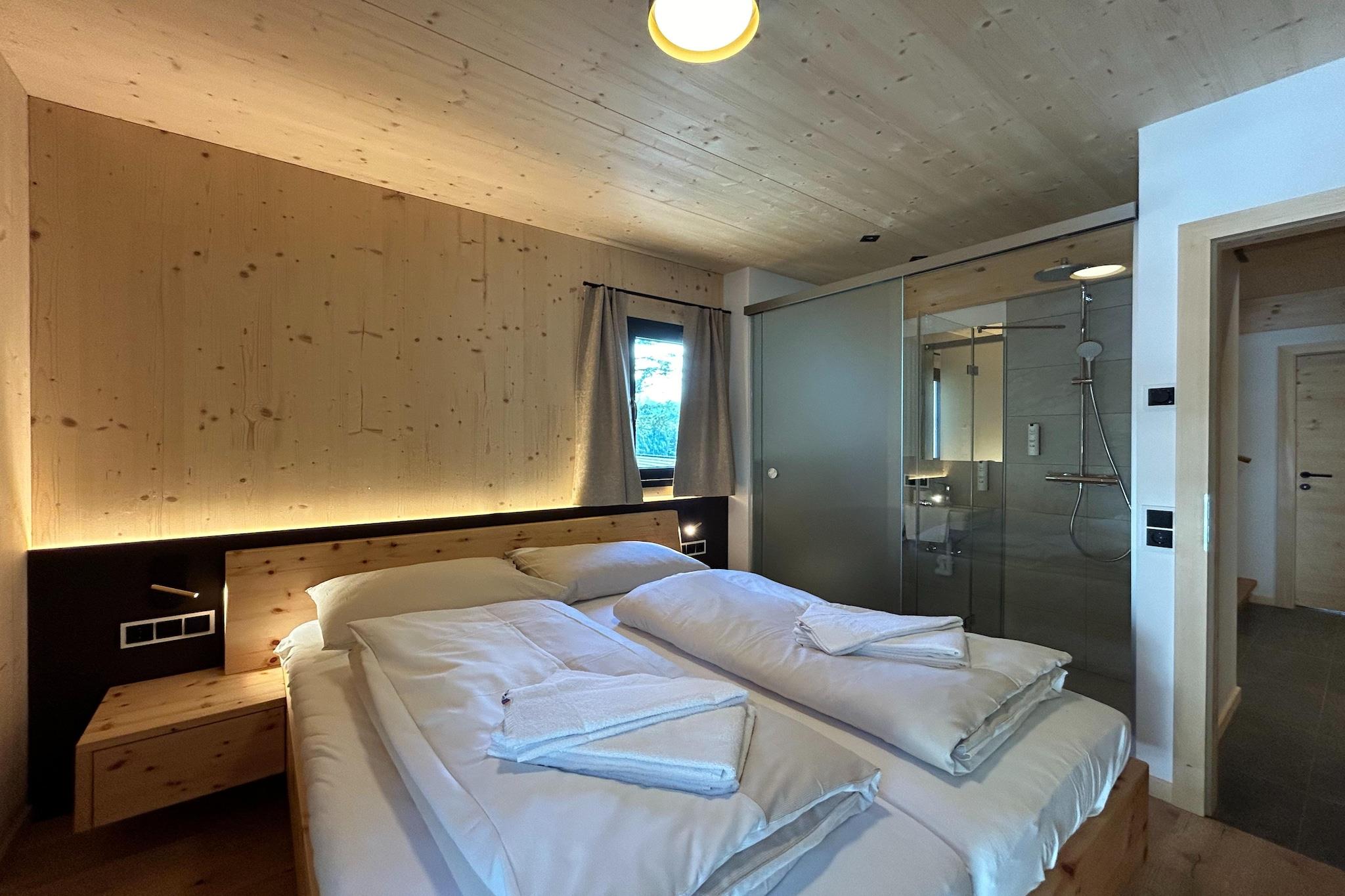 Dieses charmante Massivholzchalet mit 135 m² auf zwei Etagen bietet einen herrlichen Rückzugsort für bis zu 8 Personen. Das Chalet verfügt über vier gut ausgestattete Schlafzimmer: zwei im Erdgeschoss, jeweils mit einem Doppelbett, eigenem Bad und Balkon; ein weiteres Schlafzimmer im Erdgeschoss mit einem Doppelbett; und ein geräumiges Schlafzimmer im Obergeschoss mit einem Doppelbett und einem separaten Doppelbett sowie einem Bad. Genießen Sie einen entspannenden Ausklang des Tages in der finnischen Sauna im Haus oder im Whirlpool auf dem Balkon, der eine herrliche Aussicht bietet und zum Entspannen einlädt (Achtung: der Whirlpool hat keine Whirlpool-Funktion). Die Turracher Höhe bietet das ganze Jahr über eine Reihe von Aktivitäten. Im Winter ist sie ein beliebtes Skigebiet mit gut gepflegten Pisten, Langlaufloipen und Möglichkeiten zum Snowboarden und Rodeln. Im Sommer verwandelt sich die Gegend in ein Wander- und Radfahrparadies mit malerischen Wegen und atemberaubenden Bergblicken. Die offene Küche ist komplett ausgestattet, um all Ihre kulinarischen Bedürfnisse zu erfüllen, einschließlich Besteck, Kochgeschirr, Cerankochfeld, Backofen, Mikrowelle, Geschirrspüler und Kühlschrank mit Gefrierfach. Weitere Annehmlichkeiten sind ein Toaster, ein Wasserkocher und eine Nespresso-Kapsel-Kaffeemaschine. Bei Ihrer Ankunft erhalten Sie ein kleines Starterset mit den wichtigsten Reinigungsmitteln. Zu den Highlights des Chalets gehören kostenloses Wi-Fi, TV, eine Butler-Karte (Details vor Ort erhältlich) und ein Skischuhtrockner. Der Zugang zum Chalet erfolgt über eine asphaltierte Hauptstraße, gefolgt von einem malerischen Wald- und Forstweg, der zu Ihrem einladenden Ferienhaus führt.