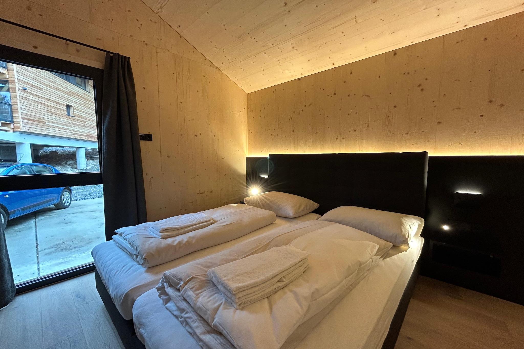 Erleben Sie den Charme des alpinen Lebens in diesem exquisiten Massivholz-Chalet, das 135 m² Platz auf drei einladenden Etagen bietet. Perfekt für Familien oder Gruppen, bietet das Chalet bequem Platz für bis zu 8 Personen und bietet eine ideale Mischung aus rustikaler Eleganz und modernem Komfort. Das Chalet verfügt über 4 gut ausgestattete Schlafzimmer, davon 2 auf der unteren Ebene mit Doppelbetten und eigenem Bad, und 2 weitere Schlafzimmer auf der oberen Etage, die ebenfalls mit Doppelbetten ausgestattet sind. Nach einem Tag der Erkundung der schönen Umgebung können Sie sich in der finnischen Sauna im Haus oder im Whirlpool auf dem Balkon entspannen, von dem aus Sie einen herrlichen Blick auf die Landschaft haben. Die offene Küche ist der Traum eines jeden Kochs, denn sie ist komplett ausgestattet mit Cerankochfeld, Backofen, Mikrowelle, Mixer, Geschirrspüler und Kühlschrank mit Gefrierfach. Das notwendige Besteck, Koch- und Essgeschirr ist ebenso vorhanden wie ein Toaster, ein Wasserkocher und eine Filterkaffeemaschine. Um Ihren Aufenthalt noch angenehmer zu gestalten, steht bei Ihrer Ankunft ein kleines Starterset mit Spülmaschinentabs, Spülmittel, Schwamm, Müllbeuteln, Reinigungsmitteln und einem Geschirrtuch bereit. Bleiben Sie mit dem kostenlosen Wi-Fi in Verbindung und genießen Sie Ihre Lieblingssendungen auf dem Fernseher. Für zusätzlichen Komfort verfügt das Chalet über einen Skischuhtrockner, damit Ihre Ausrüstung warm und bereit für Ihr nächstes Abenteuer ist. Zu den weiteren Highlights gehört die Butler Card, die exklusive Dienstleistungen bietet, die vor Ort beschrieben werden. Die Sauna und der Whirlpool im dritten Stock bieten einen luxuriösen Rückzugsort mit atemberaubender Aussicht. Bitte beachten Sie, dass die Zufahrt zum Chalet über eine asphaltierte Hauptstraße erfolgt, gefolgt von einem malerischen Wald- und Forstweg.