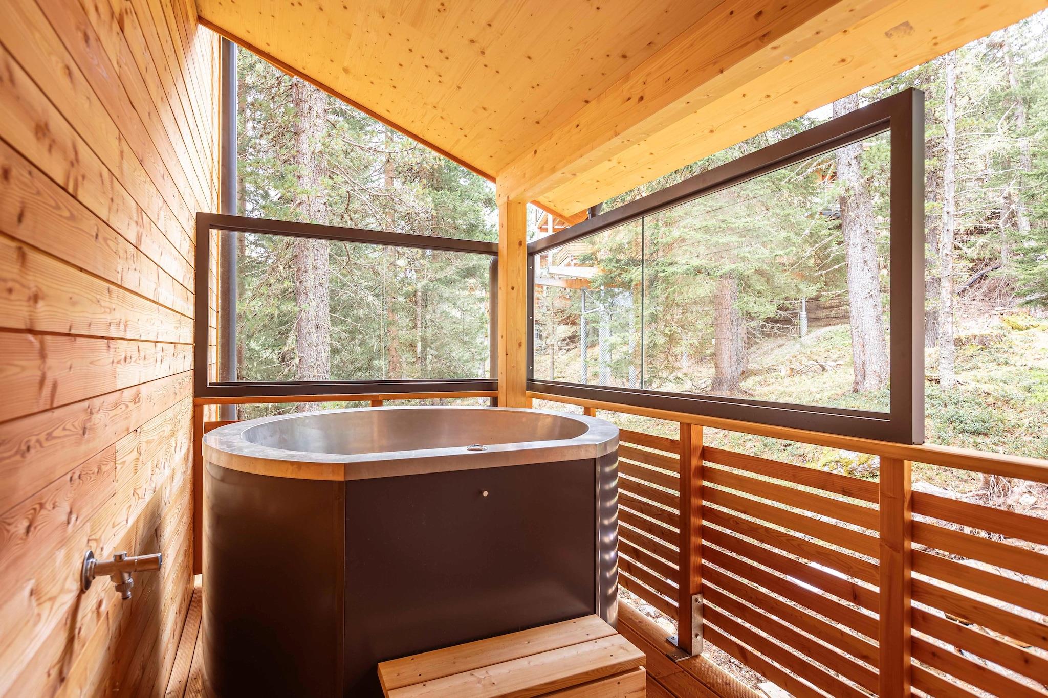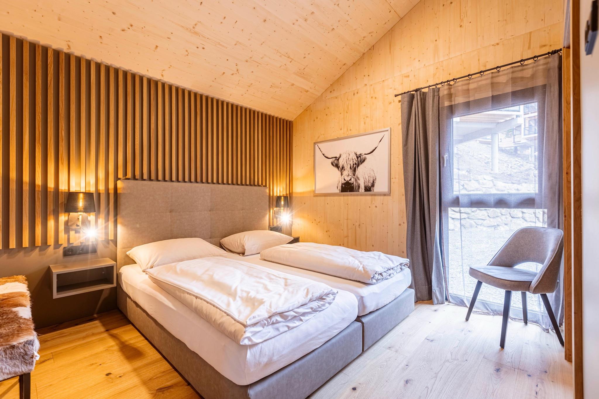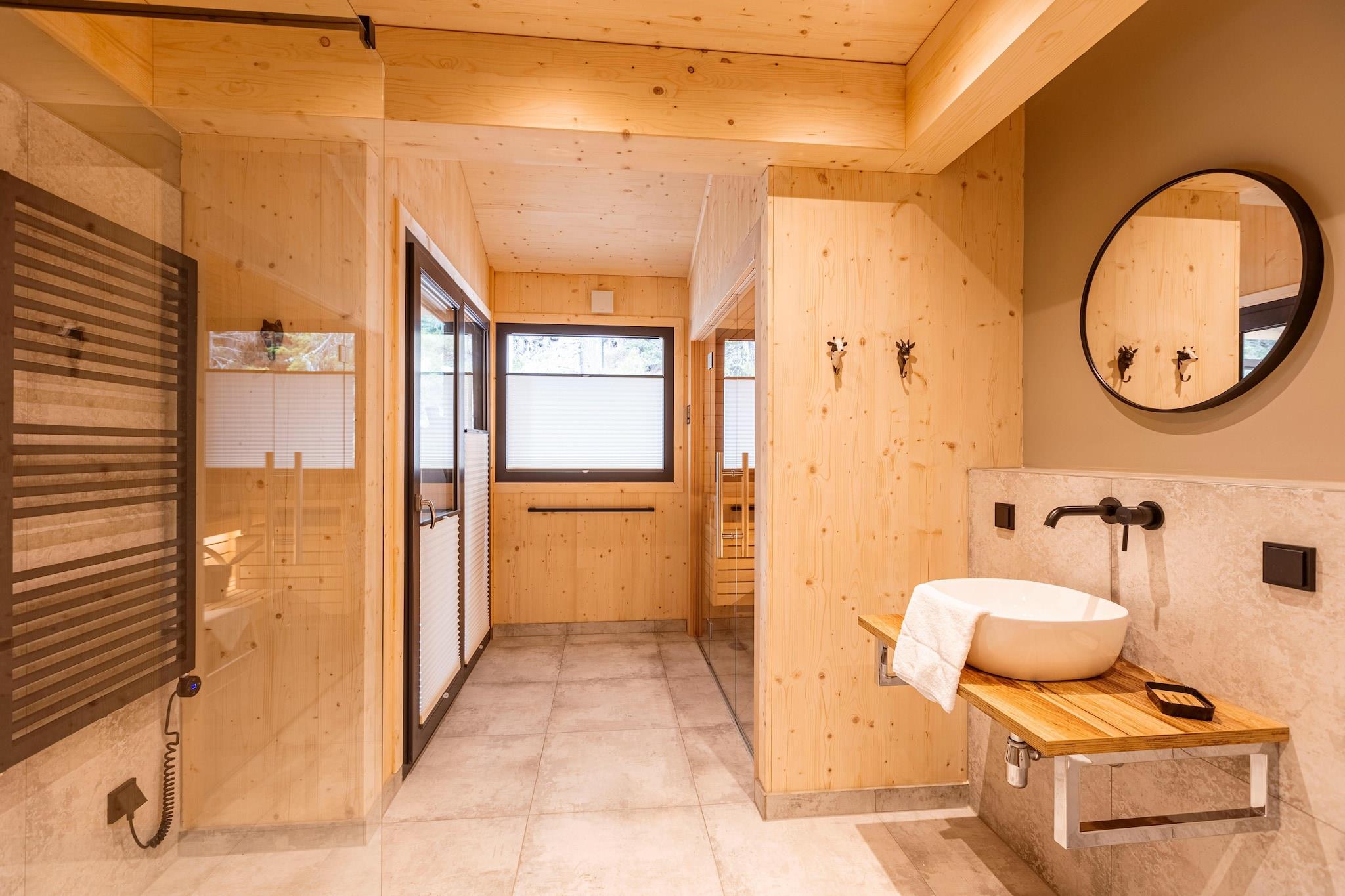 Willkommen in Ihrem perfekten alpinen Urlaub in diesem schönen Massivholz-Chalet, das auf 135 m² über zwei einladende Etagen verteilt ist. Ideal für Familien oder Gruppen, bietet dieses Chalet bequem Platz für bis zu 8 Personen und bietet eine Mischung aus rustikalem Charme und modernem Komfort. Das Chalet verfügt über 4 gemütliche Schlafzimmer, die jeweils mit einem Doppelbett ausgestattet sind und zum Teil über einen eigenen Balkon verfügen, von dem aus Sie die friedliche Aussicht auf den umliegenden Kiefernwald genießen können. Es gibt 3 Bäder, davon 2 mit eigener Dusche und ein weiteres großes Bad mit einer entspannenden Badewanne. Nach einem erlebnisreichen Tag können Sie sich in der privaten Sauna oder im Whirlpool entspannen, die beide für einen gemütlichen und entspannenden Ausklang des Tages sorgen. Die offene Küche ist komplett ausgestattet, um all Ihre kulinarischen Bedürfnisse zu befriedigen. Sie verfügt über ein Cerankochfeld, einen Backofen, einen Geschirrspüler und einen Kühlschrank mit Gefrierfach. Das notwendige Besteck, Koch- und Essgeschirr sowie weitere Geräte wie Toaster, Wasserkocher und Kaffeemaschine sind vorhanden. Um Ihnen die Anreise zu erleichtern, steht ein kleines Starterset mit Spülmaschinentabs, Spülmittel (Probe), Schwamm, Müllbeuteln, Reinigungsmitteln und einem Geschirrtuch zur Verfügung. Bleiben Sie während Ihres gesamten Aufenthalts mit kostenlosem Wi-Fi in Verbindung. Das Chalet liegt im ruhigen Kiefernwald der Turracher Höhe auf ca. 1.800 m Höhe und bietet einen ruhigen Rückzugsort mit dem zusätzlichen Luxus einer Butler Card oder eines Butler-Programms, die einen maßgeschneiderten Service für Ihren Aufenthalt gewährleisten. Bitte beachten Sie, dass es sich bei den Bildern um Beispielbilder handelt; jedes Chalet ist einzigartig eingerichtet, um ein individuelles Erlebnis zu schaffen.