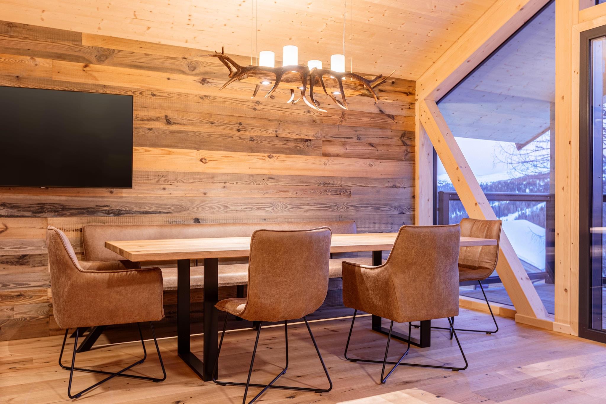 Willkommen in Ihrem alpinen Rückzugsort in diesem exquisiten 135 m² großen Massivholzchalet, das auf zwei einladenden Etagen eine perfekte Mischung aus rustikalem Charme und modernem Komfort bietet. Dieses Chalet bietet Platz für bis zu 8 Personen und ist die ideale Wahl für Familien oder Gruppen, die einen unvergesslichen Urlaub im Herzen der Natur verbringen möchten. Entspannen Sie sich in der finnischen Sauna im Haus oder genießen Sie ein wohltuendes Bad im Whirlpool auf dem Balkon, der einen atemberaubenden Blick auf die umliegende Landschaft bietet. Die Heizstrahler auf dem Balkon sorgen für eine gemütliche Atmosphäre bei abendlichen Zusammenkünften, egal zu welcher Jahreszeit. Das Chalet verfügt über 4 liebevoll eingerichtete Schlafzimmer. Im Erdgeschoss befindet sich das Hauptschlafzimmer mit einem Doppelbett, einem eigenen Bad und einem privaten Balkon, von dem aus Sie die Aussicht genießen können. Ein weiteres Schlafzimmer im Erdgeschoss verfügt ebenfalls über ein Doppelbett und ein eigenes Bad für zusätzlichen Komfort. Ein drittes Schlafzimmer im Erdgeschoss verfügt über ein Doppelbett, einen Schreibtisch zum Arbeiten oder Lernen und einen eigenen Balkon. Im Obergeschoss befindet sich ein geräumiges Schlafzimmer mit einem Doppelbett und einem separaten Doppelbett, das reichlich Platz für weitere Gäste bietet. Ein großes Bad mit Badewanne vervollständigt die Unterkunft. Die offene Küche ist komplett ausgestattet, um alle kulinarischen Bedürfnisse zu erfüllen. Sie verfügt über ein Cerankochfeld, einen Backofen, eine Mikrowelle, einen Geschirrspüler und einen Kühlschrank mit Gefrierfach. Das notwendige Besteck, Koch- und Essgeschirr sowie Toaster, Wasserkocher, Filterkaffeemaschine und Nespresso-Kapselkaffeemaschine sind vorhanden. Ein kleines Starterset mit Spülmaschinentabs, Spülmittel (Probe), Schwamm, Müllsäcken, Reinigungsmitteln und einem Geschirrtuch liegt bei Ihrer Ankunft für Sie bereit. Genießen Sie während Ihres gesamten Aufenthalts kostenloses Wi-Fi und TV. Weitere Highlights sind ein Skischuhtrockner für Ihren Komfort und eine Butler Card (Details vor Ort) für persönlichen Service. Bitte beachten Sie, dass die Zufahrt zum Chalet über eine asphaltierte Hauptstraße erfolgt, gefolgt von einem malerischen Wald- und Forstweg, der den abgelegenen und ruhigen Charme Ihres alpinen Refugiums noch verstärkt.
