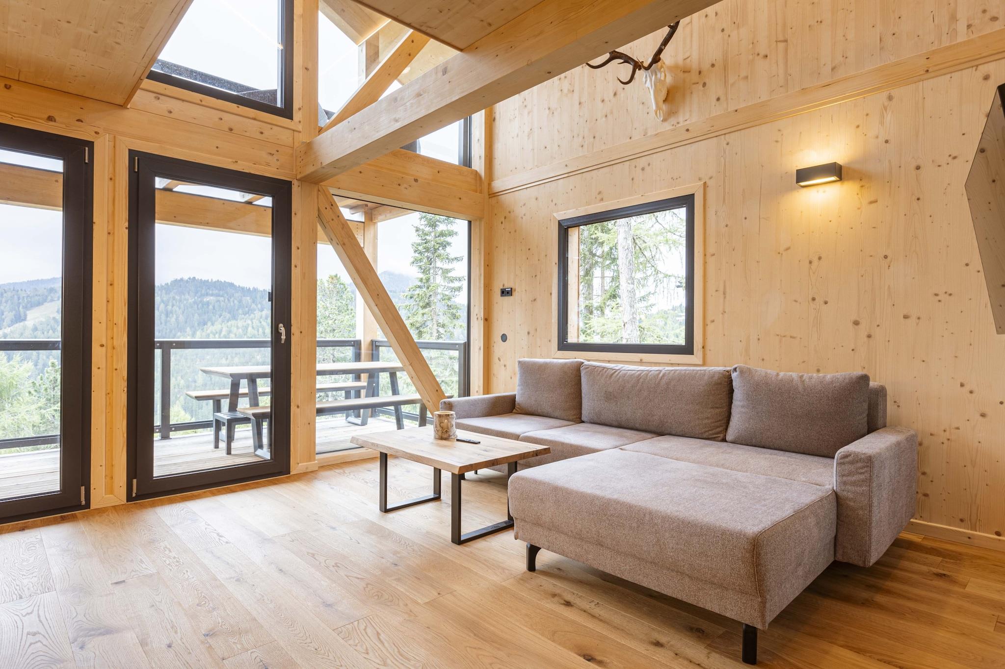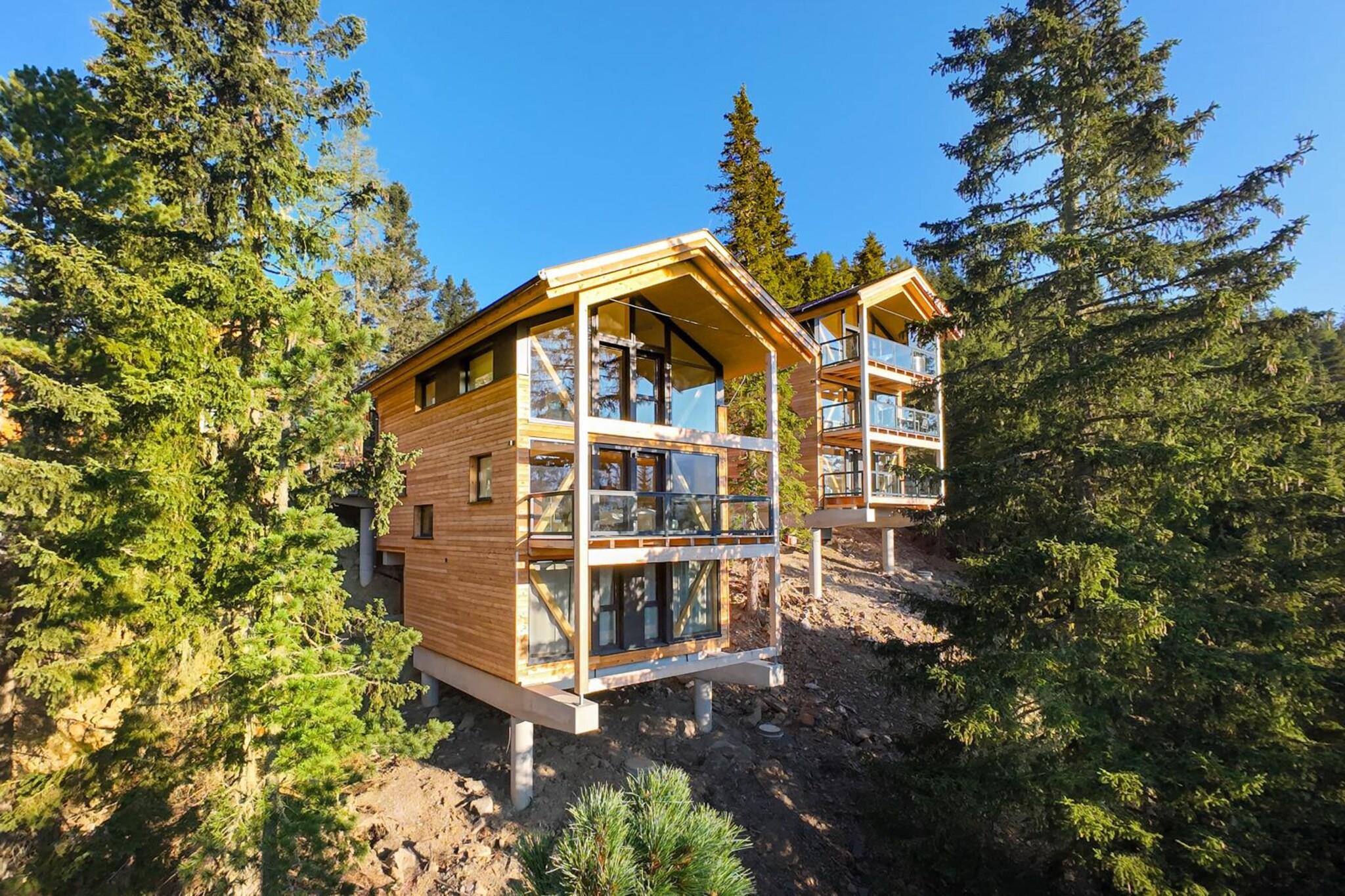 Auf 135 m² bietet das Massivholzbau-Chalet & Platz für bis zu 8 Personen auf 3 Etagen. Das Ferienhaus verfügt über 4 Schlafzimmer mit Doppelbetten (teilweise mit Balkon), Badezimmer mit Dusche en Suite und ein großes Badezimmer mit Badewanne. Für den gemütlichen Tagesausklang sorgt eine Sauna im Innenbereich sowie ein HotTub ohne Whirlfunktion am Balkon mit Ausblick! Die offene Küche ist voll ausgestattet: Besteck und (Koch-) Geschirr sind vorhanden, ein Cerankochfeld, Backofen, ein Geschirrspüler und ein Kühlschrank mit Gefrierfach gehören ebenso zur Ausstattung wie Toaster, Wasserkocher und eine Kaffeemaschine. WLAN ist kostenlos