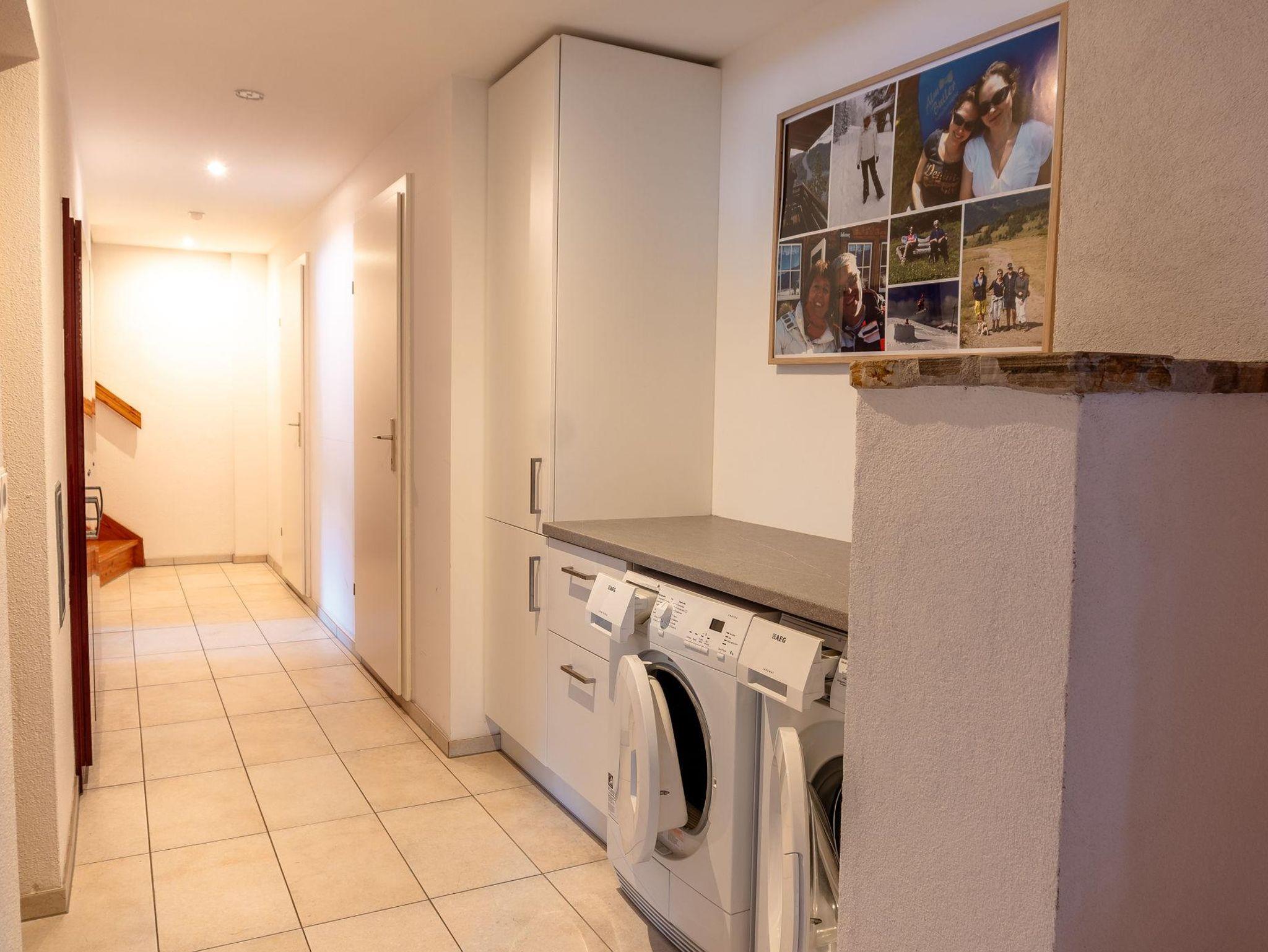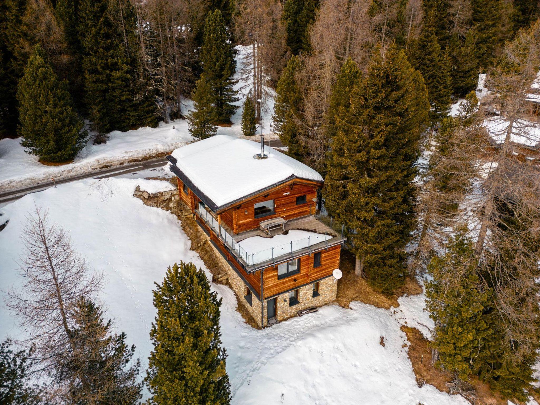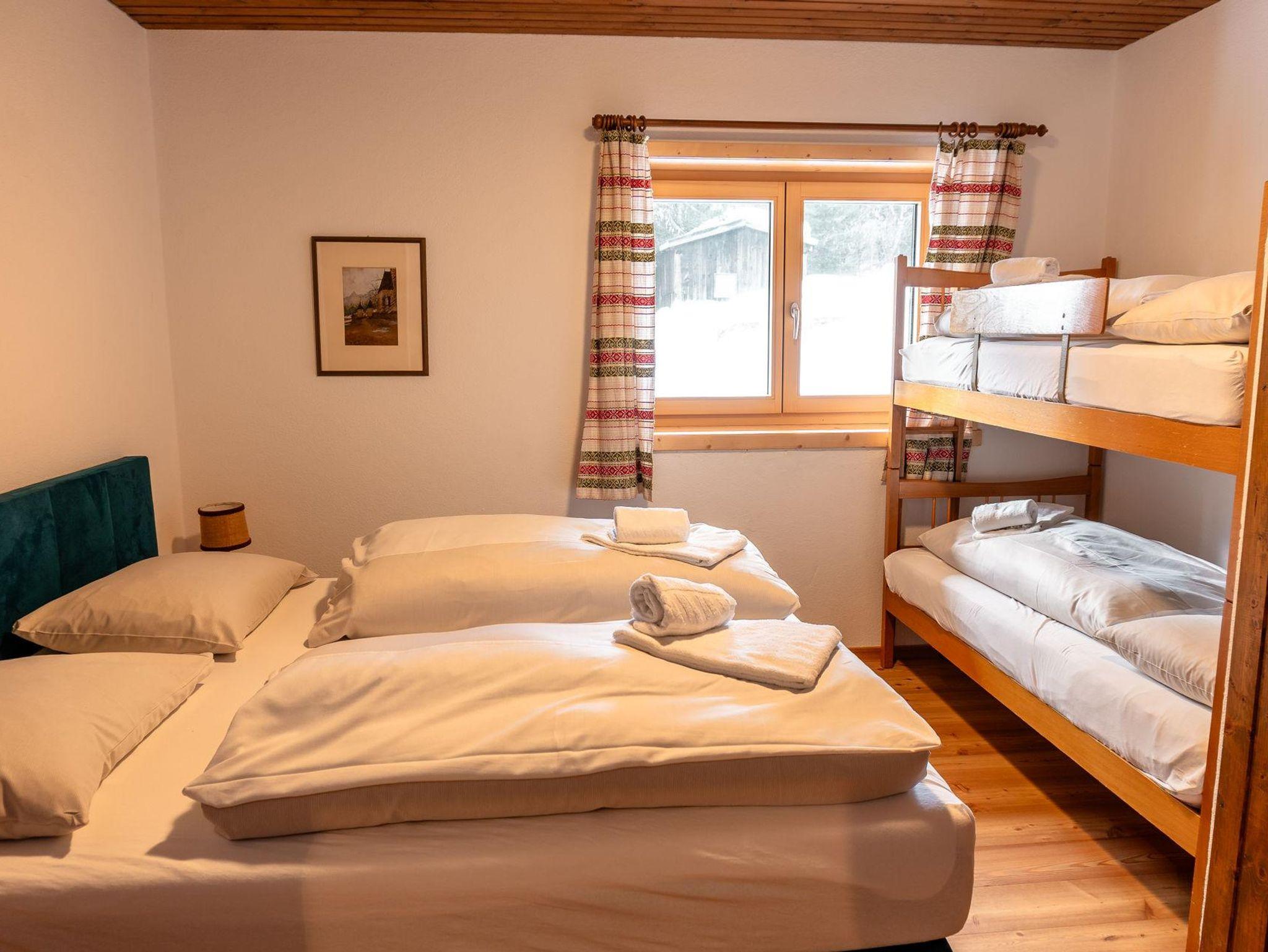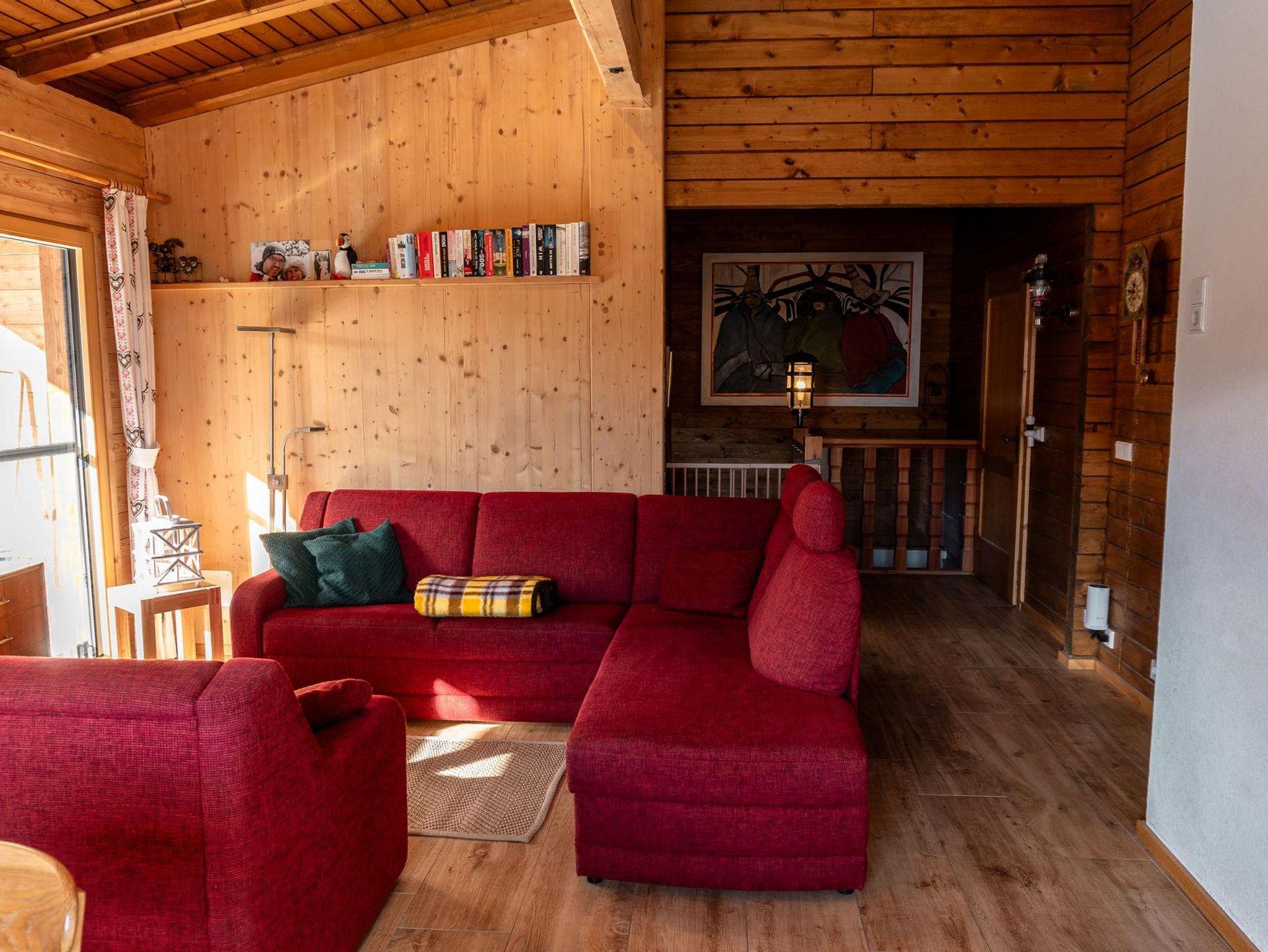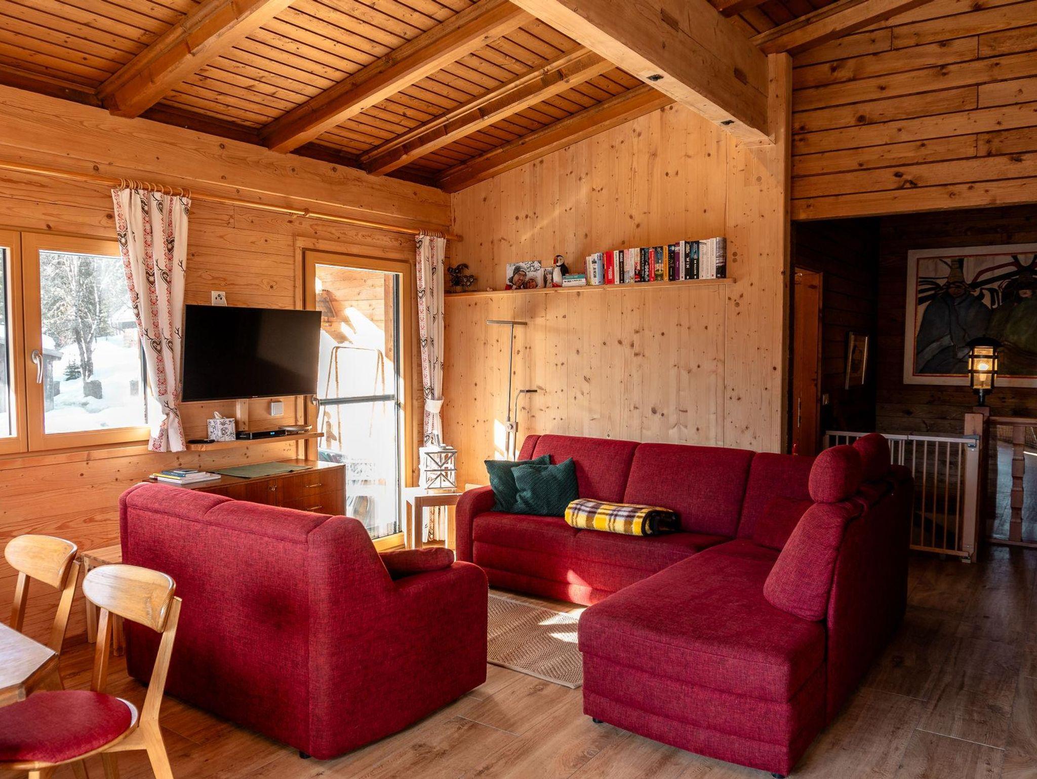 Das freistehende Chalet bietet einen Blick auf die gegenüberliegende Skipiste. Im Sommer hörst du die Kuhglocken auf der Bergwiese. Auf der großen Dachterrasse nach Süden kannst du in aller Ruhe die Sonne und die Aussicht genießen. Wir haben das Ferienhaus im Jahr 2014 komplett modernisiert, ohne den ursprünglichen Charme zu beeinträchtigen. Im Erdgeschoss findest du eine geräumige offene Küche mit einem fantastischen Kachelofen. Dieser sorgt nicht nur für angenehme Wärme, sondern ist auch ideal für Slow Cooking. Unser Chalet wird durch Erdwärme beheizt, eine bewusste Nachhaltigkeitswahl, die sich auch in der Verwendung vieler Materialien im Ferienhaus widerspiegelt. Im Erdgeschoss gibt es neben dem Wohnzimmer auch ein Schlafzimmer und ein modernes Badezimmer. Dadurch eignet sich das Chalet auch sehr gut für 2 Personen, ohne dass ihr euch in einem viel zu großen Ferienhaus verloren fühlt. Die anderen drei Schlafzimmer befinden sich eine Etage tiefer. Hier gibt es ein zweites Badezimmer. Eine Etage tiefer findet ihr unseren Spa-Bereich. Eine Sauna, ein Whirlpool, eine beheizte Sitzbank und eine gemütliche Ruheecke vervollständigen unser Wellnessangebot. Durch die Hanglage sind alle Etagen oberirdisch. Unser Chalet verfügt über eine geräumige überdachte Parkgarage, in der auch eure Skier aufbewahren könnt und eure Skischuhe beheizt werden. Und vielleicht am wichtigsten: Der Skibus hält direkt vor unserer Tür, aber es ist auch möglich, direkt von unserer Hütte auf eine Skipiste zu fahren.