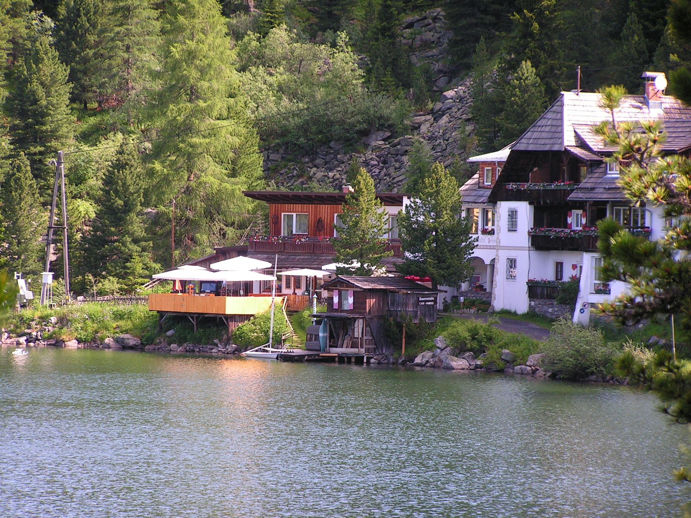 Das Haus wurde zwaz im Ursprung 1937 erbaut wurde auch 2000 erweitert und hat nun mit seiner Caféhausterrsasde die ideale Lage am See ohne jeden Autoverkehr.