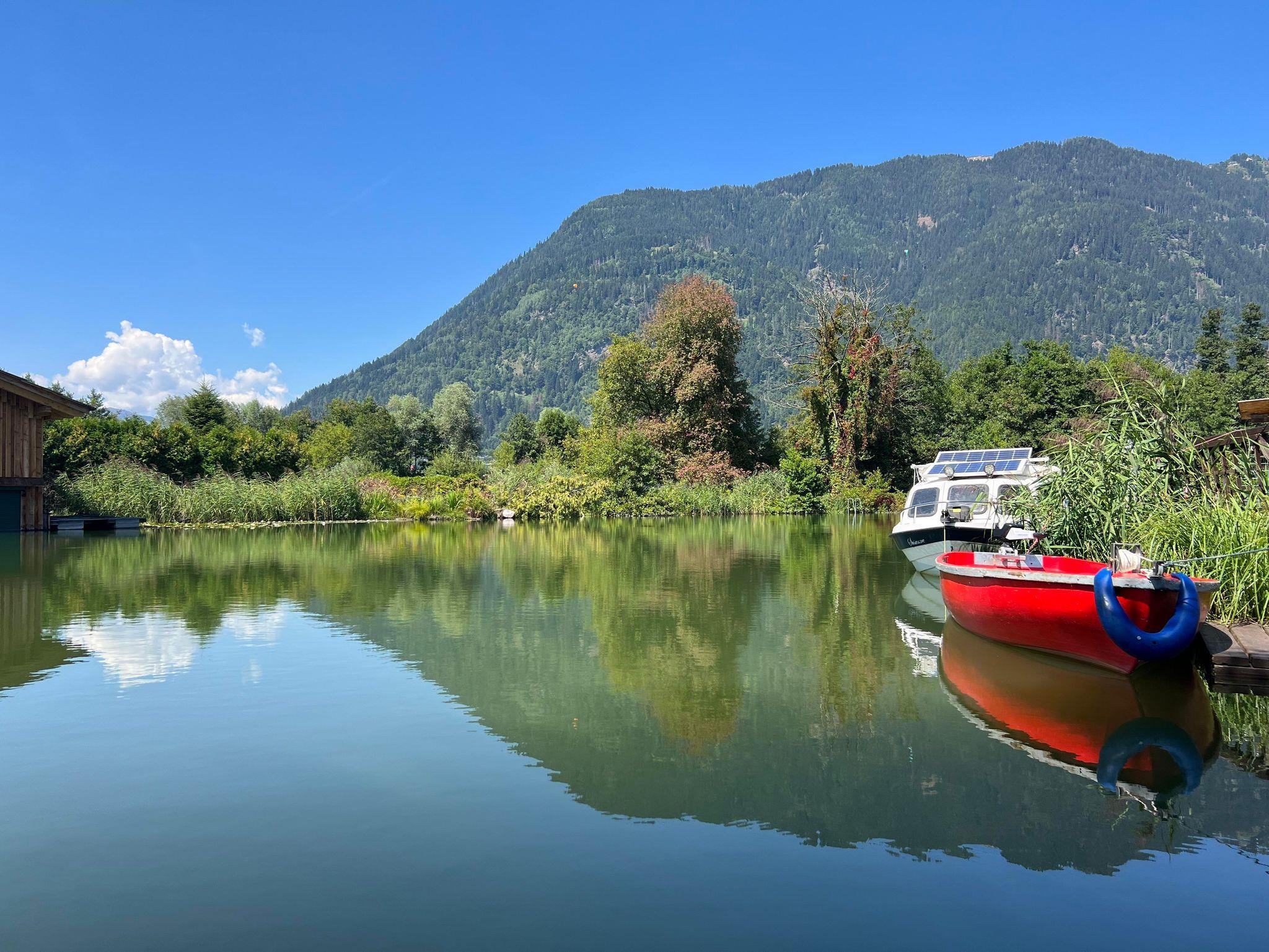 Erleben Sie Freiheit bei Ferienwohnungen Schiller! Umgeben von der faszinierenden Natur Österreichs, bieten die Ferienwohnungen Schiller in Landskron einen unvergesslichen Rückzugsort. Direkt an einem idyllischen Fluss gelegen, können Sie das klare Wasser und die grüne Wiesenlandschaft in vollen Zügen genießen. Hier erwartet Sie nicht nur ein eigener Badestrand, sondern auch die Möglichkeit, die hauseigenen Tretboote kostenlos zu nutzen!
