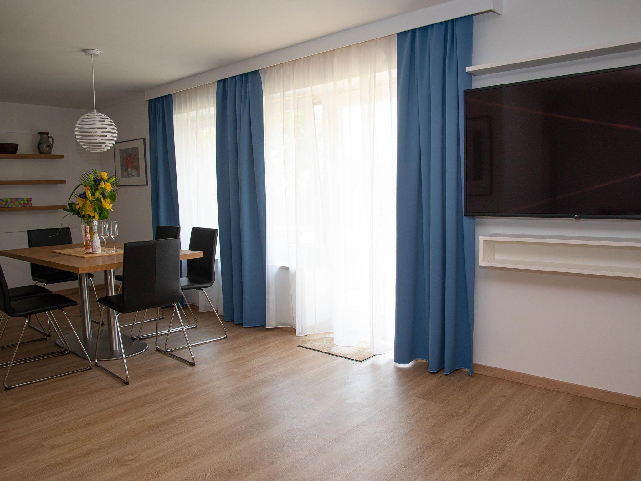 Unser Gästehaus mit 5 liebevoll eingerichteten und neu renovierten Apartments, mit Terasse oder Balkon, inmitten einer großzügigen, gepflegten Gartenanlage liegt an der sonnigen Seite des Magdalenen Sees.