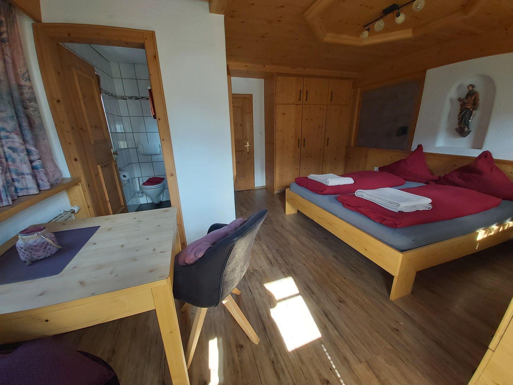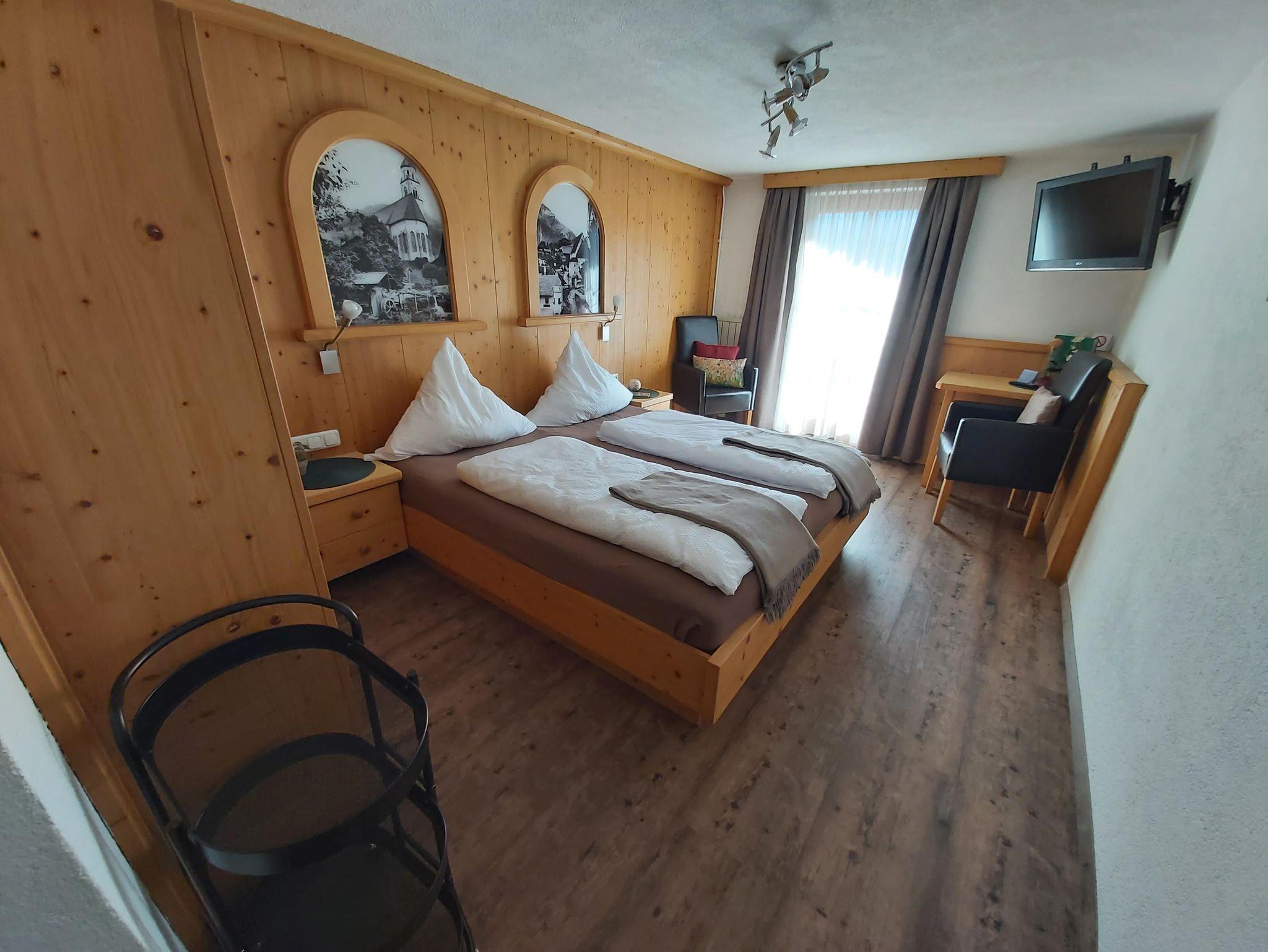 Gemütlich eingerichtete Doppelzimmer mit Du/WC, Sat-TV, CD-Radio und Föhn. Balkon mit Blick auf den Dorfplatz und unsere schöne Gebirgslandschaft