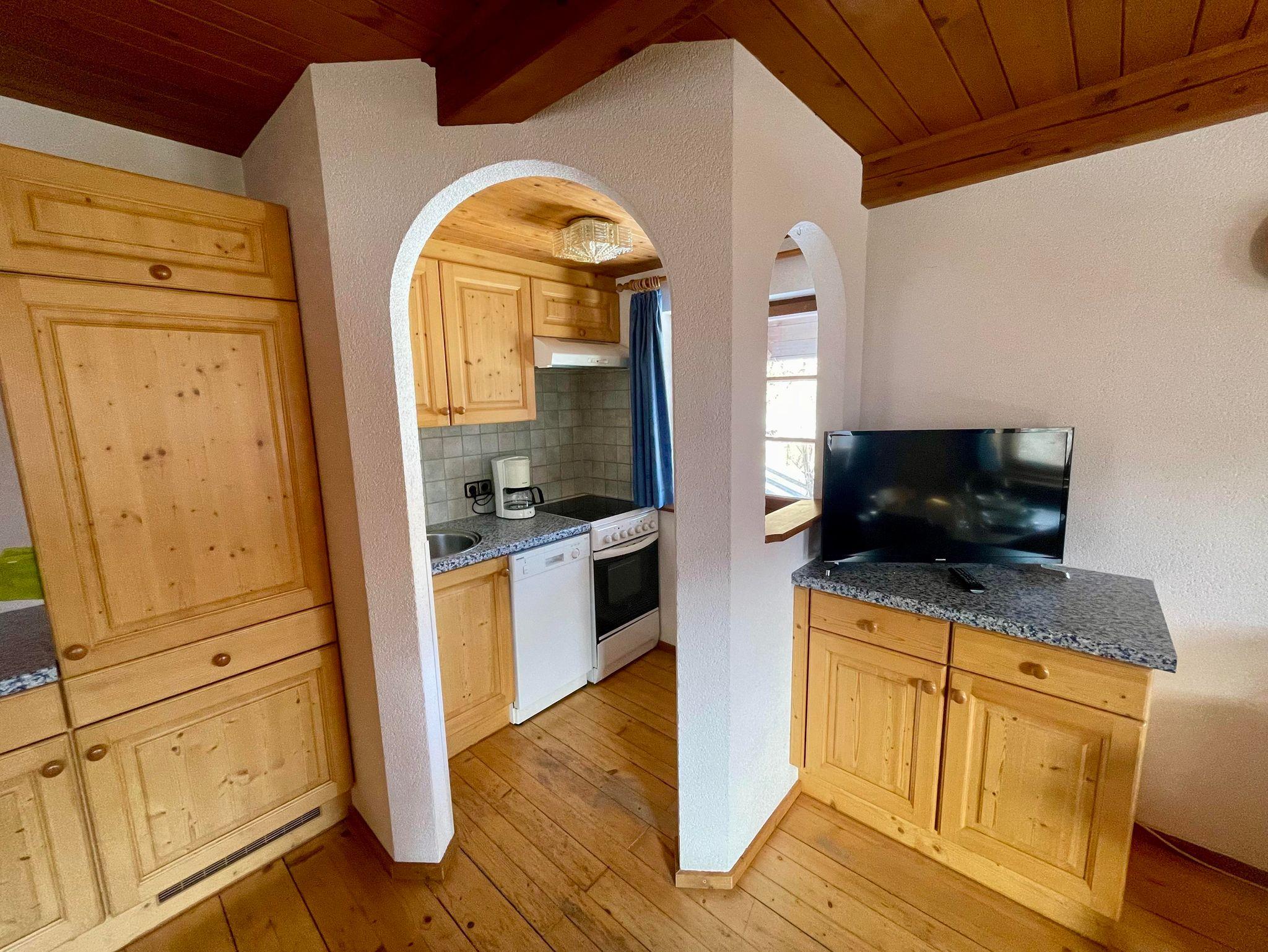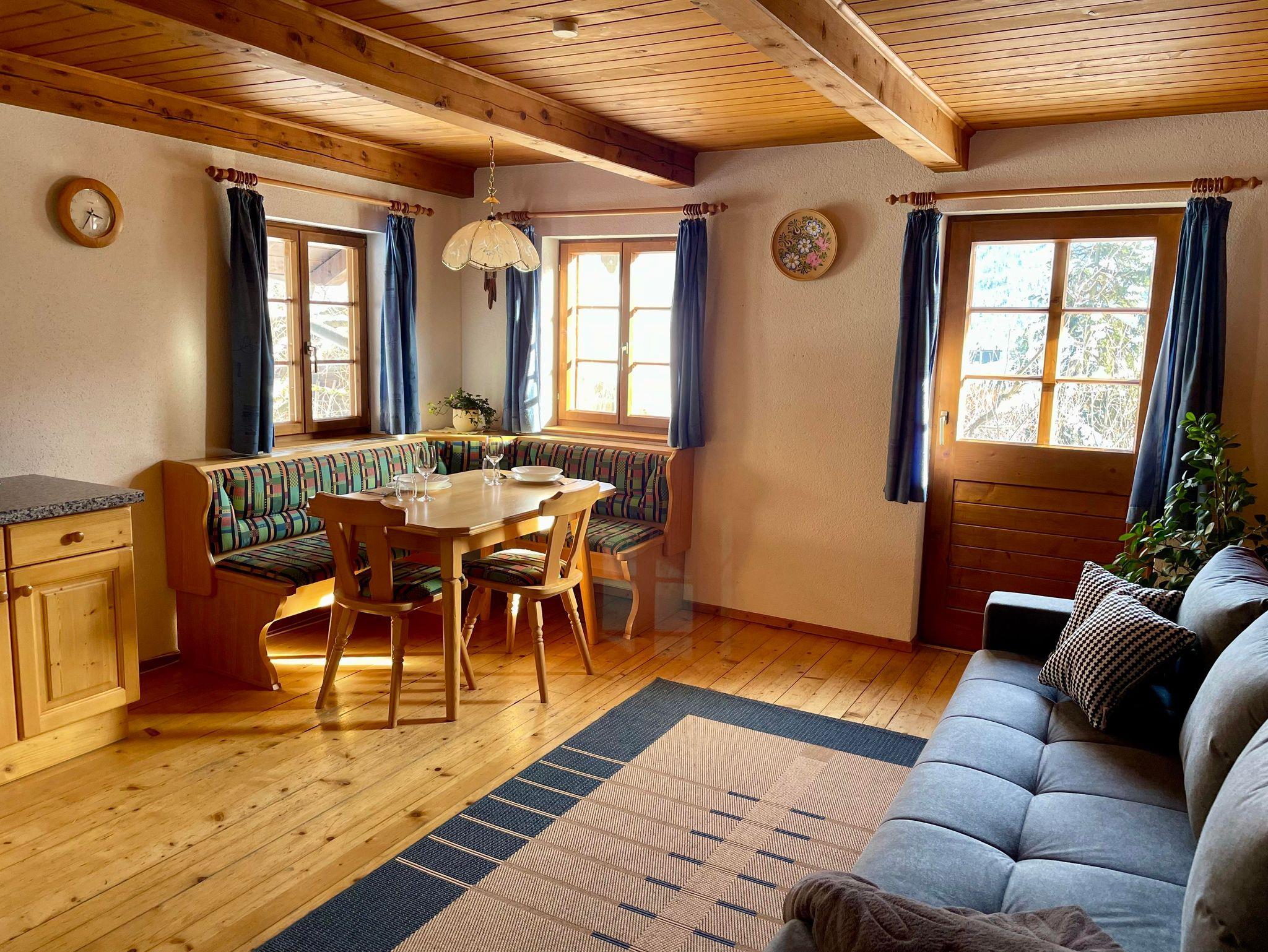 Unsere Wohnung bietet: eine vollausgestattete Küche mit geräumigen Ess-/Wohnbereich, Balkon nach Süden, Badezimmer mit Dusche und WC, sowie ein gemütliches Schlafzimmer mit Vollholzmöbeln. Das Wlan steht Ihnen gratis zur Verfügung.
