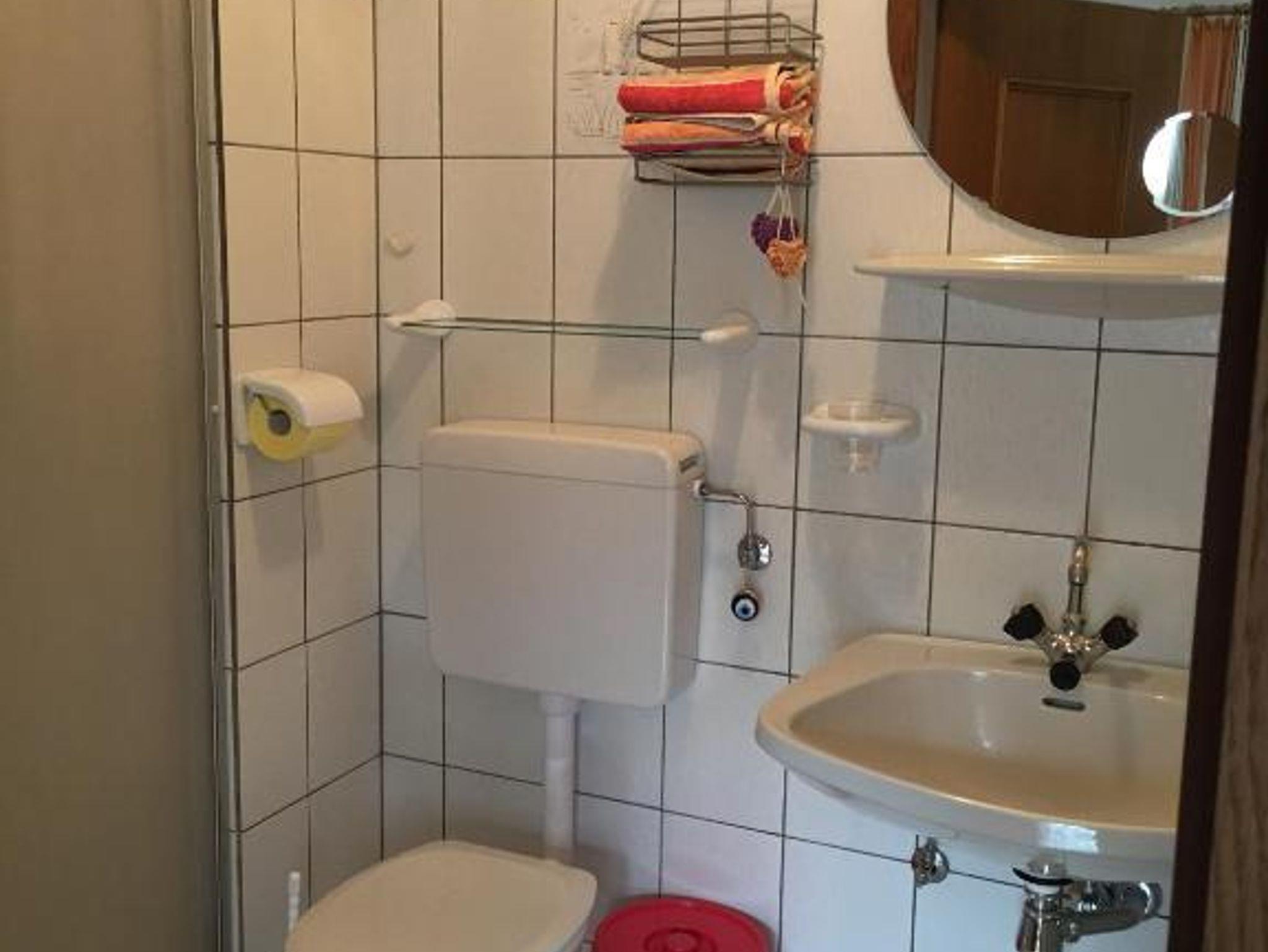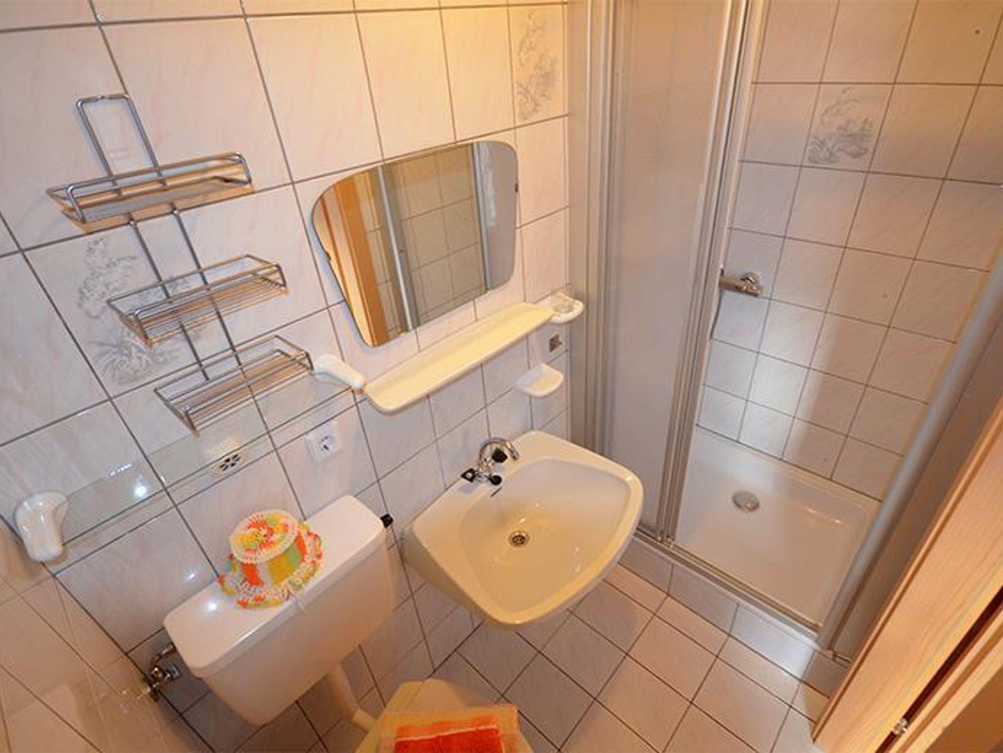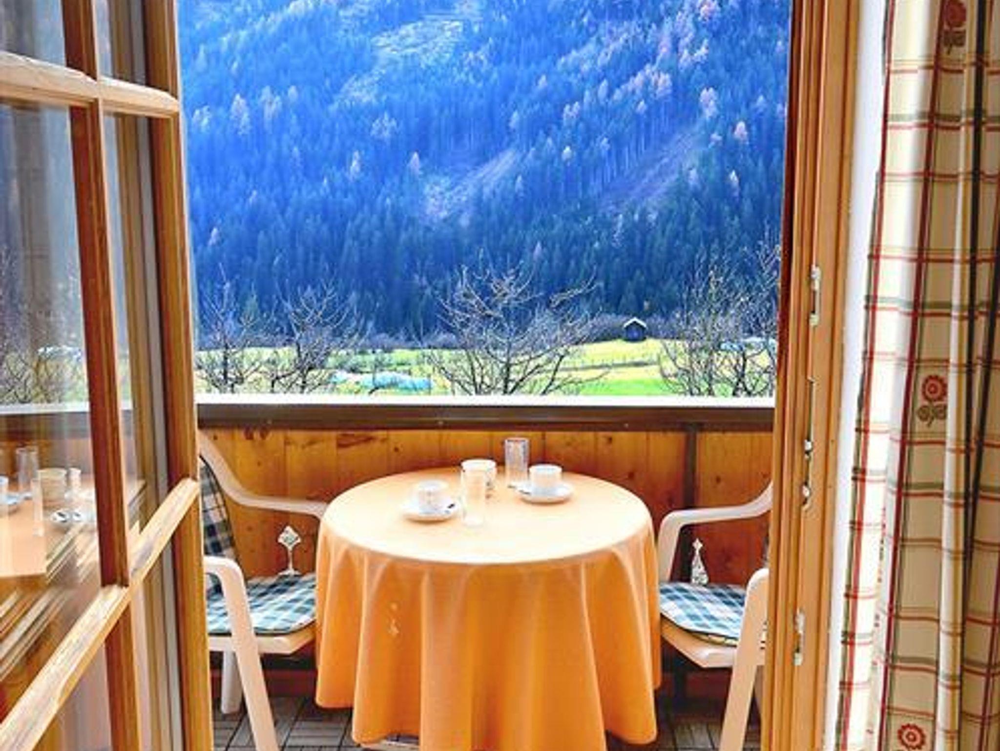 38m² Appartement im 1.Obergeschoss:1 Schlafzimmer (1,80x2m Bett) mit Flat-Screen, kleines Badezimmer mit Dusche/WC, gut ausgestattete Wohnküche mit gemütlicher Eckbank und Esstisch, sonniger Balkon mit Bergpanorama