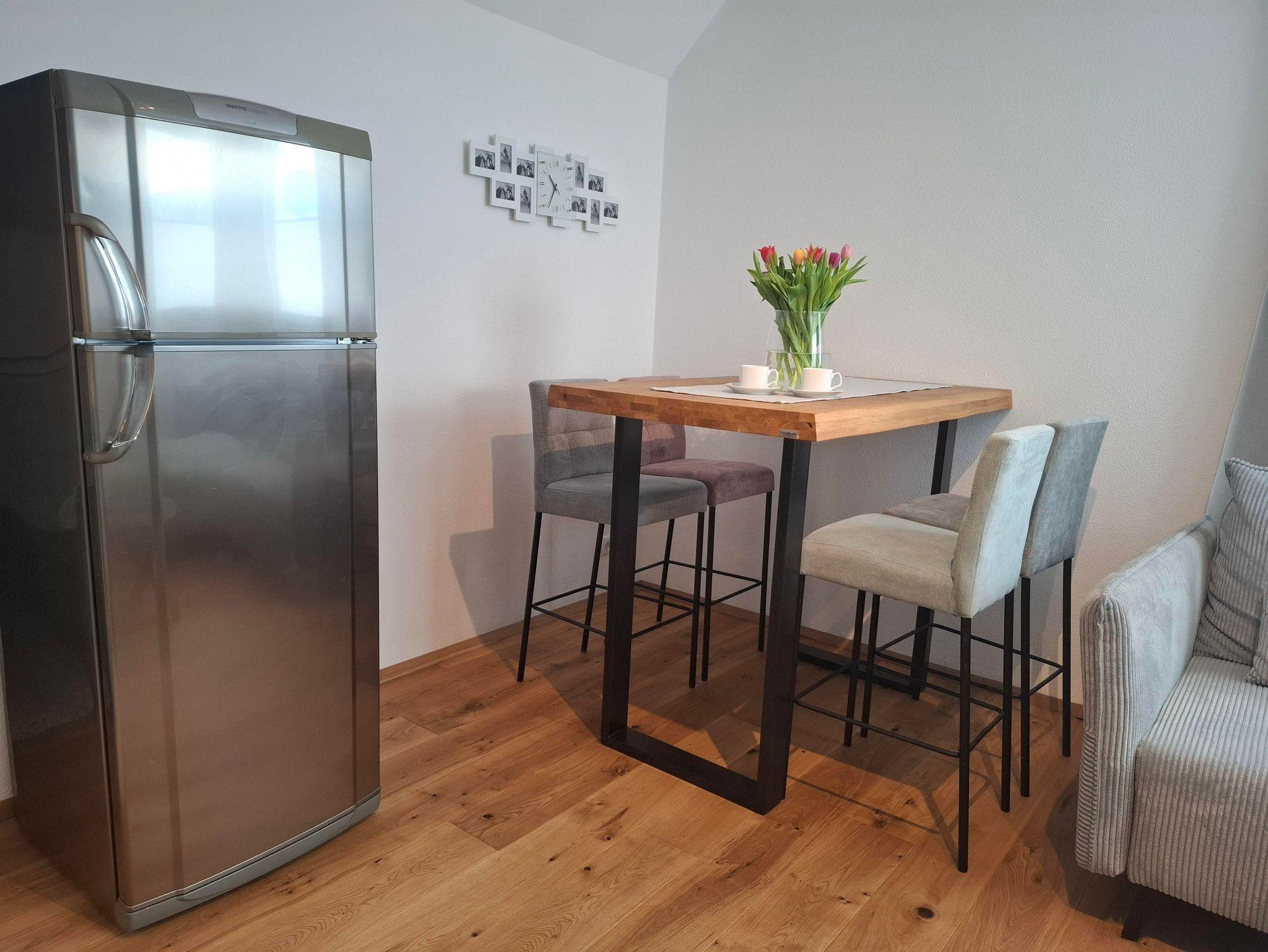 Die Unterkunft verfügt über ein gemütliches Schlafzimmer, einen Wohn- und Kochbereich mit einer vollausgestatteten Küche inkl. Geschirrspüler und Tabs sowie einem geräumigen freistehenden Kühlschrank mit Gefrierfach. Das Sofa kann zu einem Bett umfunktioniert werden und bietet somit einen angenehmen dritten Schlafplatz für ein Kind. Ein Flachbildfernseher inkl. Netflix, Nintendo Switch inkl. kindgerechten Spielen, sowie kostenloses, unlimitiertes high-speed WLAN sind vorhanden. Weiters gibt es eine Kaffemaschine inkl. Kaffeekapseln. Hand-/Bade-/Geschirrtücher und Bettwäsche sind natürlich inkludiert.