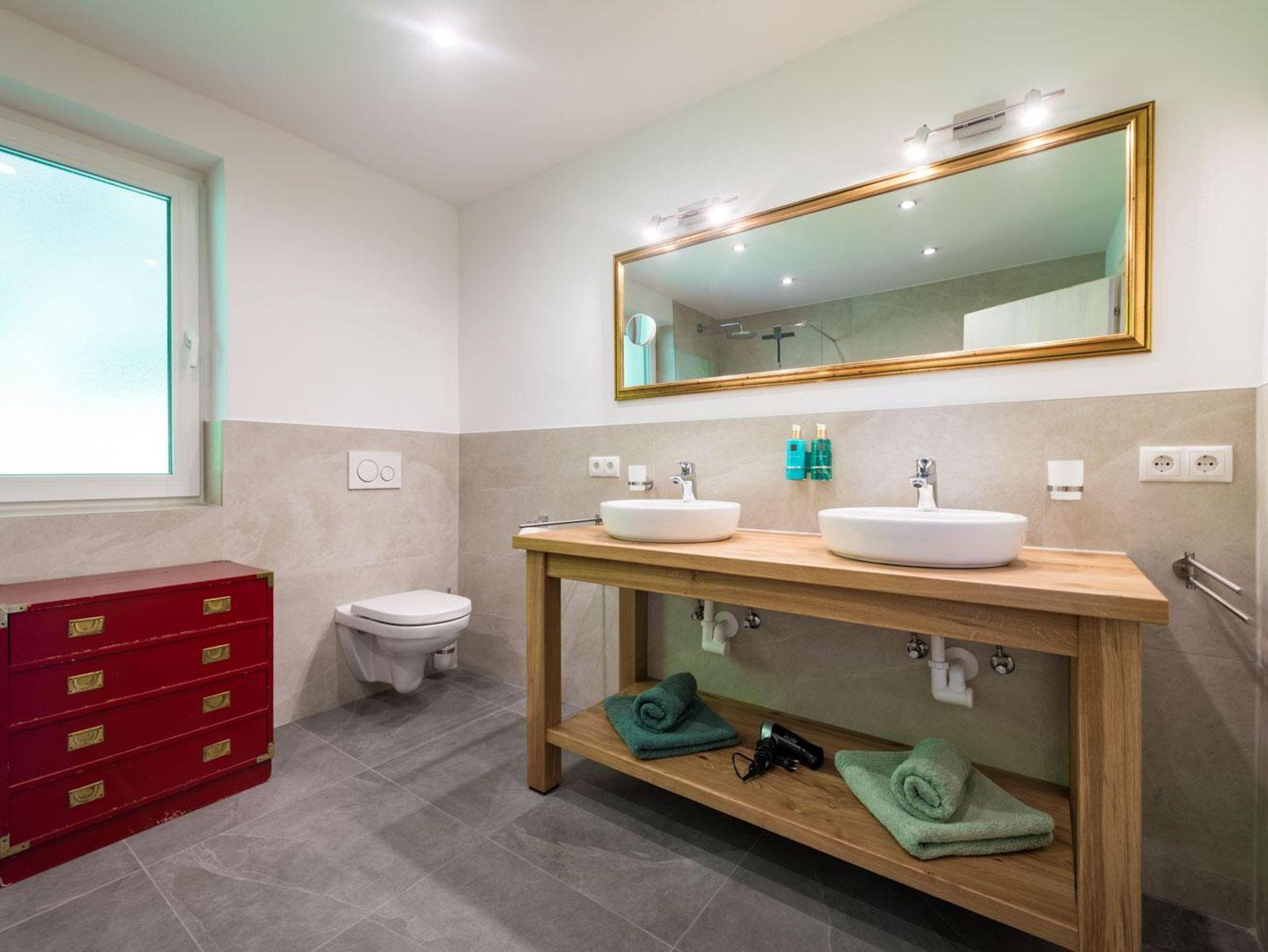 Die 100m² große Ferienwohnung verfügt über 3 Schlafzimmer mit 2 Doppelbetten und einem Stockbett. Ein ausziehbares Sofa ist ebenfalls vorhanden. Die Wohnung bietet Platz für bis zu 6 Personen. Nach einem Ski- oder Wandertag kann man in der Infrarotkabine und am Holzofen herrlich entspannen.