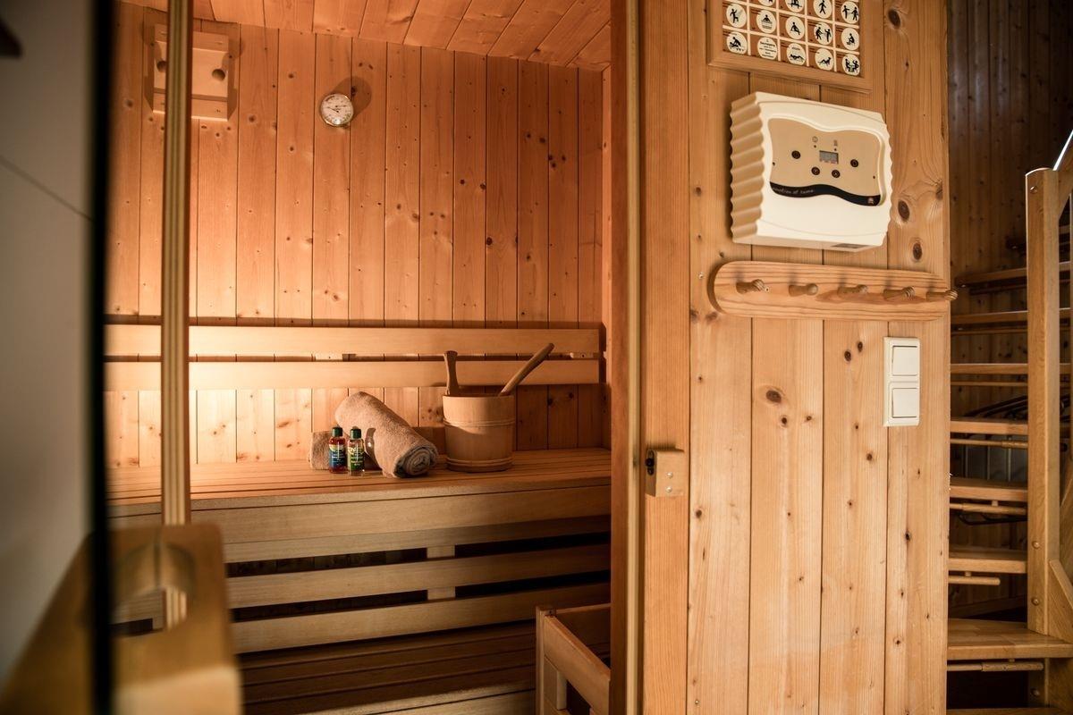 Der Wohnbereich mit Schwedenofen, Esstisch und SAT-TV schafft eine warme Atmosphäre, während die voll ausgestattete Küche alles bietet, was du für gemeinsame Mahlzeiten brauchst. Nach einem aktiven Tag auf der Piste lädt die hauseigene Sauna zum Entspannen ein.