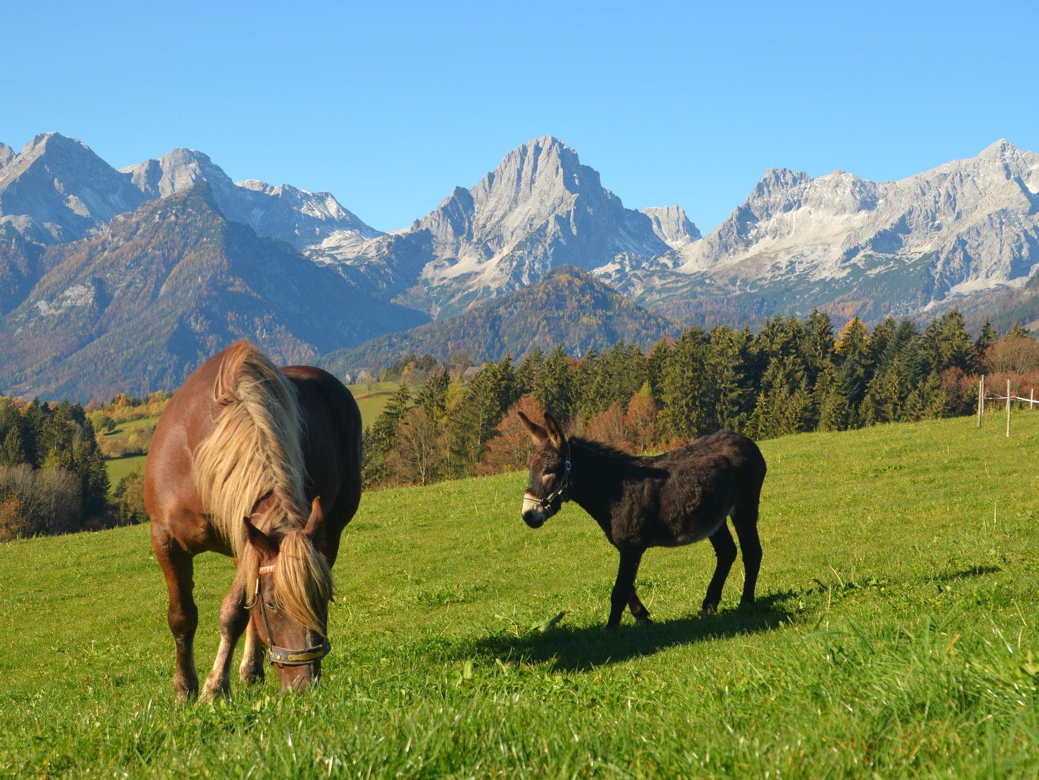 Der Hof liegt auf einem sonnigen Höhenrücken in 800 m Seehöhe, mit schöner Aussicht auf das Tote Gebirge. Er ist Ausgangspunkt für Wanderwege. Wir bieten Ihnen auch Lagerfeuer, Rodeln bei Fackellicht, hauseigene Produktion,... Hier am Ferienhof erleben Sie Urlaub in Landidylle. Auch Wanderungen auf die eigenen Almen sind möglich.