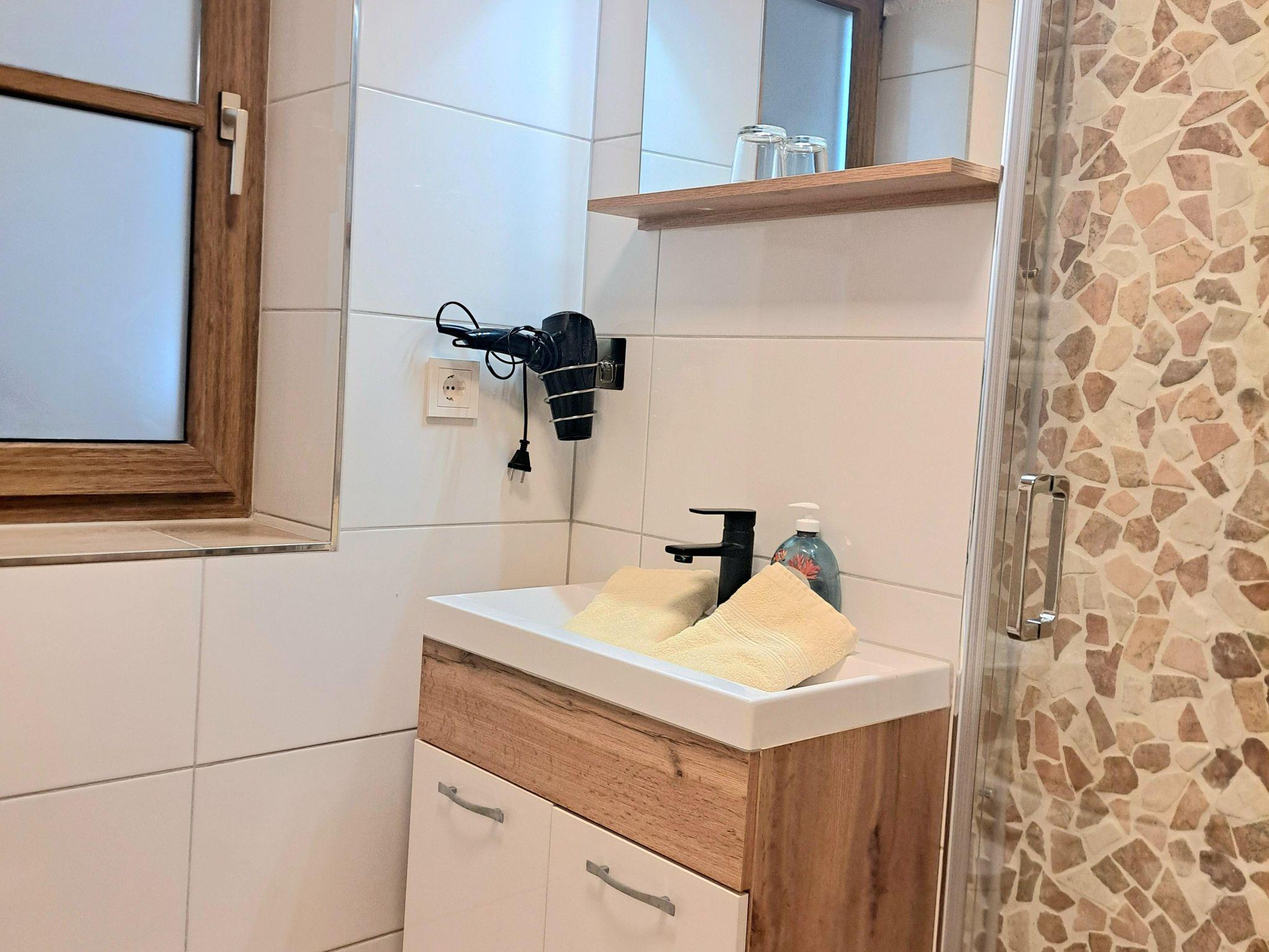 ein gemütliches Schlafzimmer mit Doppelbett und Couch, TV 2. Schlafzimmer mit 2 Einzelbetten und ein Waschbecken Küche mit einer Kochnische und eine Sitzecke Sanitärraum mit Dusche und WC