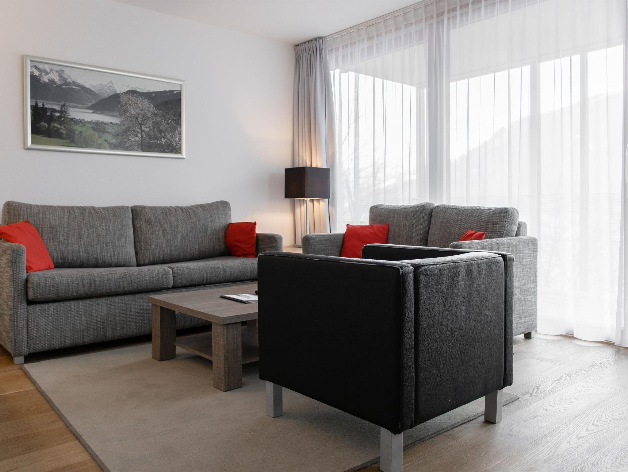 Die Residence Bellevue verfügt über Zimmer und Suiten mit 2 bis 4 Schlafzimmern sowie Balkon oder Terrasse mit See- und Bergblick. Die Innengestaltung überzeugt mit hochwertigen Materialien, stilvollem Design und einem großzügigen Raumgefühl. Im Haus befinden sich 2 Saunen, Privatparkplätze, ein beheizter Skikeller und eine Waschküche. Eine geräumige, komplett ausgestattete Küche und kostenloses WLAN runden das Angebot ab.