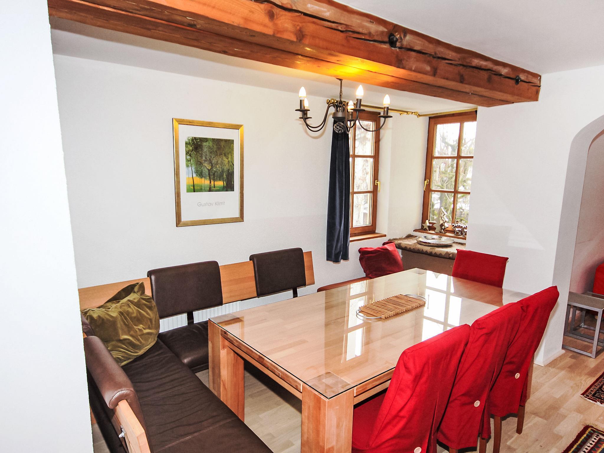 5-Zimmer-Haus 150 m2 auf 3 Stockwerken. Geschmackvoll und gemütlich eingerichtet: grosses Wohn-/Schlafzimmer mit 1 Doppelbett und Kabel-TV (Flachbildschirm), Kachelofen. Offenes Esszimmer. 1 Doppelzimmer. Küche (Backofen, Geschirrspüler, 4 Glaskeramikplatten, Mikrowelle, elektrische Kaffeemaschine) mit Essecke. Ausgang zur Terrasse. Bad, sep. WC, Doppelwaschbecken. Unteres Geschoss: Eingang. Bad/WC. Dachgeschoss: 1 Doppelzimmer mit 1 Doppelbett und Dusche/WC. 1 abgeschrägtes Zimmer mit 1 Doppeldiwanbett und 1 Doppelbett. Grosse Terrasse, Garten. Sehr schöne Sicht auf die Berge und die Skipiste. Zur Verfügung: Waschmaschine, Wäschetrockner, Safe, Bügeleisen, Haartrockner. Internet (WLAN, gratis). Bitte beachten: Rauchmelder. Erstaustattung Brennholz inkludiert. 50628-000385-2020