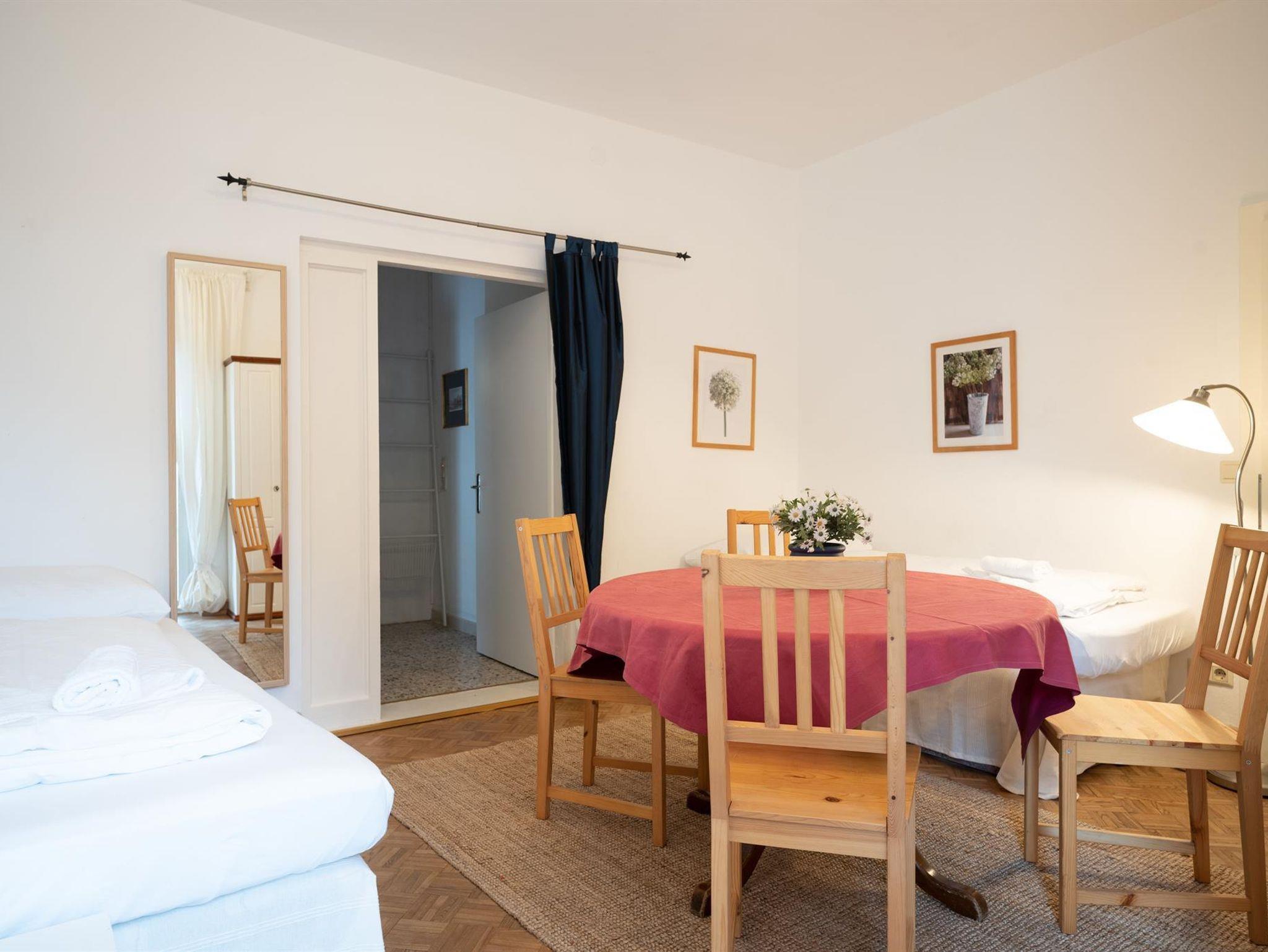 Die Unterkunft verfügt weiter über einen Aufzug, ein Bügeleisen/-brett, einen Internetanschluss (WLAN), einen Föhn, eine Zentralheizung sowie einen Ventilator und einen Fernseher.Die Küche mit elektrischem Kochfeld ist ebenfalls voll ausgestattet: Dort findet sich ein Kühlschrank, ein Backofen, Geschirr/Besteck, Kochutensilien, eine Kaffeemaschine, ein Toaster und ein Wasserkocher.
