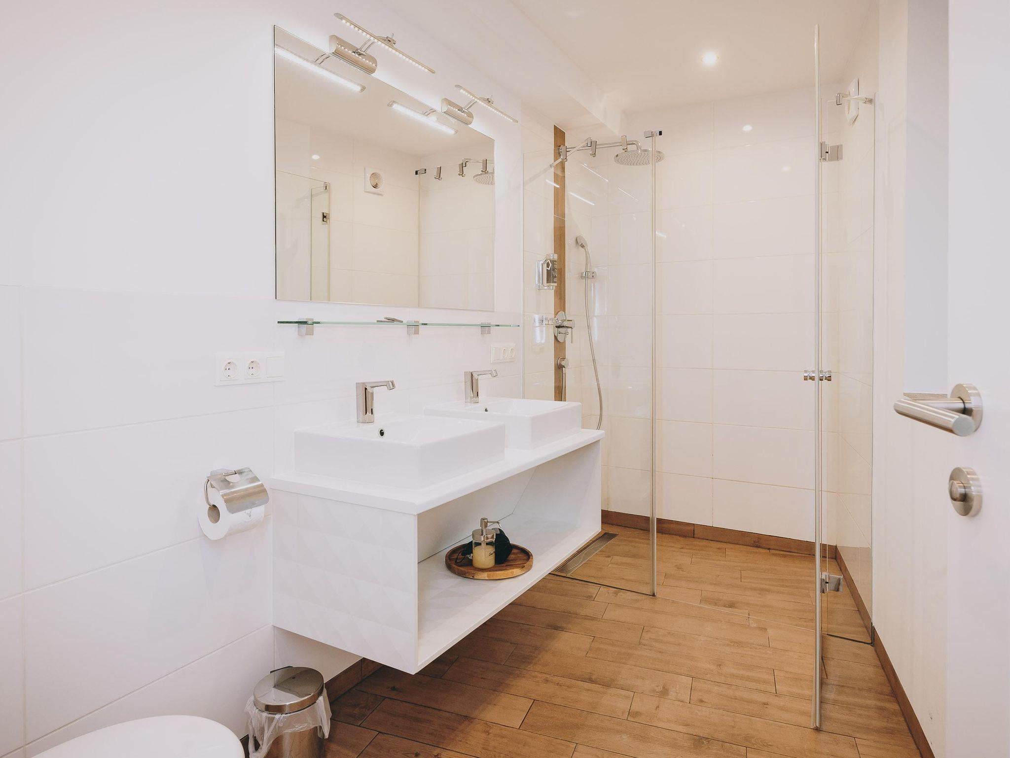 Superior Ferienwohnung. Bergblick, modern. 2 Schlafzimmer. 2 Badezimmer. 60m². 1 - 5 Personen. Genießen Sie Ihren Urlaub in Zell am See in unserem Appartments Prielau - Garden Lodge und buchen Sie zum Bestpreis direkt beim Eigentümer. Willkommen in den Appartements Prielau - Garden Lodge, wo Komfort auf Bequemlichkeit trifft. Diese charmante Ferienwohnung bietet zwei geräumige Schlafzimmer, jedes mit eigenem Bad, eine moderne Küche mit Essbereich und ein gemütliches Wohnzimmer mit einem Einzel-Schlafsofa. Beide Schlafzimmer sind mit bequemen Doppelbetten und Flachbildfernsehern ausgestattet, während jedes Badezimmer über eine Dusche und ein WC verfügt. Für zusätzlichen Komfort enthält eines der Badezimmer auch eine Waschmaschine.