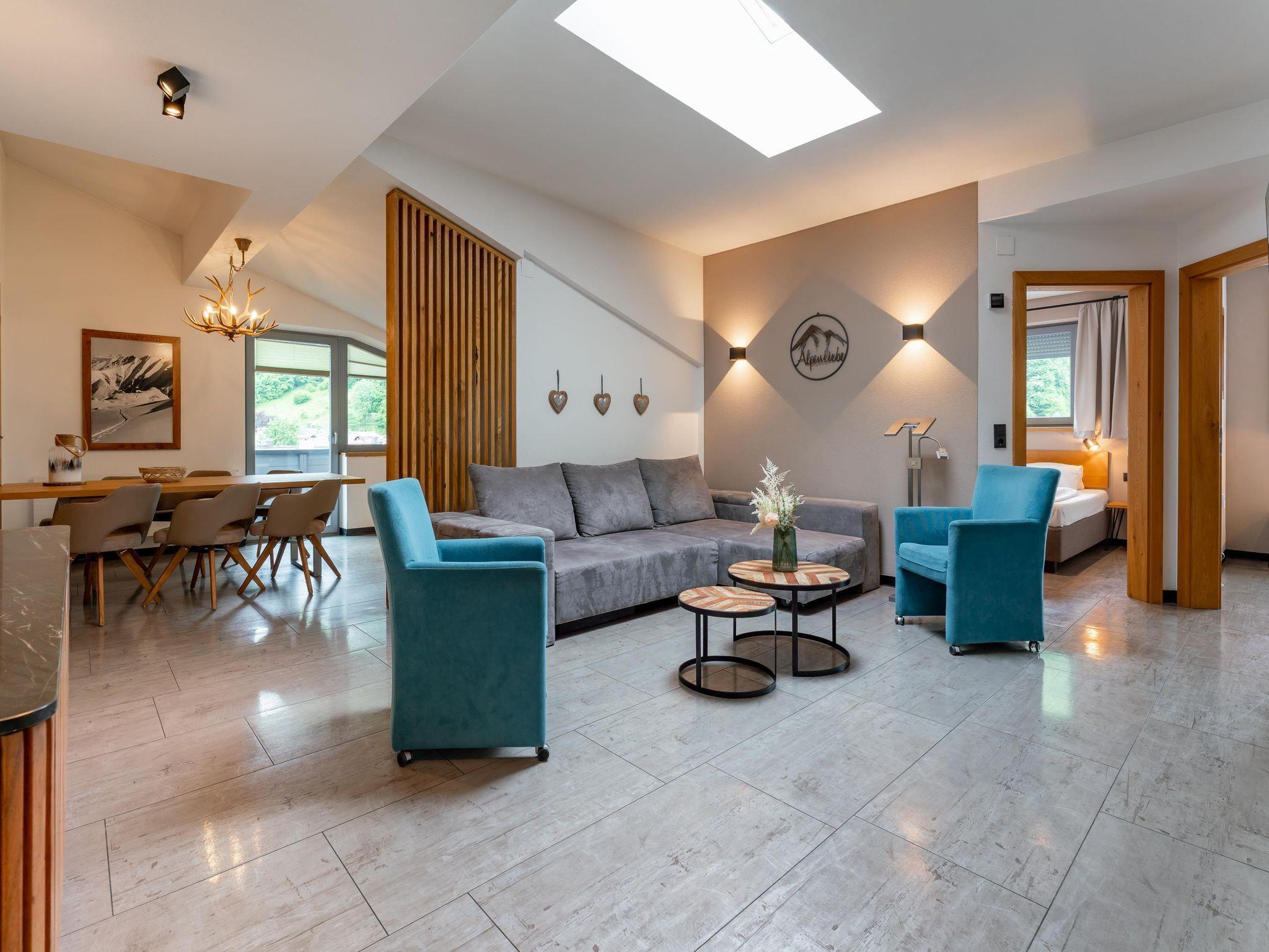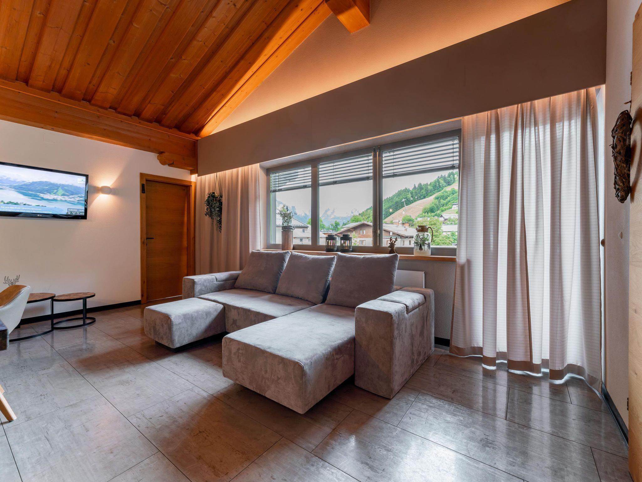 Alm 2 für bis zu 6 Personen mit 3 Schlafzimmer (3x2 Bett). 80 m² im Dachgeschoß vom Haus Sigl (Distrikt Schüttdorf von Zell am See). Erreichbar mit Aufzug/Stiege. Klimaanlage im