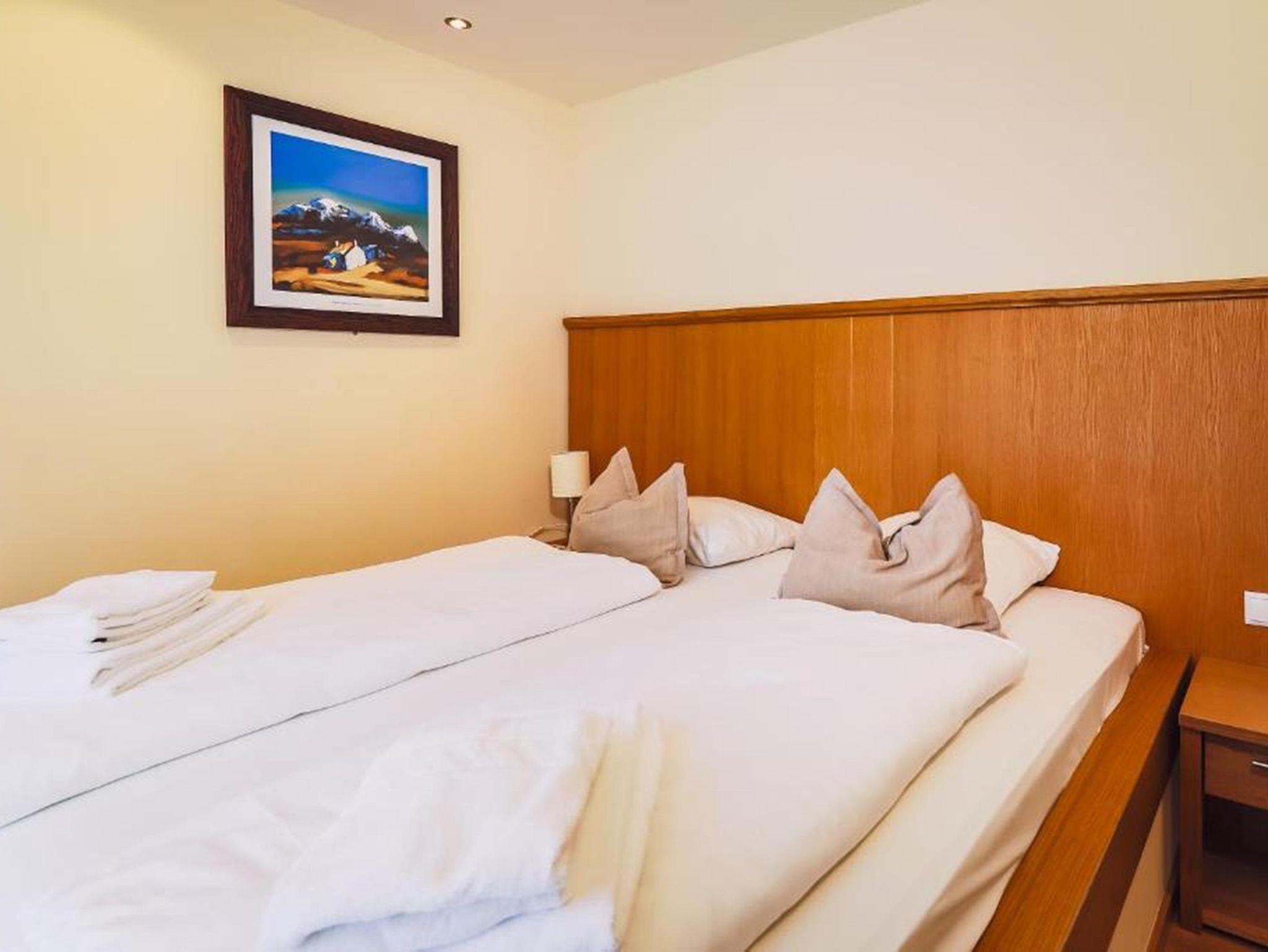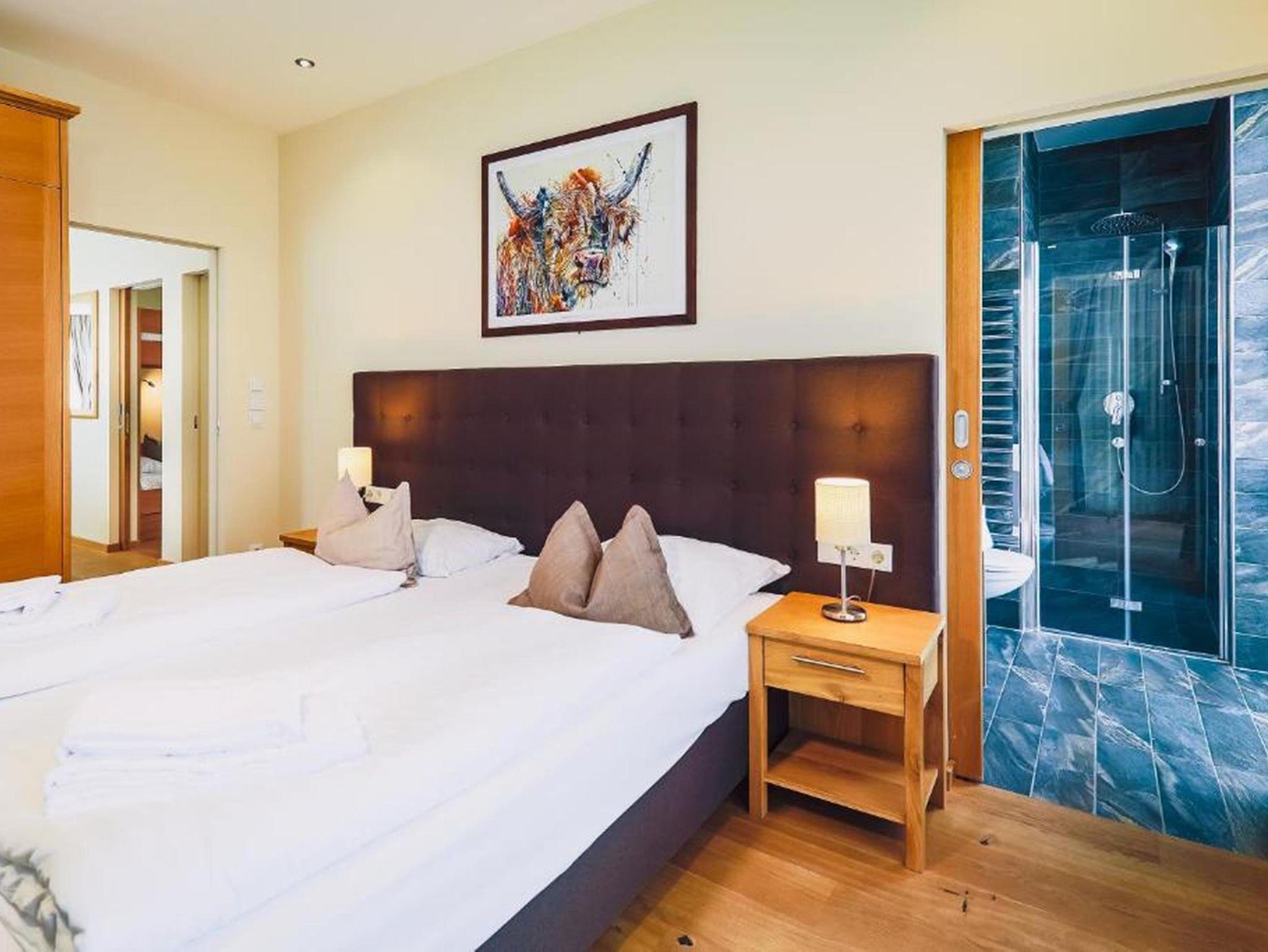 Großzügiges Penthouse im modernem Stil, mit Bergblick und TerrasseAusstattung: 2 Doppelbetten, 1 Schlafzimmer mit 2 Etagenbetten, Schlafcouch, 2 Badezimmer, Dusche, WC, Küche, Kaffee/Tee, Safe, TV und WIFI