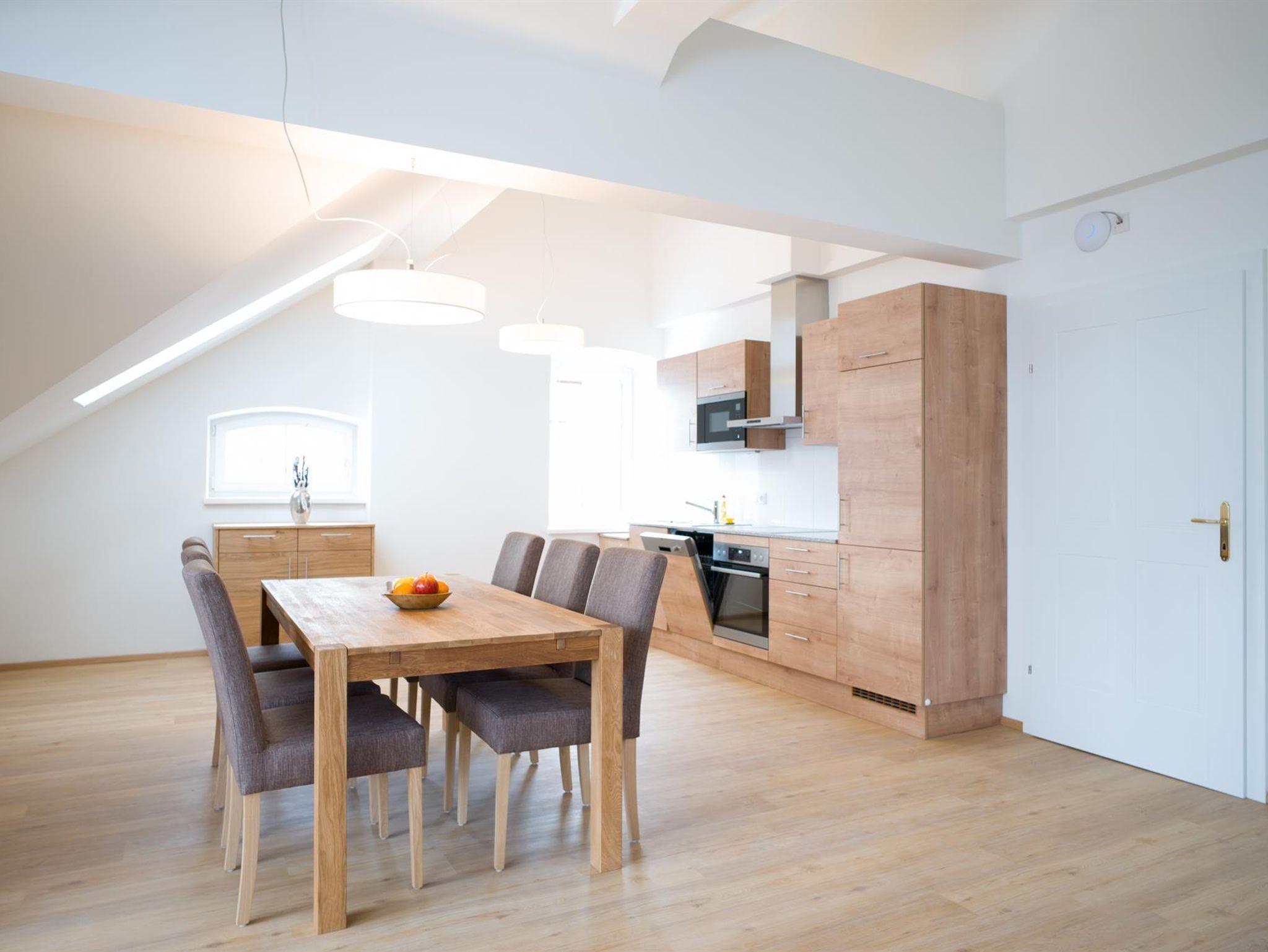 Die offene Küche bietet alles was unsere Gäste zum Zaubern ihrer Gerichte benötigen: Kühl/Gefrierschrank, Backofen, Spülmaschine, Geschirr/Besteck, Kochutensilien, Kaffeemaschine, Toaster und einen Wasserkocher.Zentralheizung und klimatisierter Boden sorgen immer für die richtige Temperatur. Bügeleisen, Waschmaschine und Trockner sowie ein Parkplatz vor dem Haus komplettieren das Angebot.