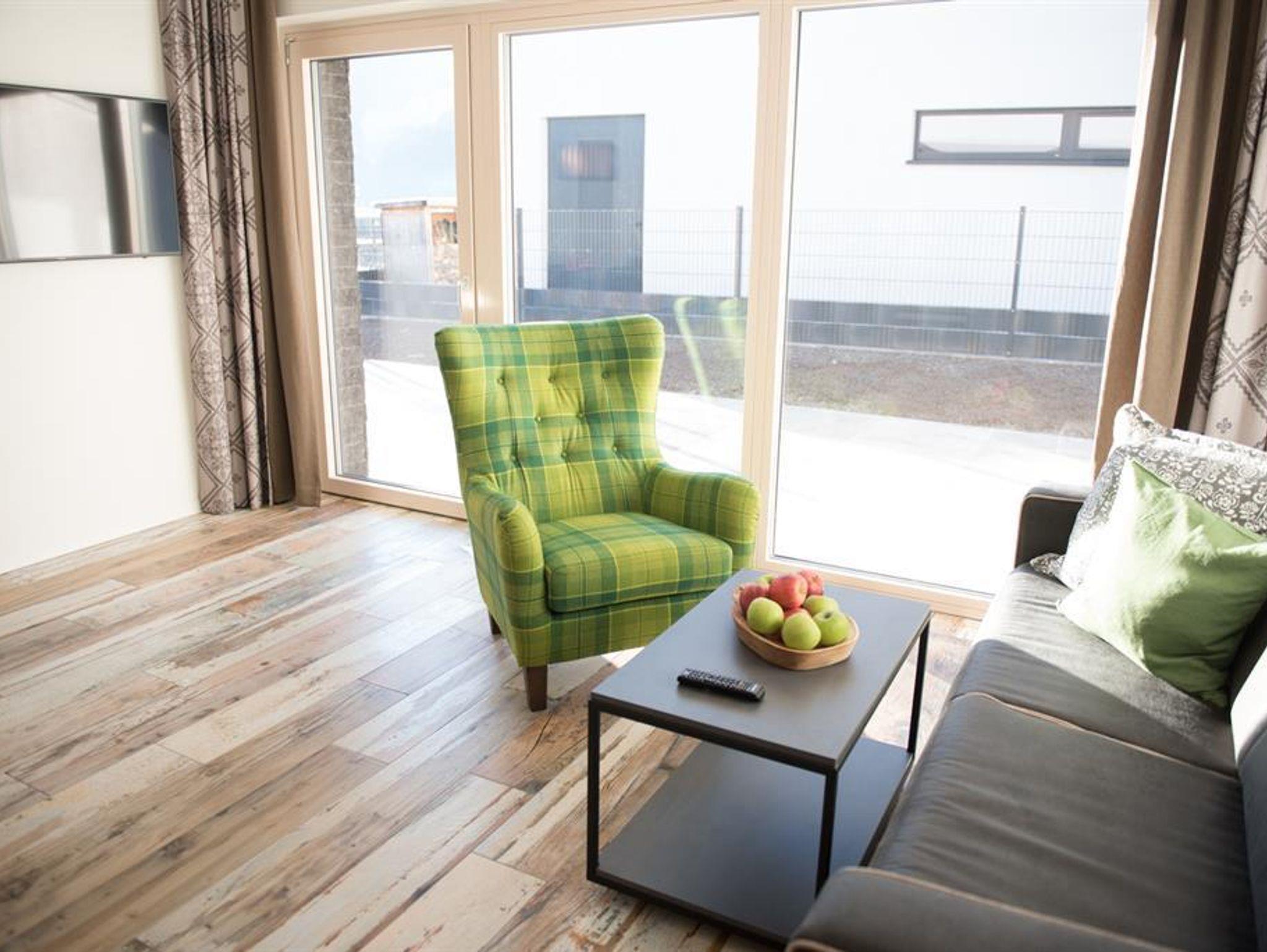 Das modern-rustikal eingerichtete Appartement besteht aus einem Schlafzimmer (1 x Doppelbett), einem Bad mit Dusche und WC, großer Wohn- und Kochbereich mit einer ausziehbaren Schlafcouch, die mit einem Handgriff in ein vollwertiges Doppelbett für 2 Personen umfunktioniert werden kann, Abstellraum und Flur.