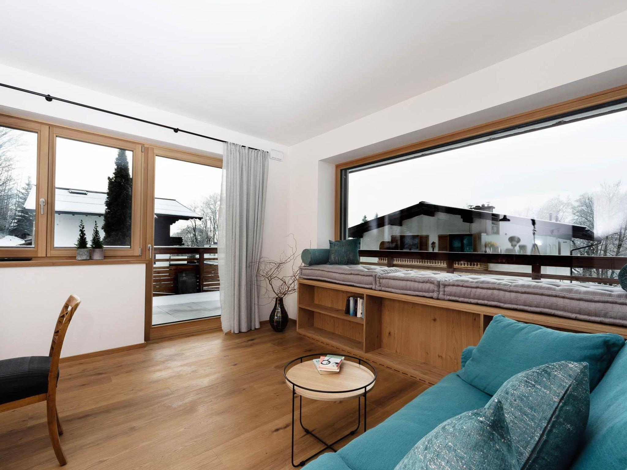• Große Panoramafenster aus Lärchenholz