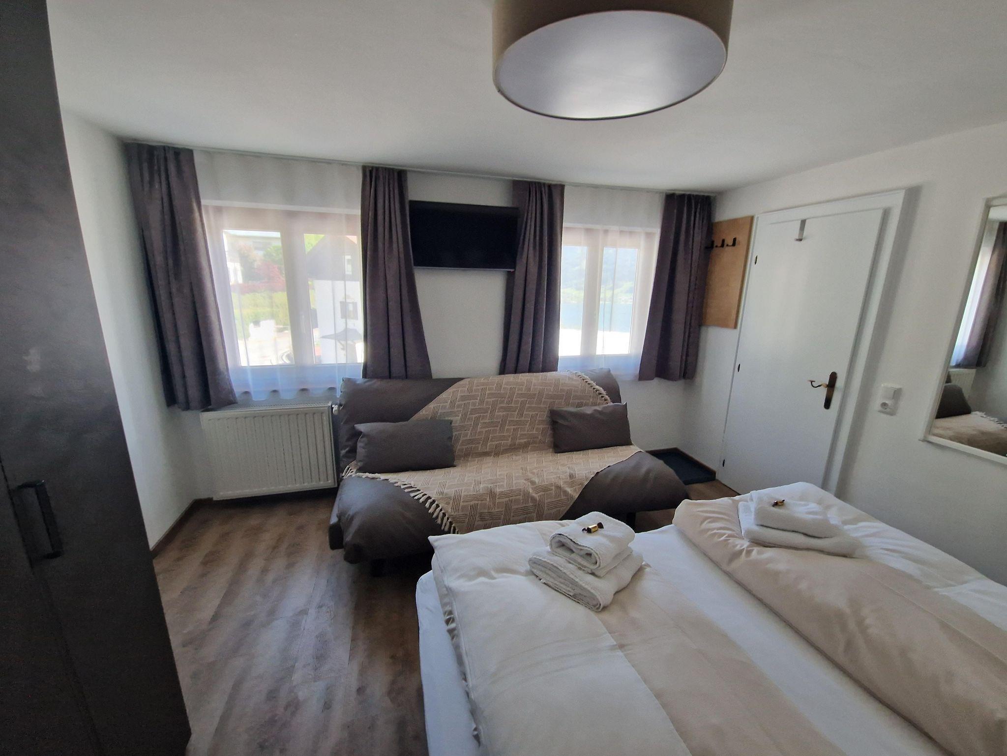 - ein Schlafraum mit Doppelbett und einer Klappcouch, Kabel-TV, Safe, Weckradio, Wifi
