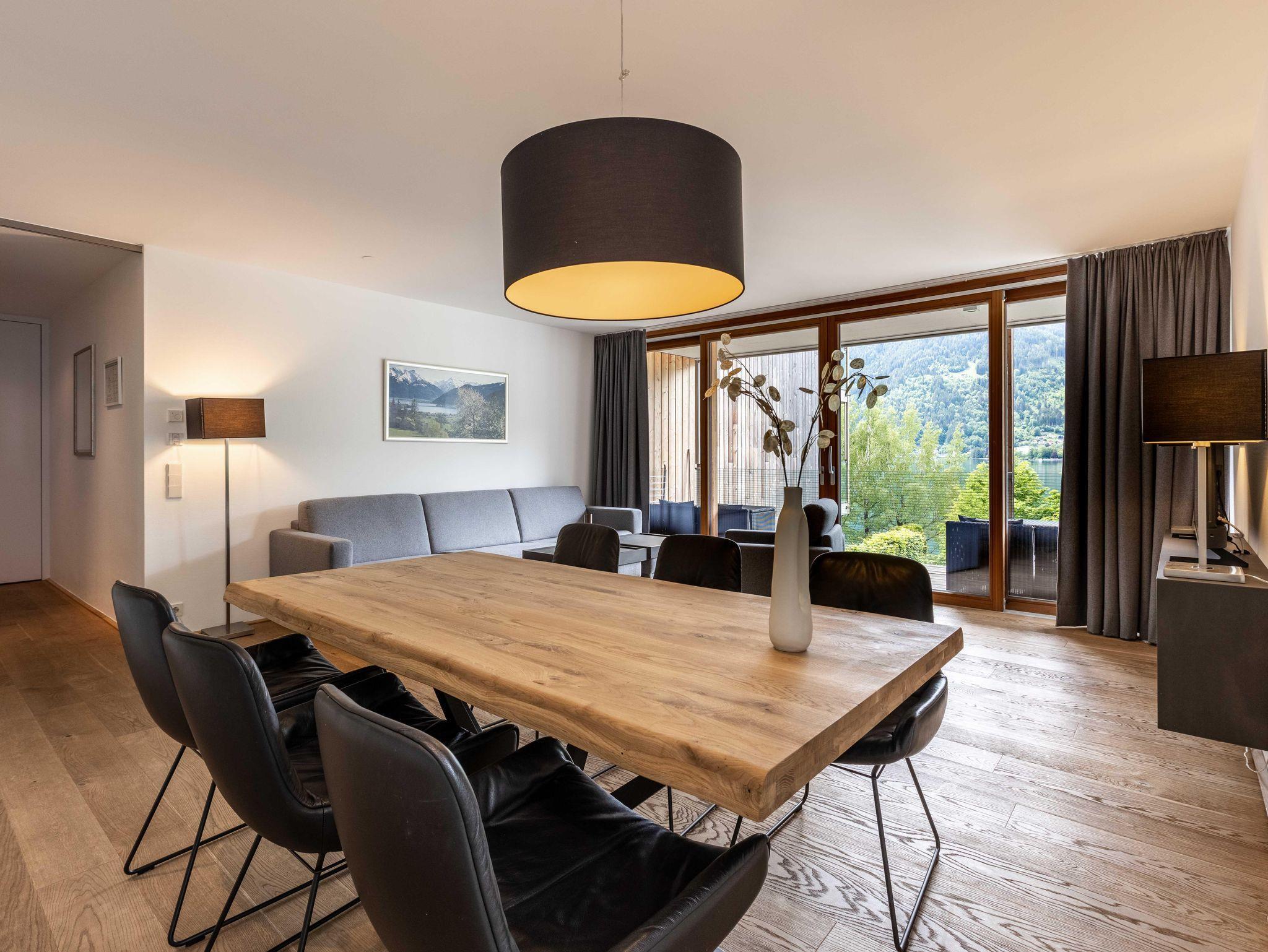 Herzlich willkommen in den Bellevue Residences! Wir bieten geräumige Appartements und Suiten mit jeweils zwei Schlafzimmern, Balkon und/oder Terrasse. Das Highlight ist der atemberaubende Blick auf den See und die umliegenden Berge. Hochwertige Materialien, stilvolles Design und großzügige Räume laden zum Verweilen ein. Zwei Saunen, ein eigener Parkplatz, ein beheizter Skikeller und eine Waschküche sind ebenfalls vorhanden. Außerdem bieten wir unseren Gästen eine geräumige, voll ausgestattete Küche und kostenloses WLAN. Freue dich auf einen unvergesslichen Aufenthalt in den Bellevue Residences!