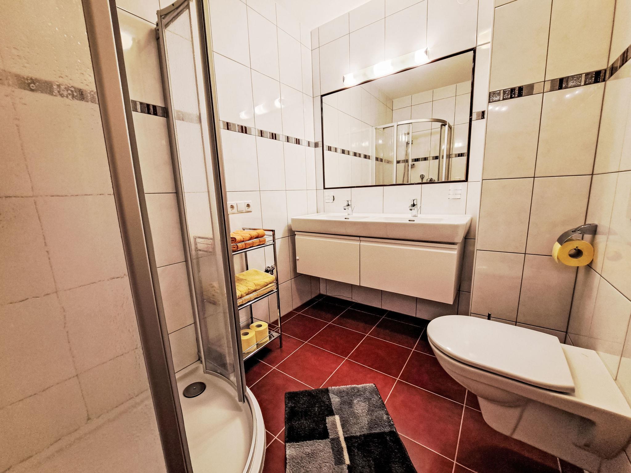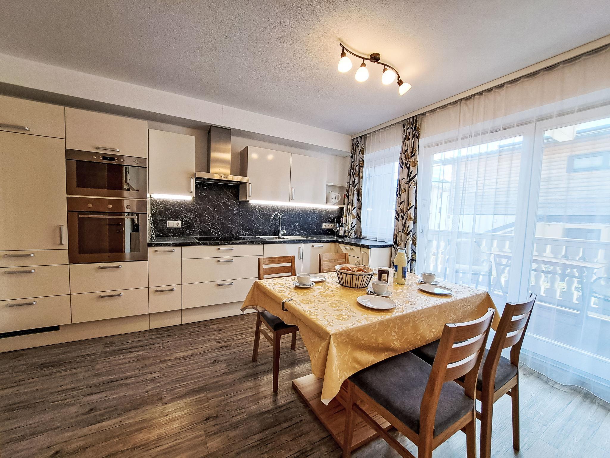 "Regina", 2-Zimmer-Wohnung 45 m2 im 1. Stock. Objekt geeignet für 2 Erwachsene + 2 Kinder. Modern und geschmackvoll eingerichtet: Wohn-/Schlafzimmer mit 1 Doppeldiwanbett (150 cm), Esstisch und Sat-TV (Flachbildschirm). Ausgang zum Balkon. 1 Doppelzimmer mit Sat-TV (Flachbildschirm). Offene Küche (Backofen, Geschirrspüler, 4 Glaskeramikplatten, Toaster, Wasserkocher, Mikrowelle, elektrische Kaffeemaschine). Dusche/WC, Doppelwaschbecken. Fussbodenheizung. Balkon. Balkonmöbel. Schöne Sicht auf die Berge. Zur Verfügung: Kinderhochstuhl. Internet (WLAN, gratis). Bitte beachten: Nichtraucher-Unterkunft. Eigener Eingang, Rauchmelder, Feuerlöscher. Zur Ferienwohnung gelangt man über eine Außentreppe!
