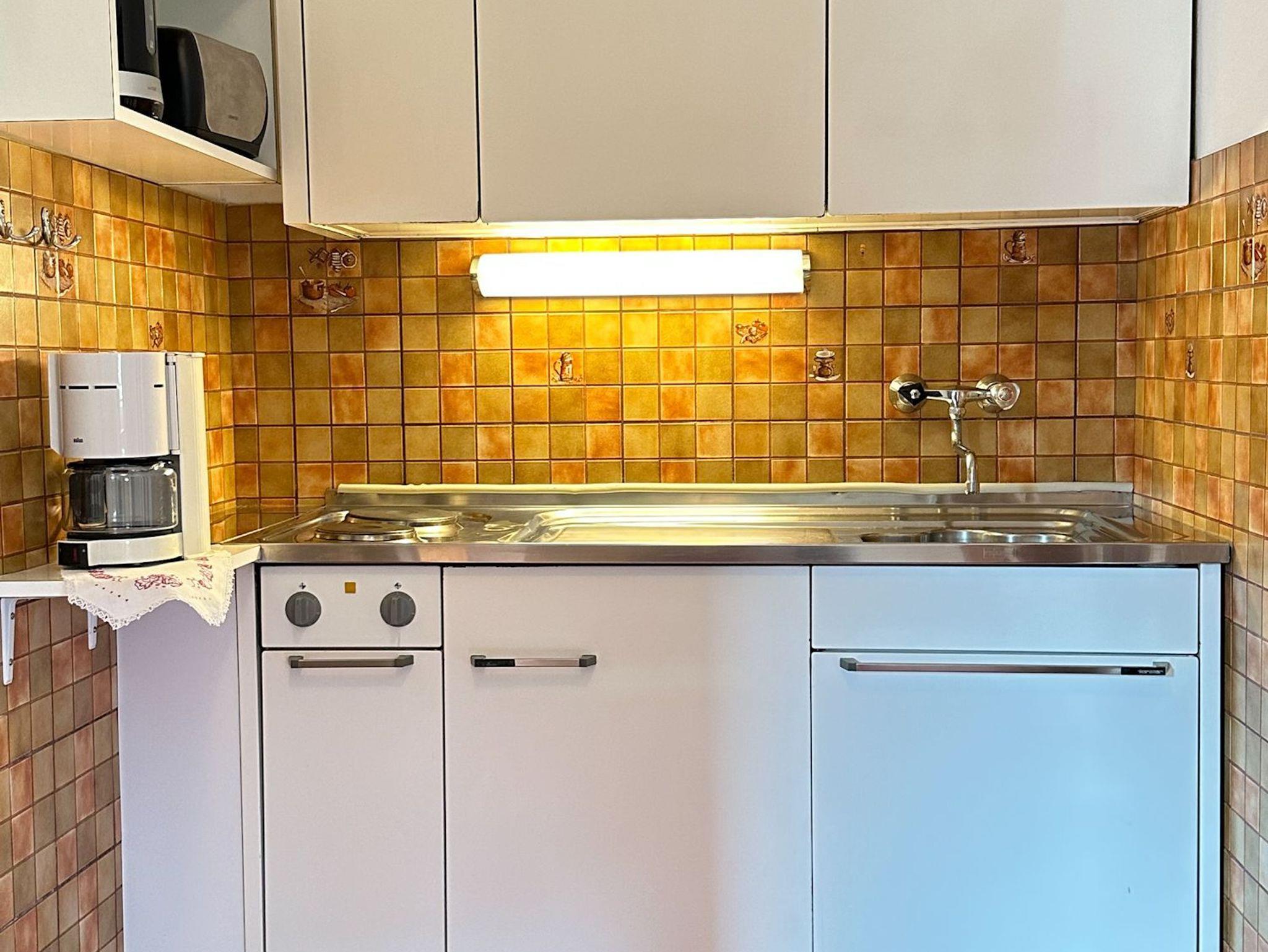 • Kochnische mit Kühlschrank, 2-Plattenherd, Kaffeemaschine, Wasserkocher und Toaster
